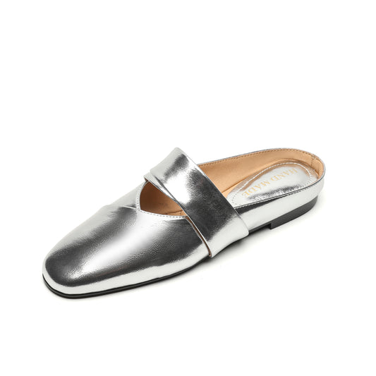 TinaCus Handgefertigte Damen-Schlupfschuhe aus echtem Leder mit flachem Absatz