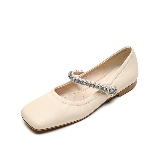 TinaCus Damen-Schuhe aus echtem Leder, handgefertigt, quadratische Zehenpartie, Strass-Band, flache Schuhe
