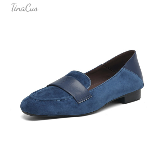 TinaCus Suede & Genuine Leather Handmade Round Toe Comfortable Women's Slip on Flat Shoes