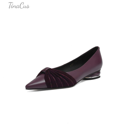 TinaCus Handmade Women's Genuine Leather Pointed Toe Velvet Bow Ballet Flat Shoes