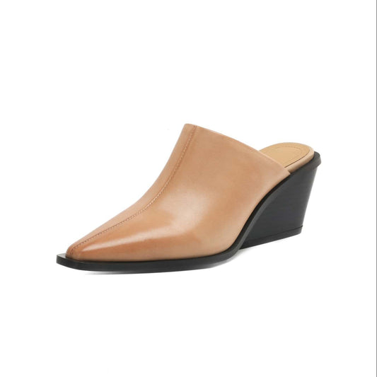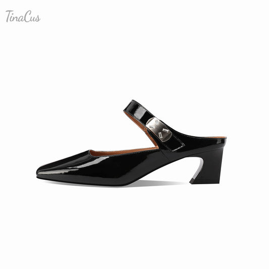 TinaCus Handmade Women's Genuine Leather Closed Pointed Toe Mid Chunky Heel Mule