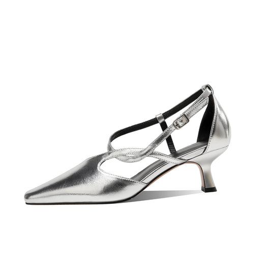 TinaCus Handgefertigte Damen-Sandalen aus echtem Leder mit spitzer Zehenpartie und Kitten Heel-Schnalle