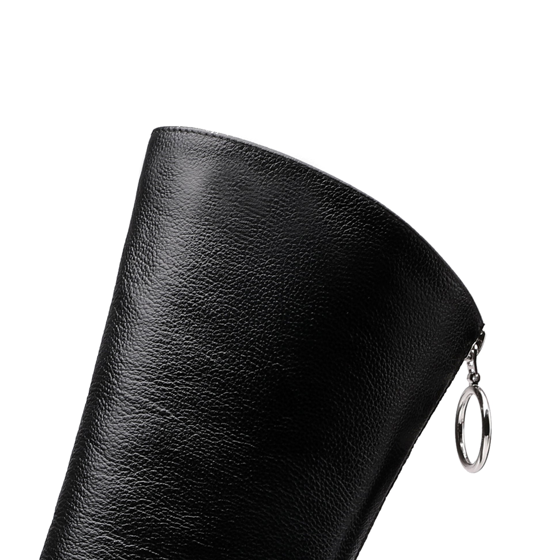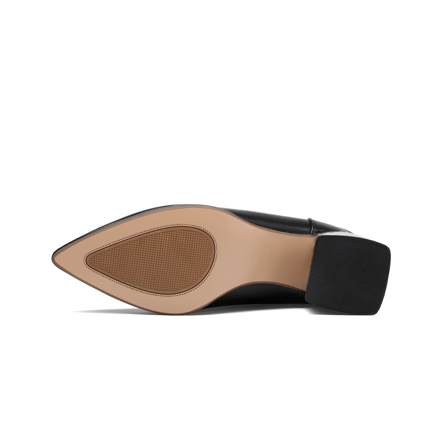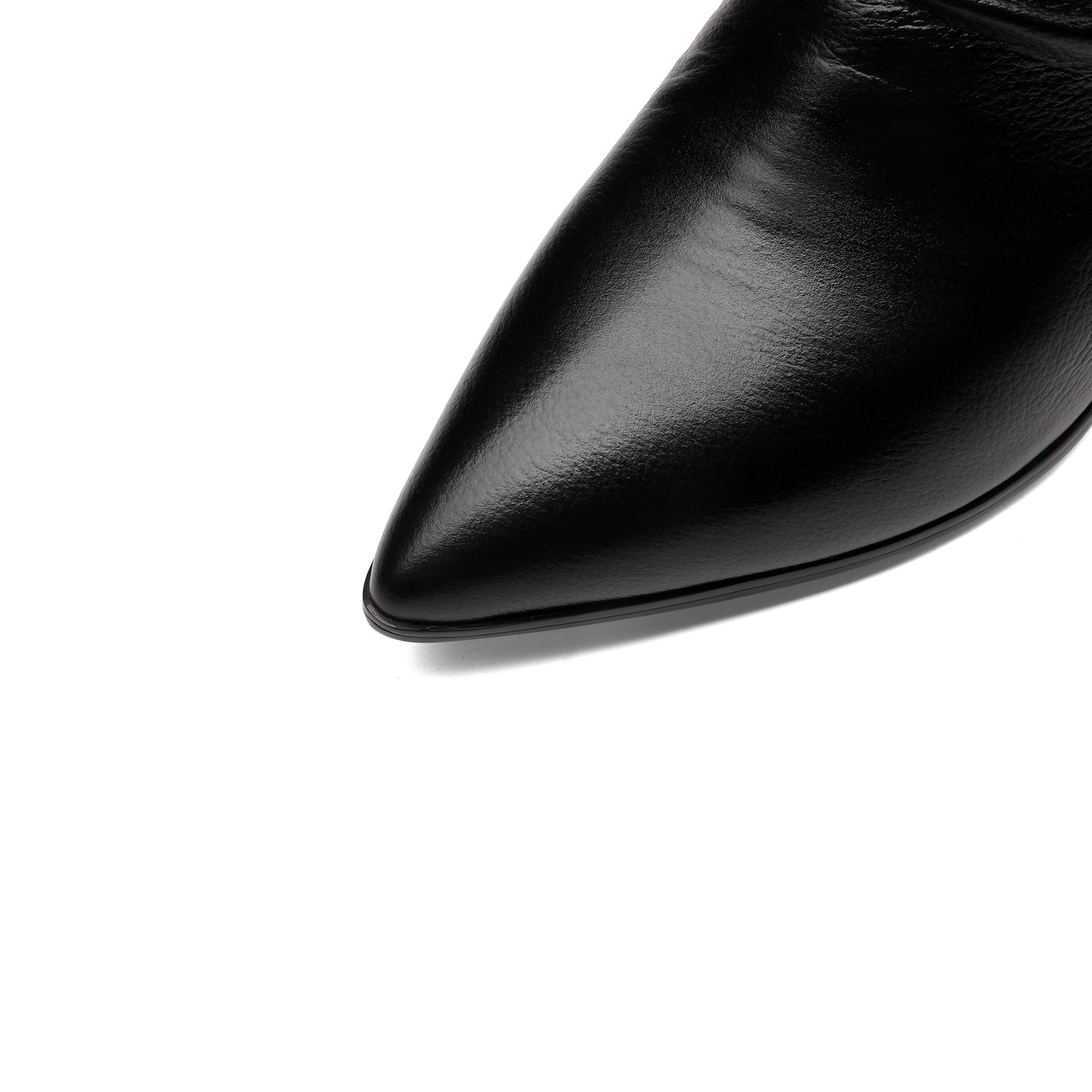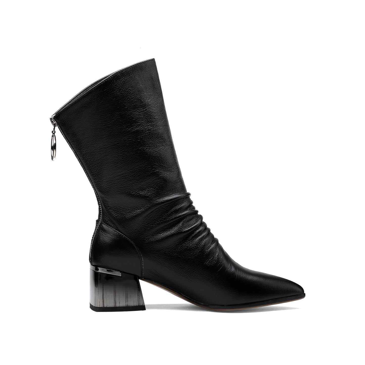 Bequeme, halbhohe Stiefel aus echtem Leder mit spitzer Spitze, mittelhohem Blockabsatz und Rüschendesign, um mit dem Modetrend Schritt zu halten, und einer rutschfesten Sohle, die Ihr Selbstvertrauen bei jedem Schritt zeigt.