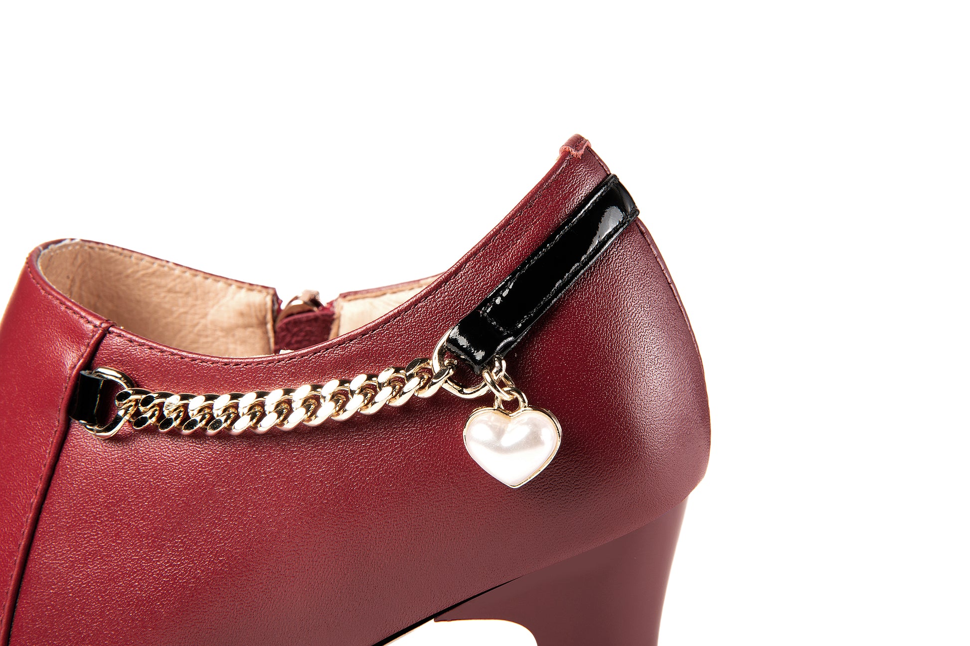 Anmutige Lederpumps mit klassischer spitzer Zehenpartie und sexy hohem Absatz. Der seitliche Reißverschluss mit Herzdekor ist trendig und modern. Geeignet für Partys, Clubs und viele andere Anlässe.