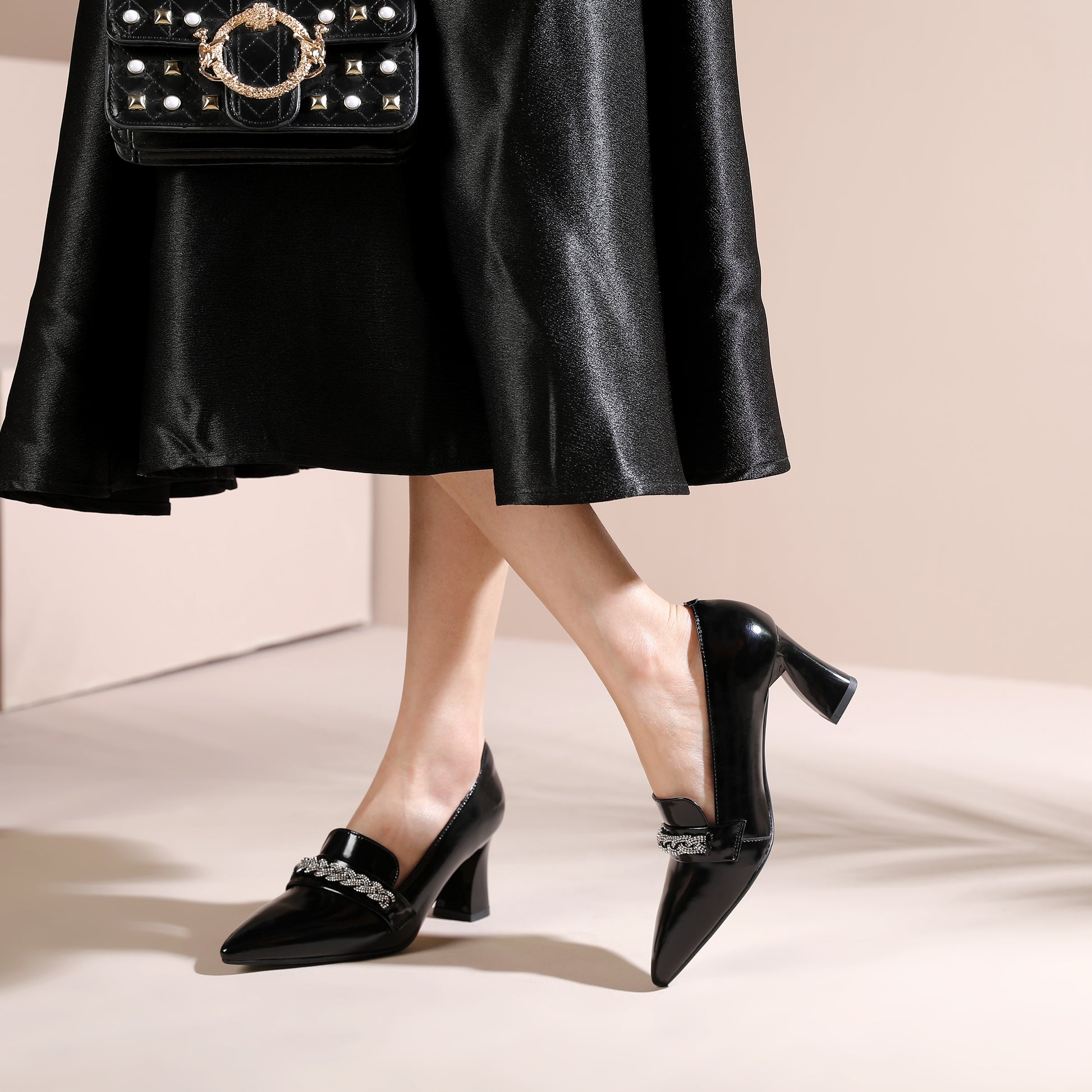 Pumps aus echtem Leder mit spitzer Spitze und mittelhohem Blockabsatz passen zu fast allen Ihren Outfits.