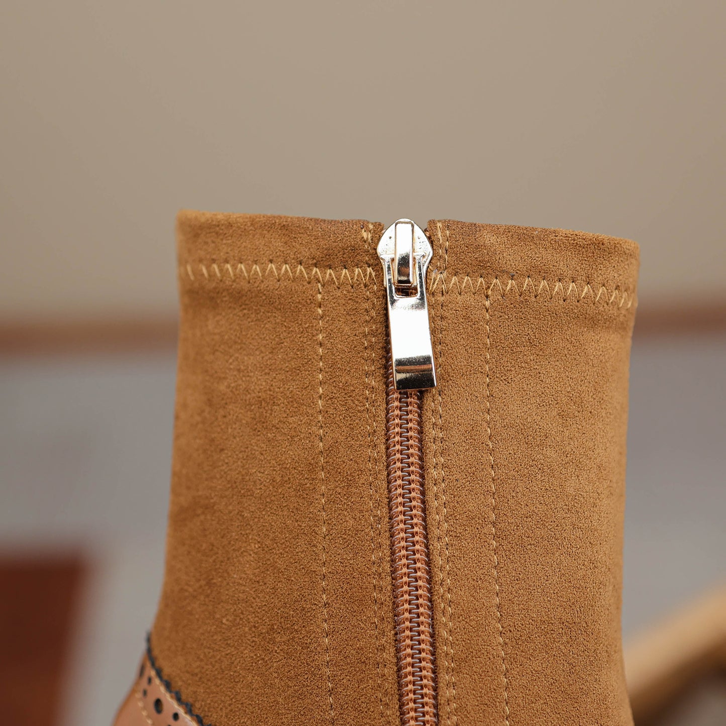 Stiefeletten mit Reißverschluss aus echtem Leder in Khaki, Schwarz und anderen Grundfarben, einfaches Schuhdesign, sehr leicht zu kombinieren, leicht, um einen bequemen, lässigen, romantischen französischen Stil zu kreieren.