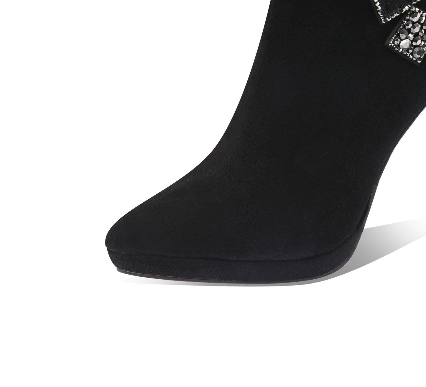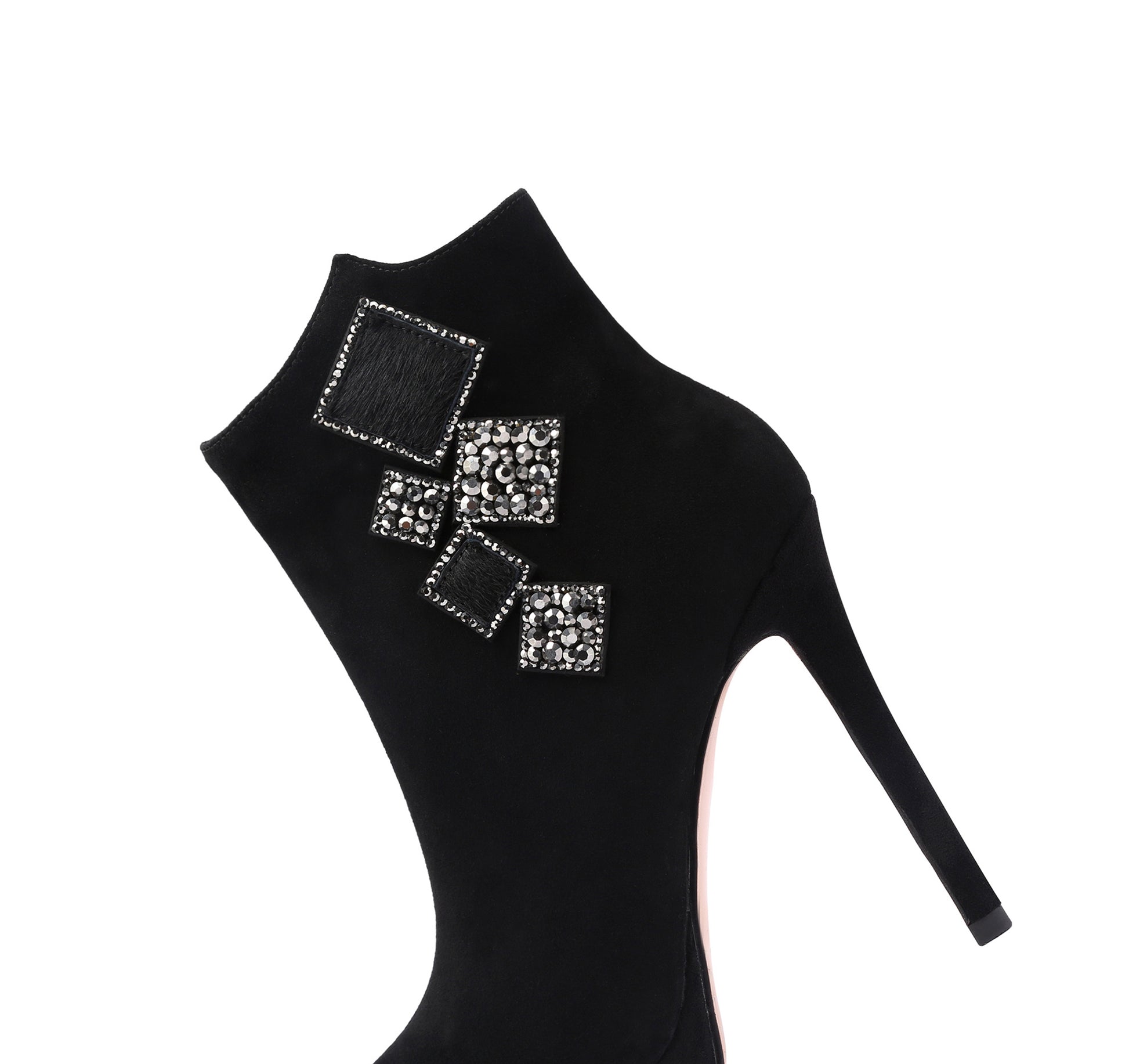 TinaCus Handgefertigte Damen-Stiefeletten aus Wildleder mit Würfel-Strasssteinen, seitlichem Reißverschluss, spitzer Zehenpartie, Plateau und hohem Stilettoabsatz