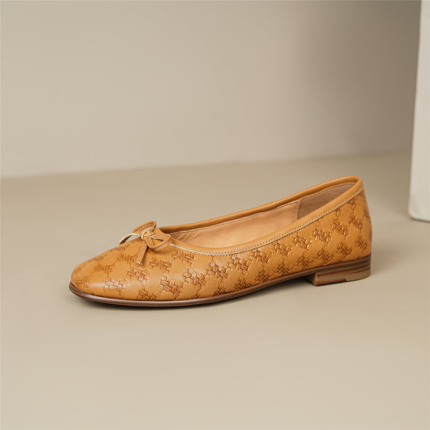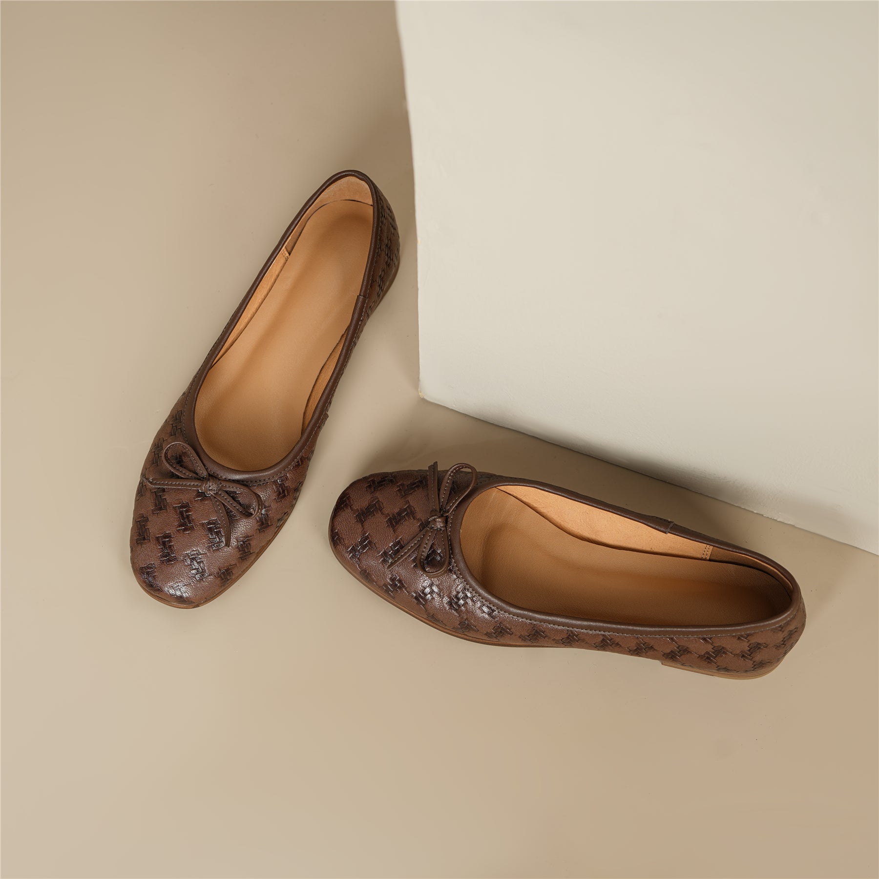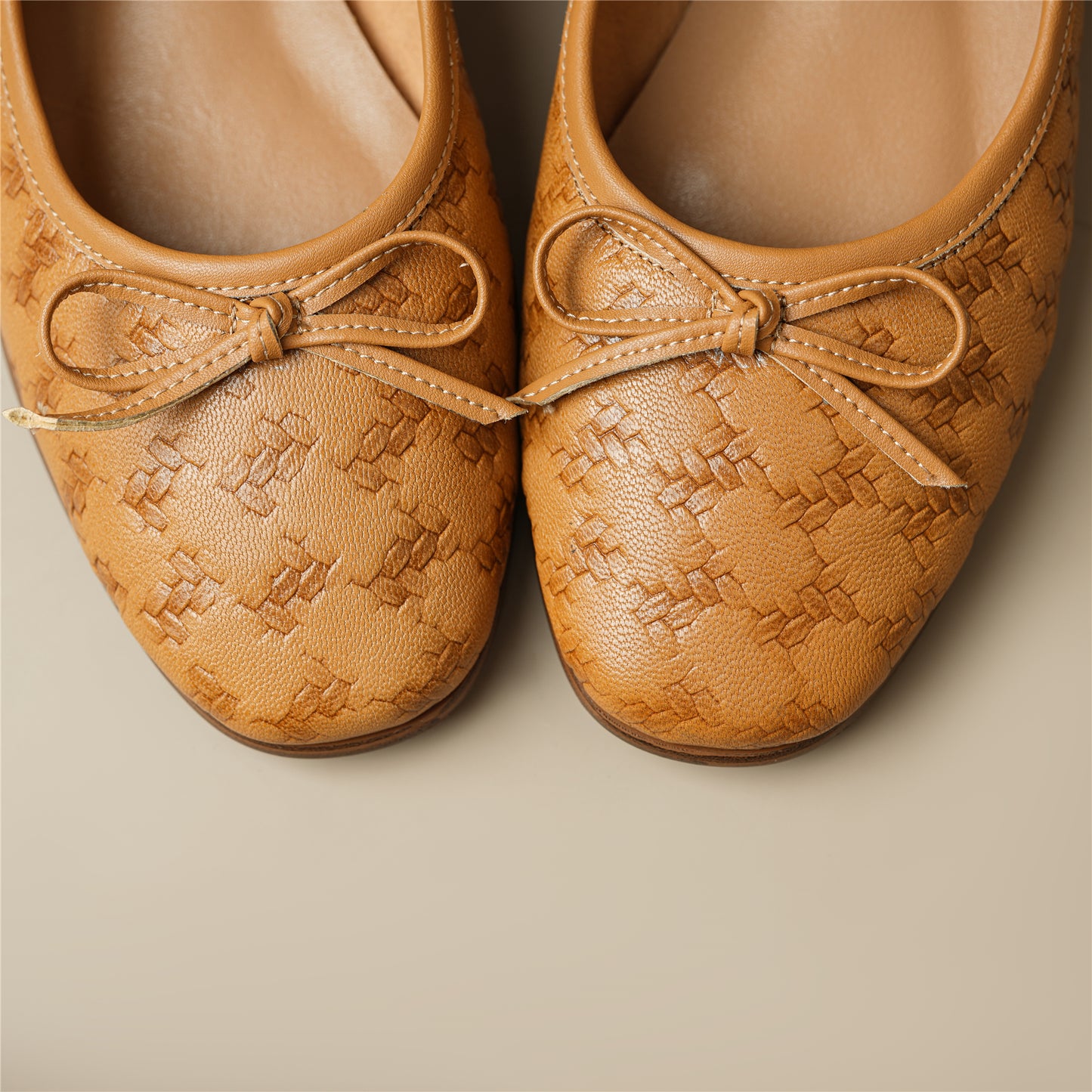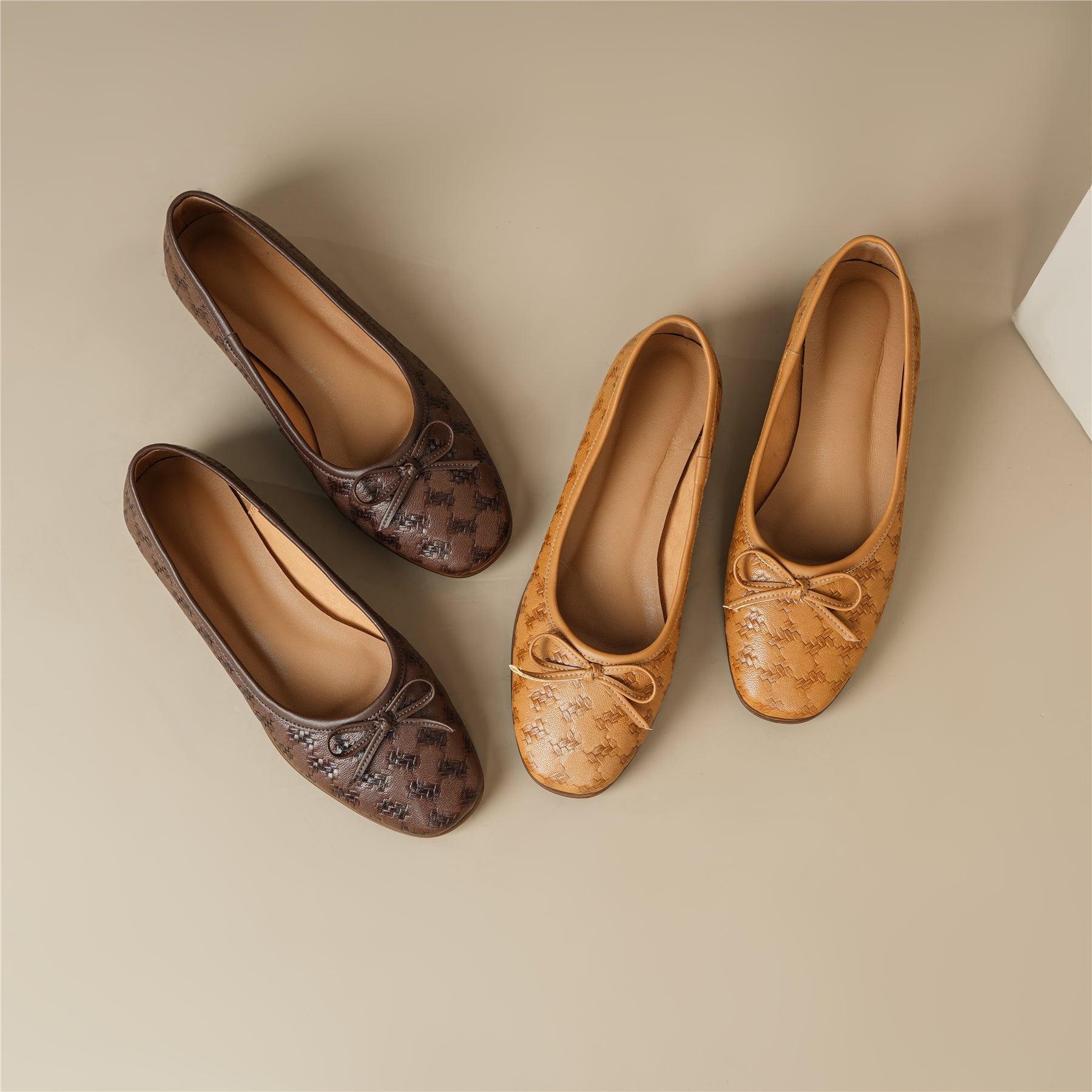 Flache Schuhe aus echtem Leder mit runder Spitze und Fliege passen zu Ihrem Kleid, Ihren Jeans und Hosen.