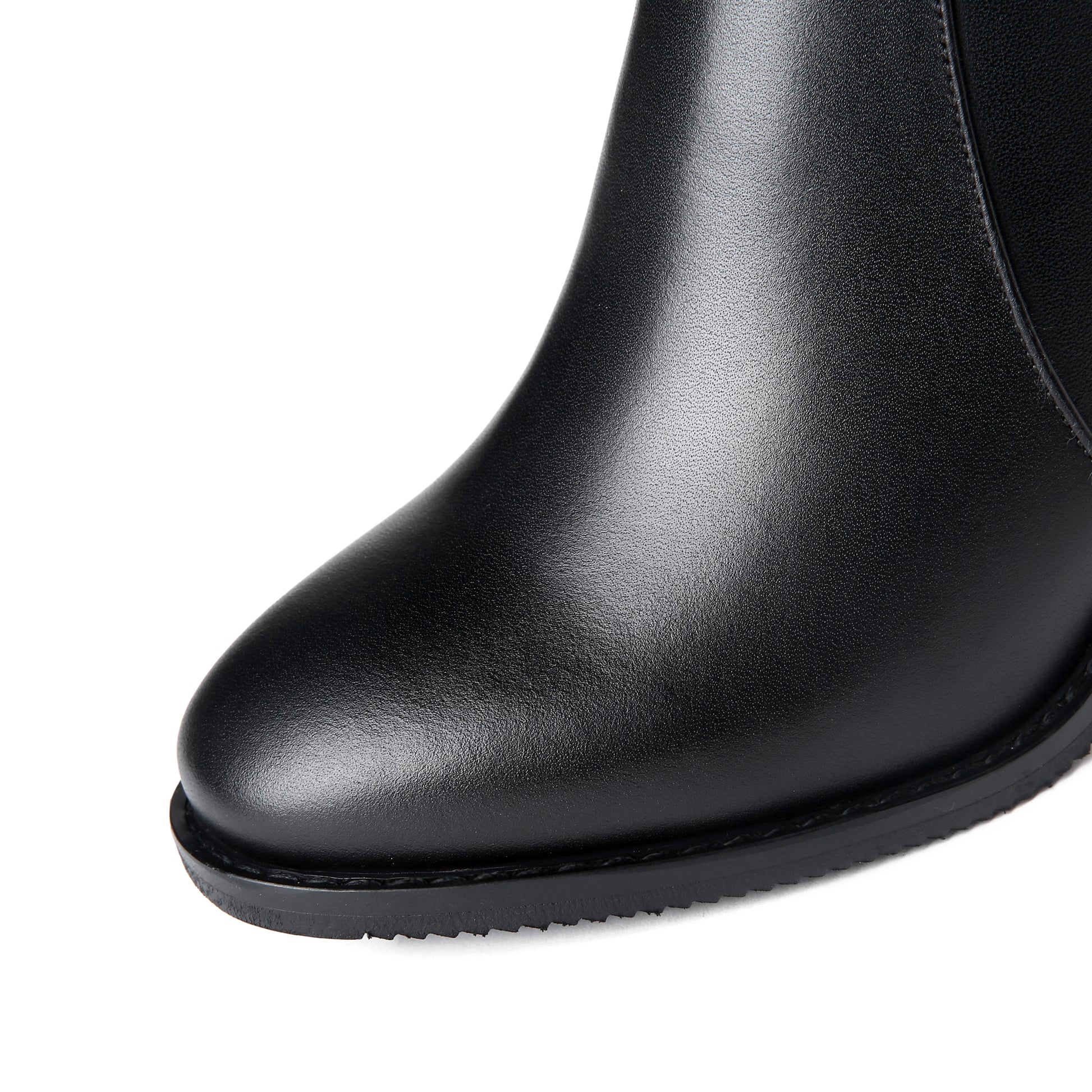 Tinacus Stiefel aus echtem Leder, runde Zehenpartie, klobiger High Heel, bequem, kniehoch
