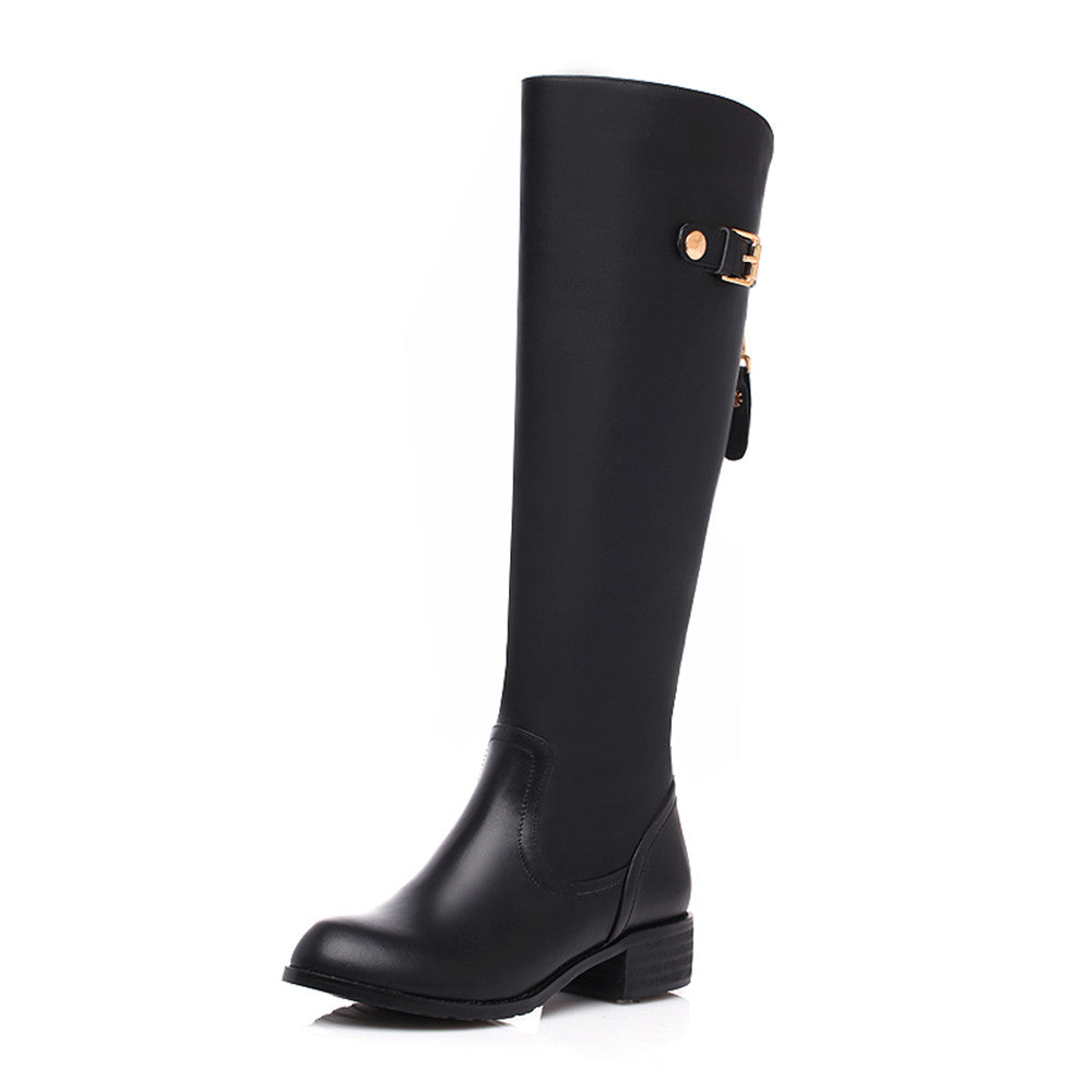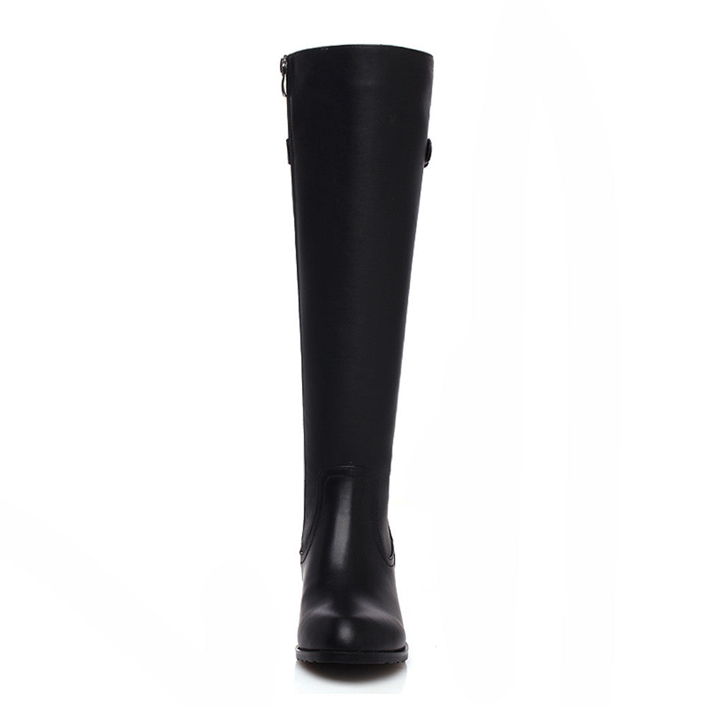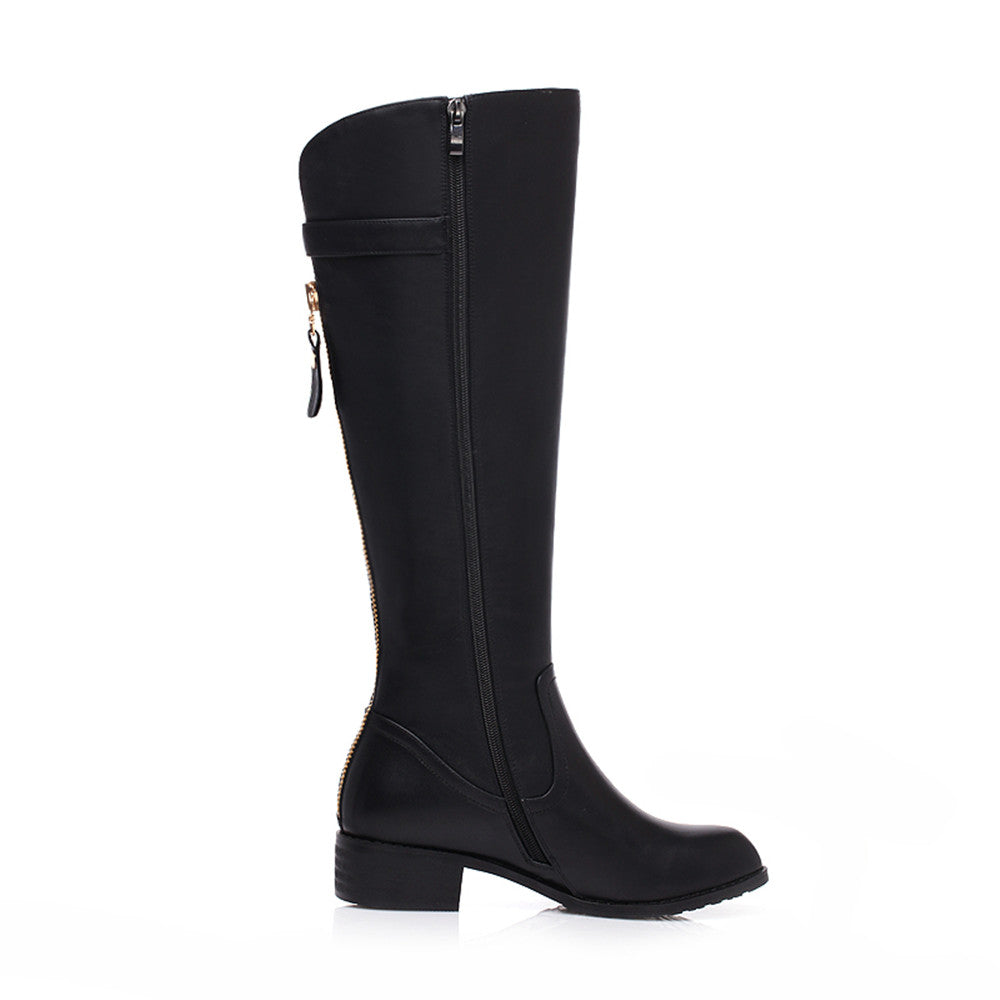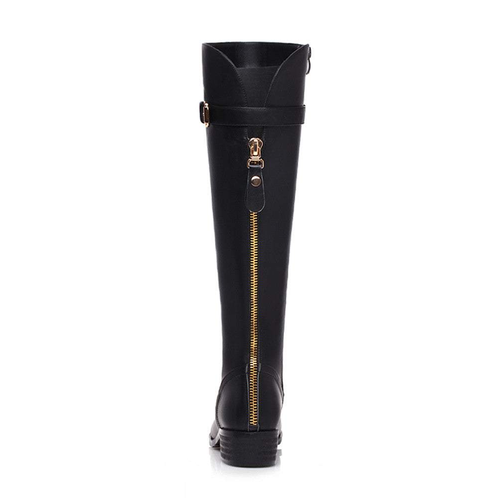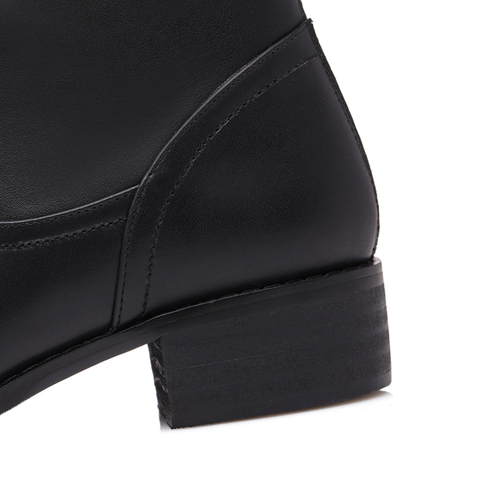 Bequeme Kniestiefel aus echtem Leder mit runder Spitze, niedrigem Blockabsatz, Reißverschluss hinten und Schnalle – perfekt für den modischen Trend. Diese modischen Stiefeletten passen zu fast jedem Outfit und bieten Komfort bei jedem Schritt.