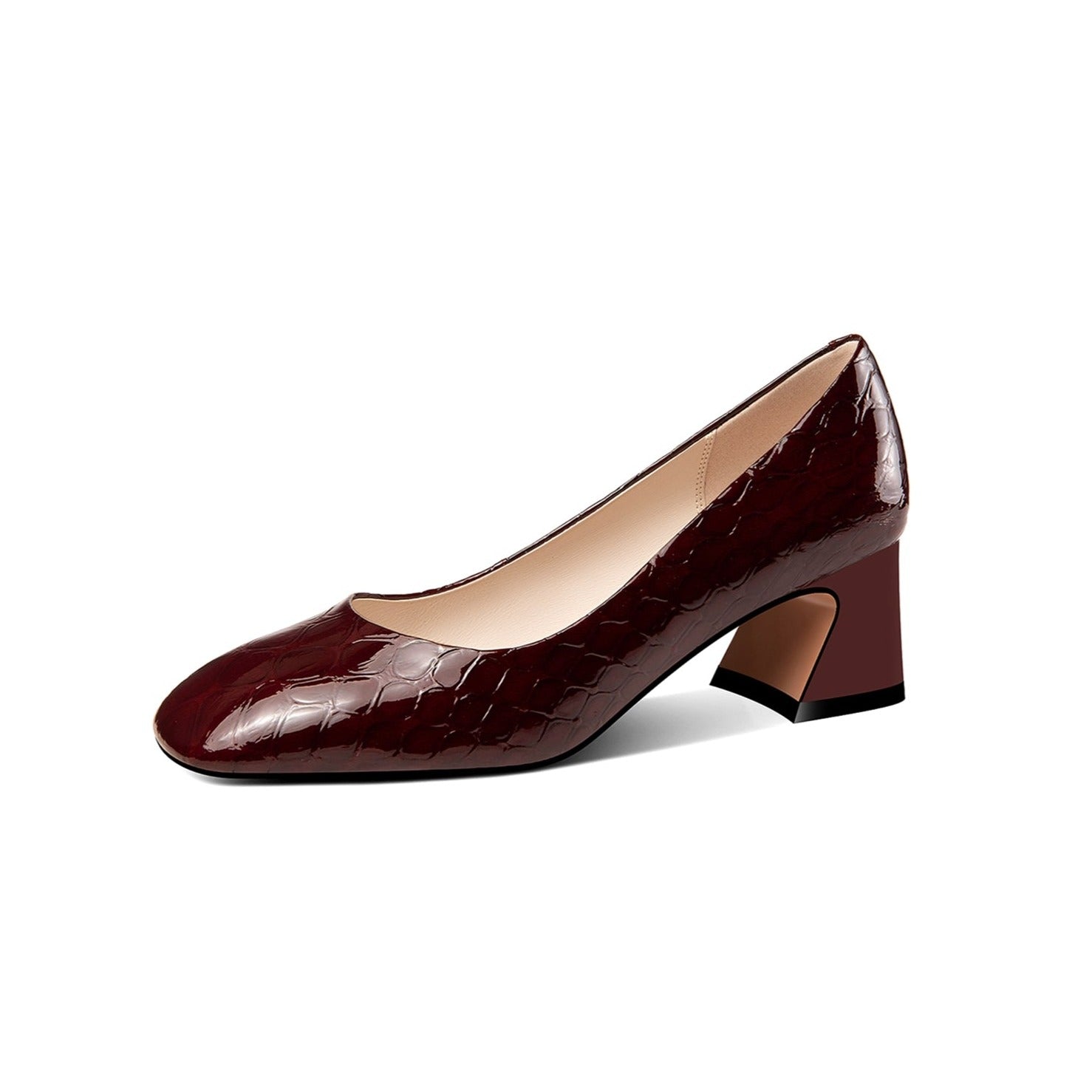 TinaCus Damen Pumps aus glänzendem Lackleder mit quadratischer Zehenpartie, handgefertigt, niedriger Absatz, klobiger Absatz, lässige Schuhe