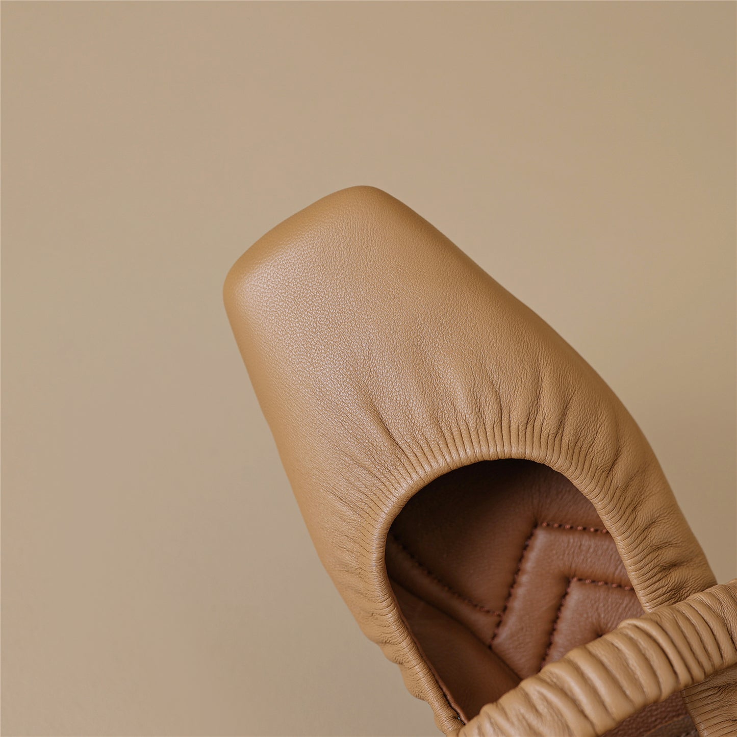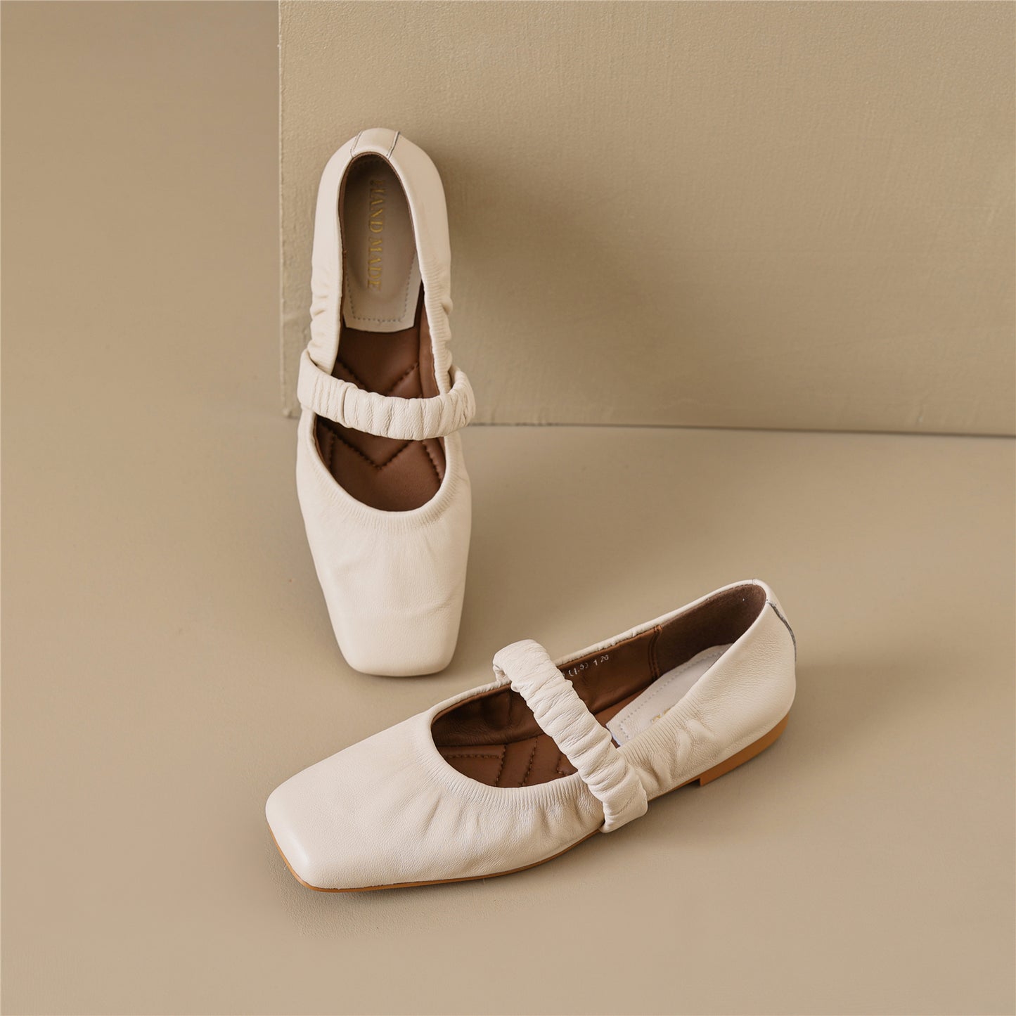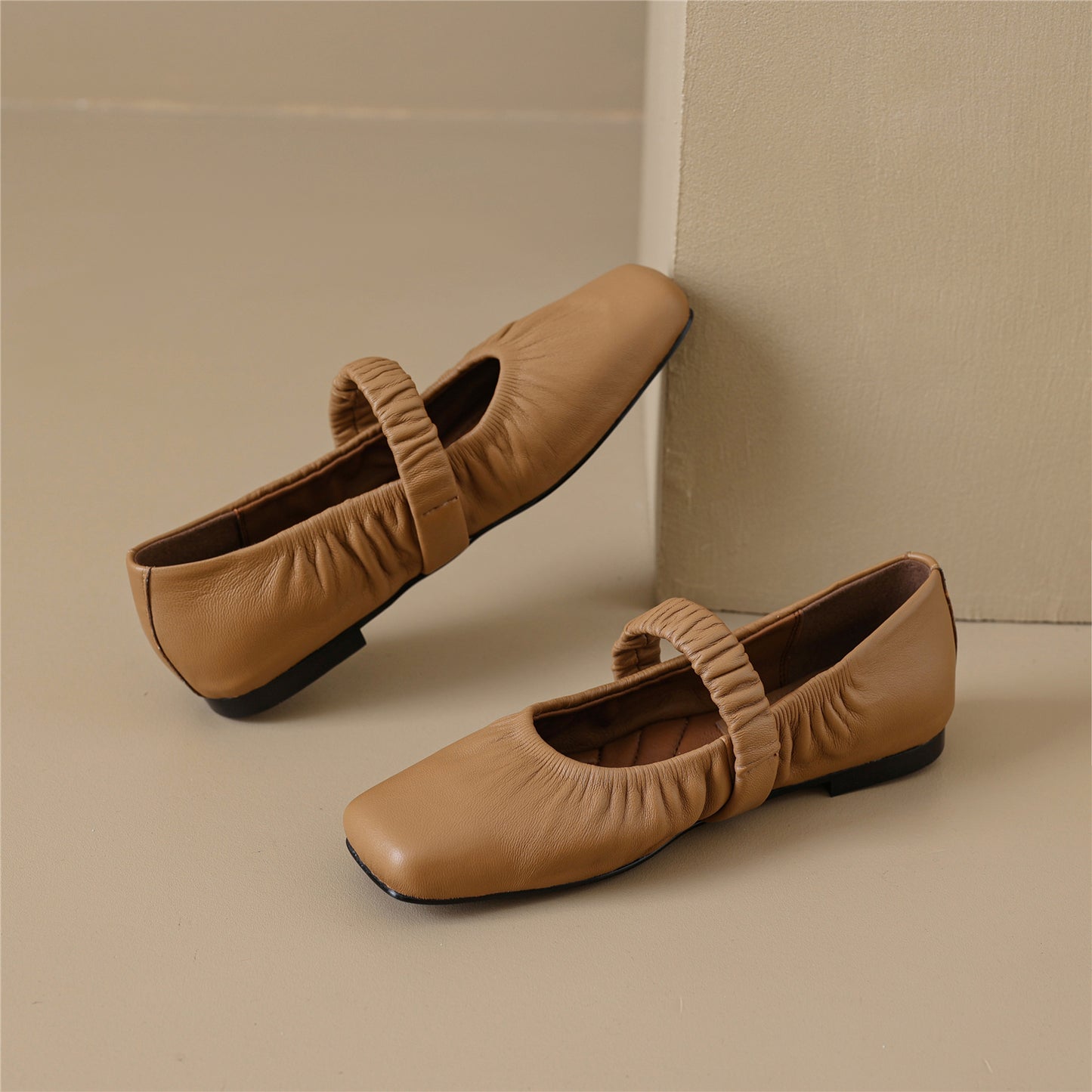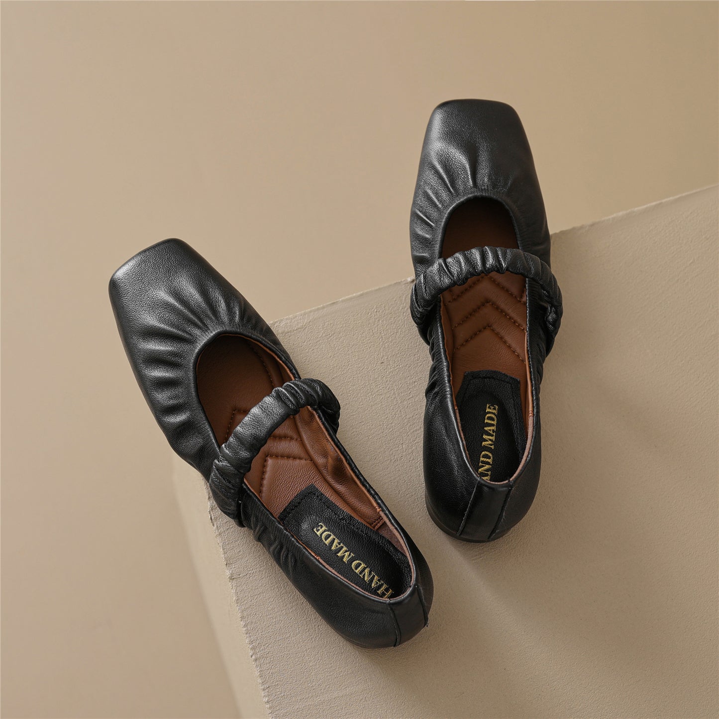 TinaCus Damen-Schlupfschuhe aus echtem Leder, handgefertigt, mit Rüschen, quadratischer Zehenpartie, flach