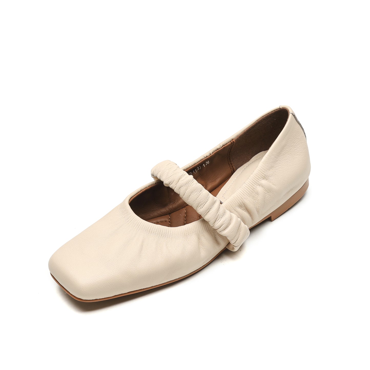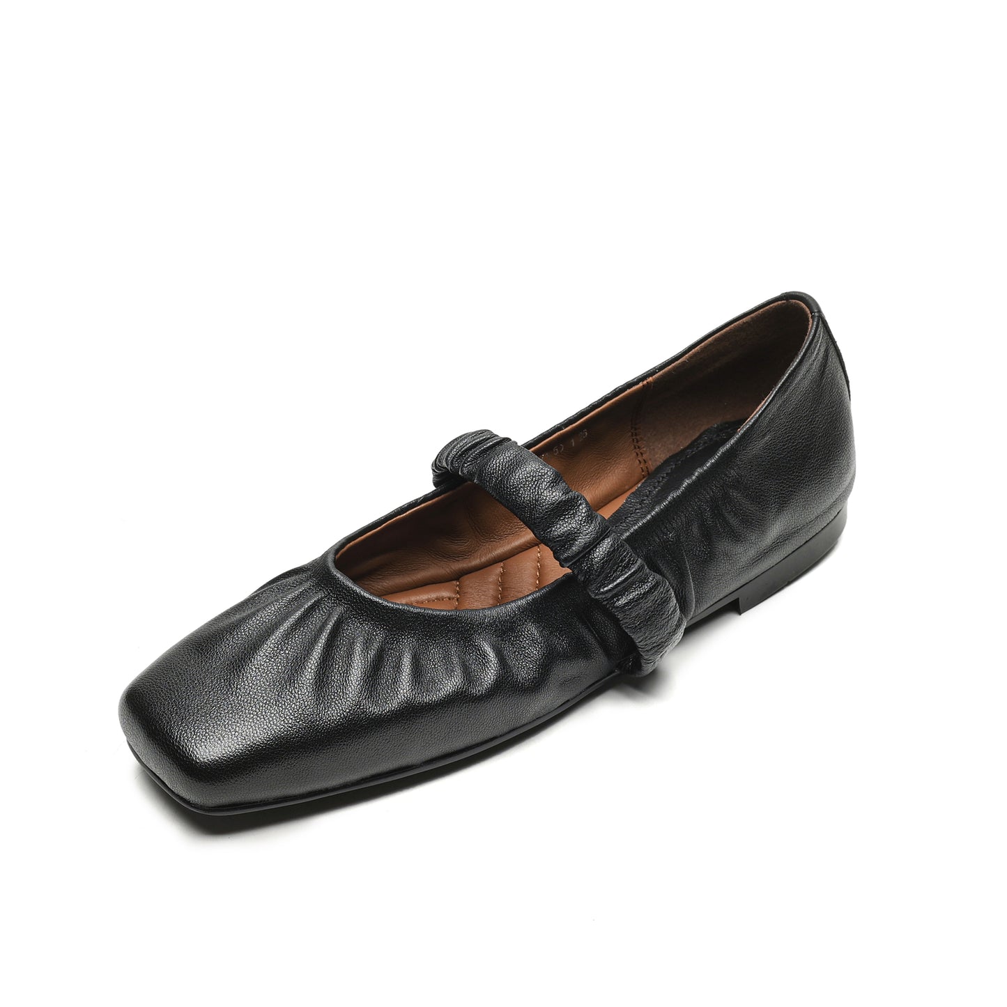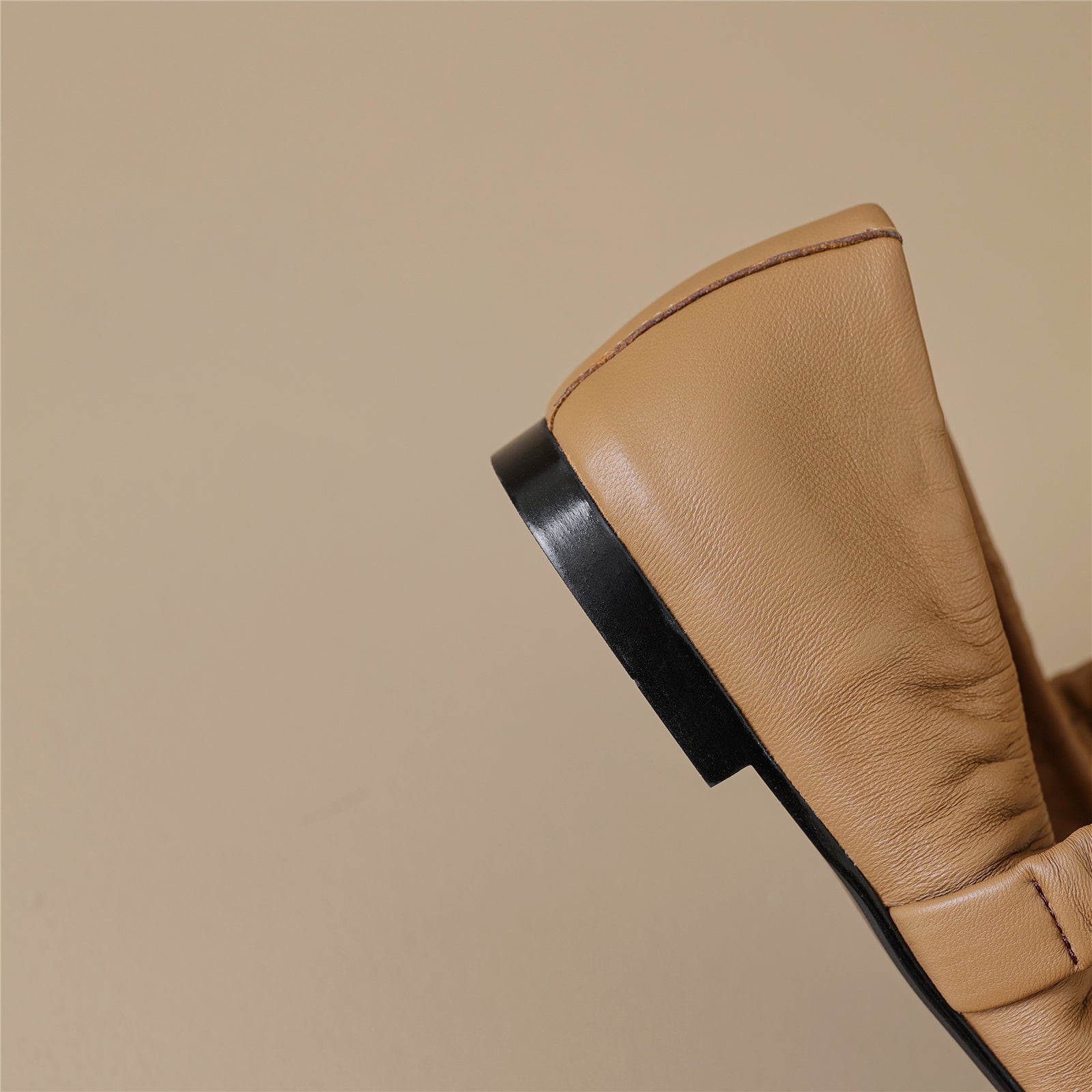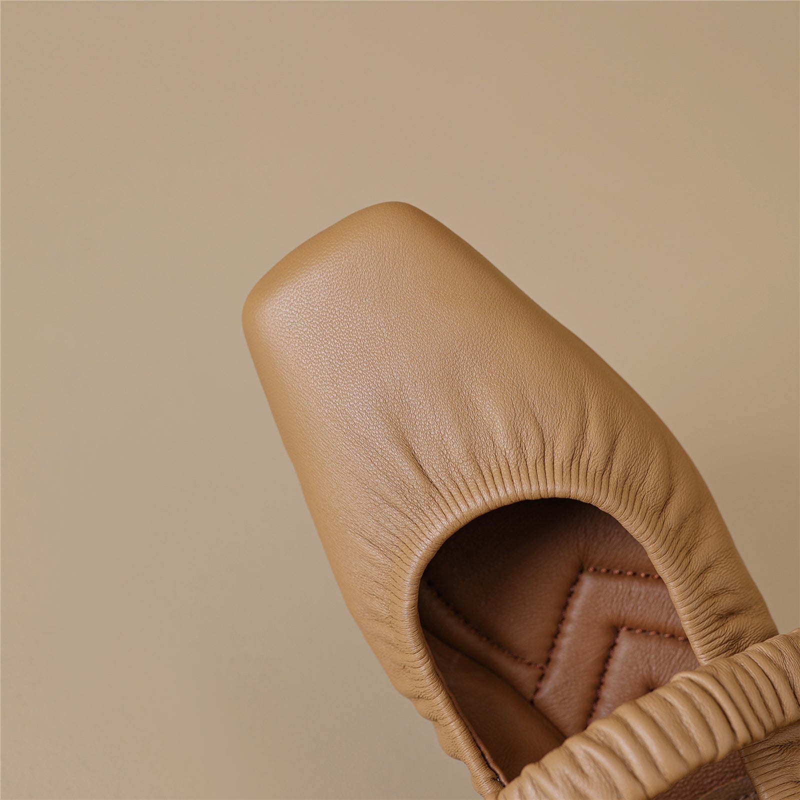 TinaCus Damen-Schlupfschuhe aus echtem Leder, handgefertigt, mit Rüschen, quadratischer Zehenpartie, flach