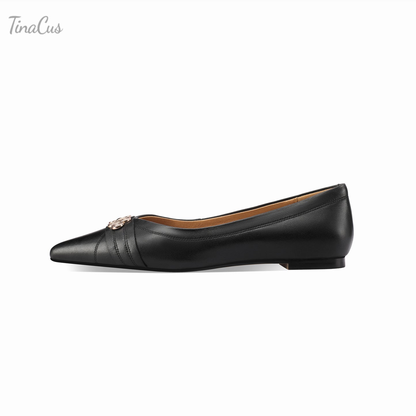 Flache Schuhe aus echtem Leder mit runder Spitze und Slip-On-Verschluss passen zu Ihrem Kleid, Ihren Jeans und Hosen.