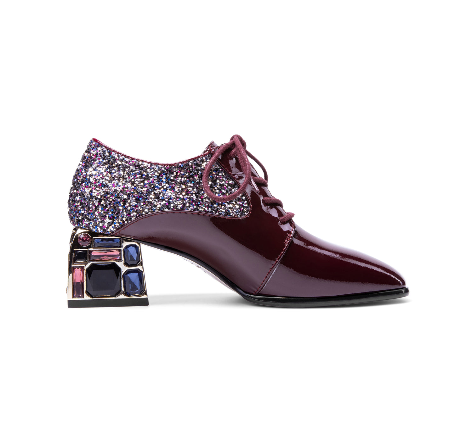Diese Pumps sind aus Lackleder gefertigt und haben eine quadratische Zehenpartie sowie einen klobigen Absatz mit Kristallen. Die rutschfeste Sohle zeigt bei jedem Schritt Ihr Selbstvertrauen.