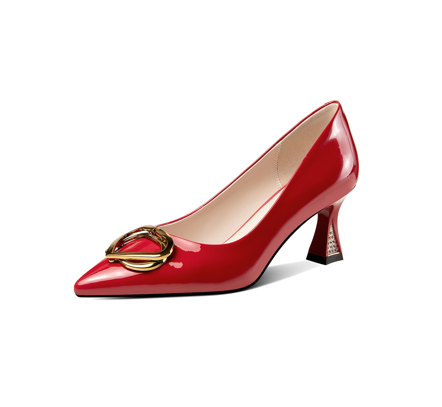 TinaCus Damen-Pumps aus glänzendem Lackleder, handgefertigt, mit Spulenabsatz, spitzer Zehenpartie und Metallherz