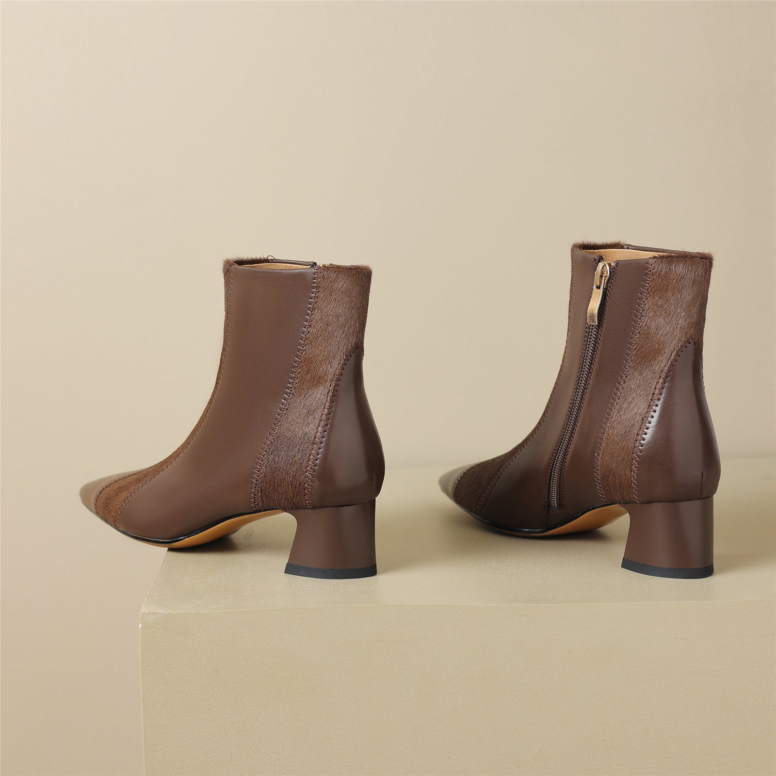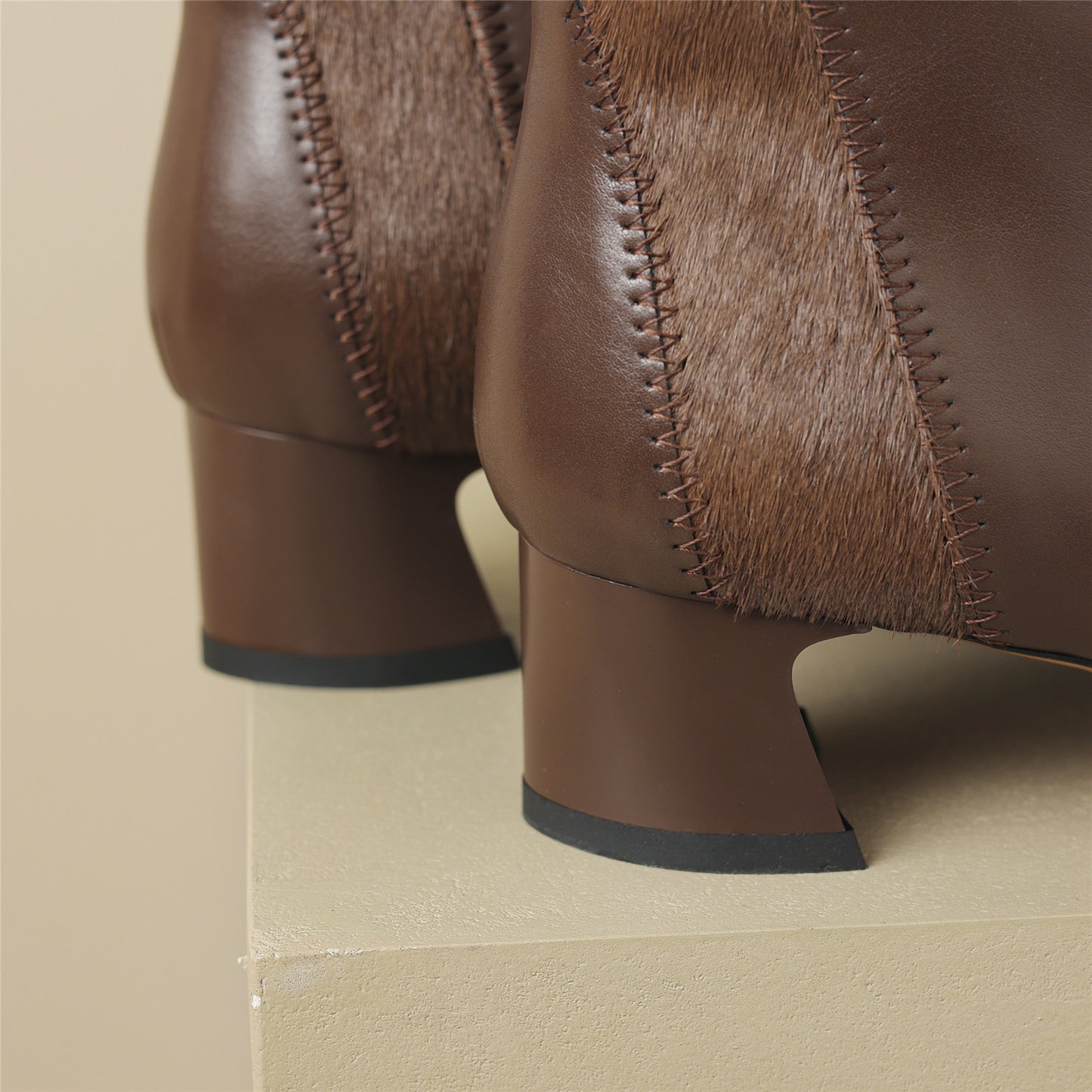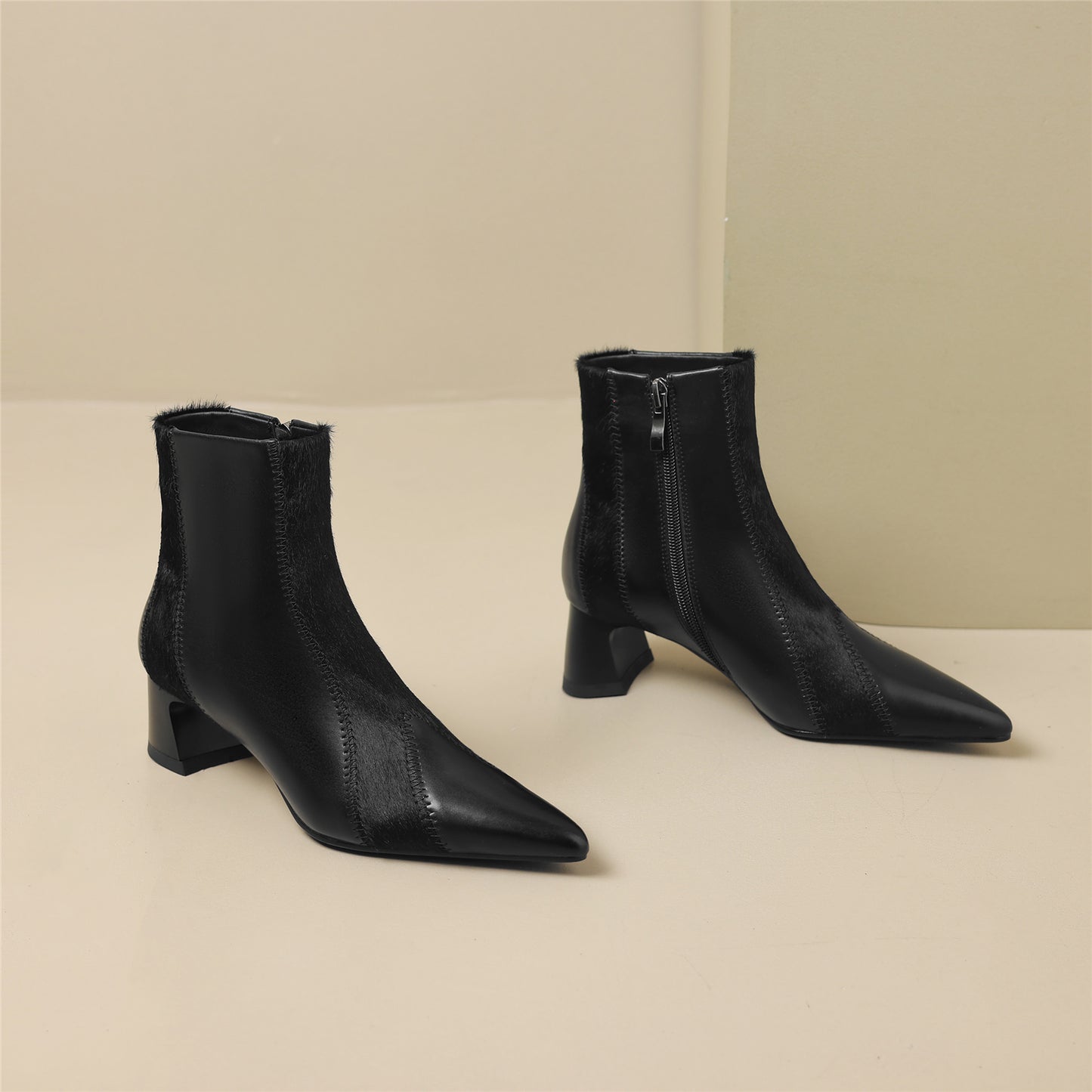 TinaCus Handgefertigte Damen-Stiefeletten aus echtem Leder mit Pferdehaar und Reißverschluss