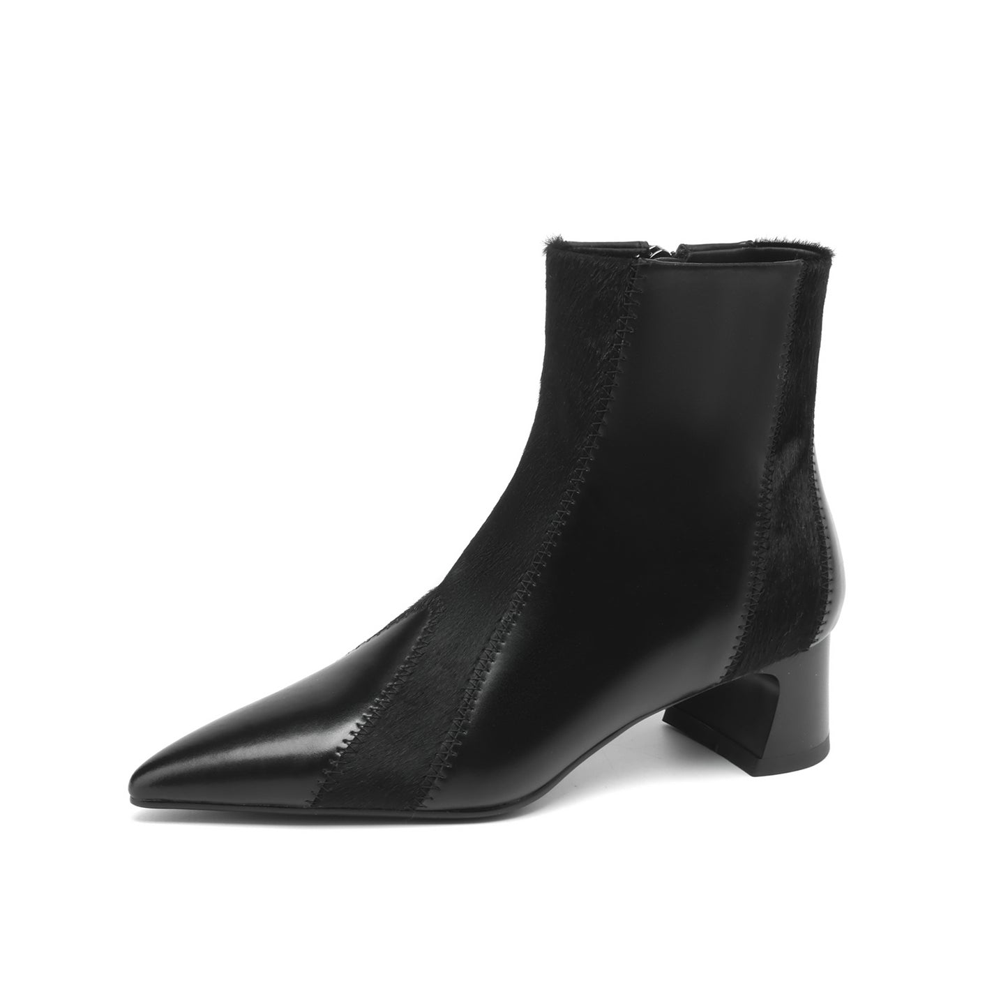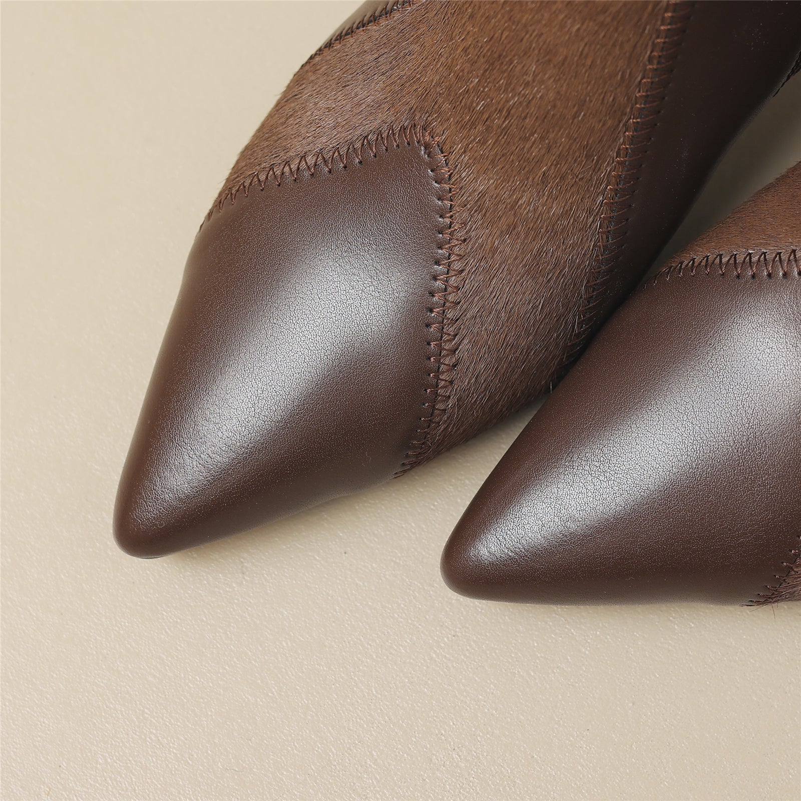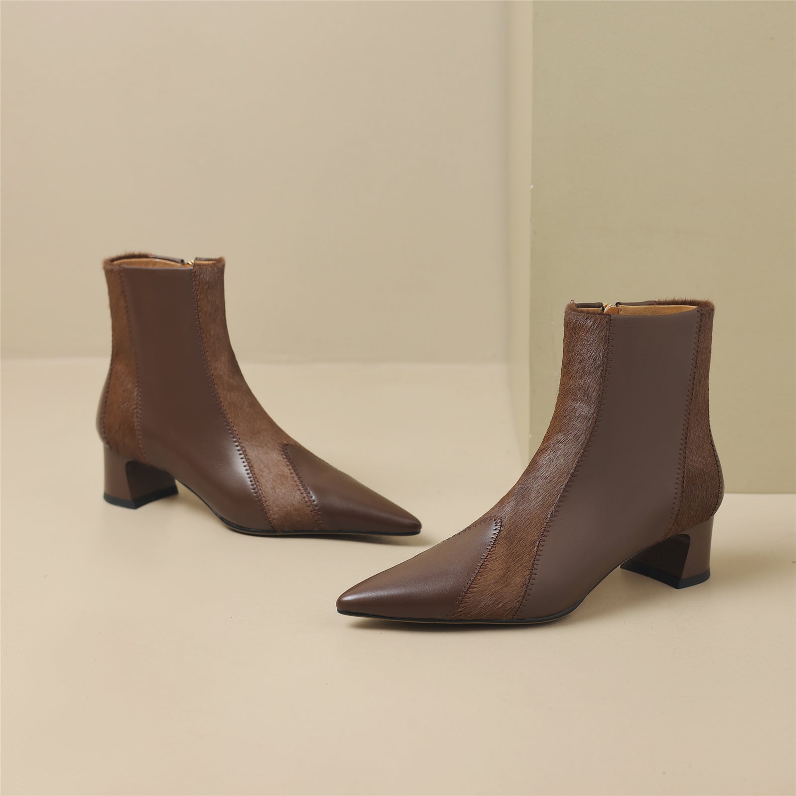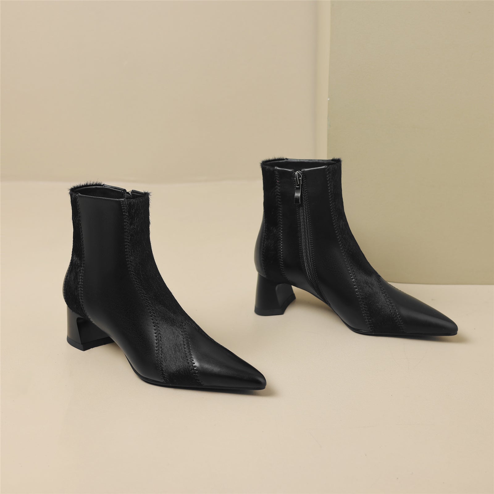 Stiefeletten werden aus echtem Leder mit spitzer Spitze und Reißverschluss gefertigt, um mit dem Modetrend Schritt zu halten.