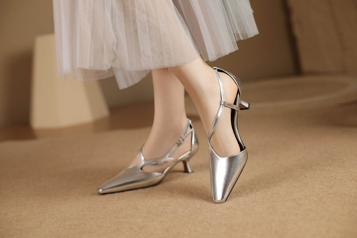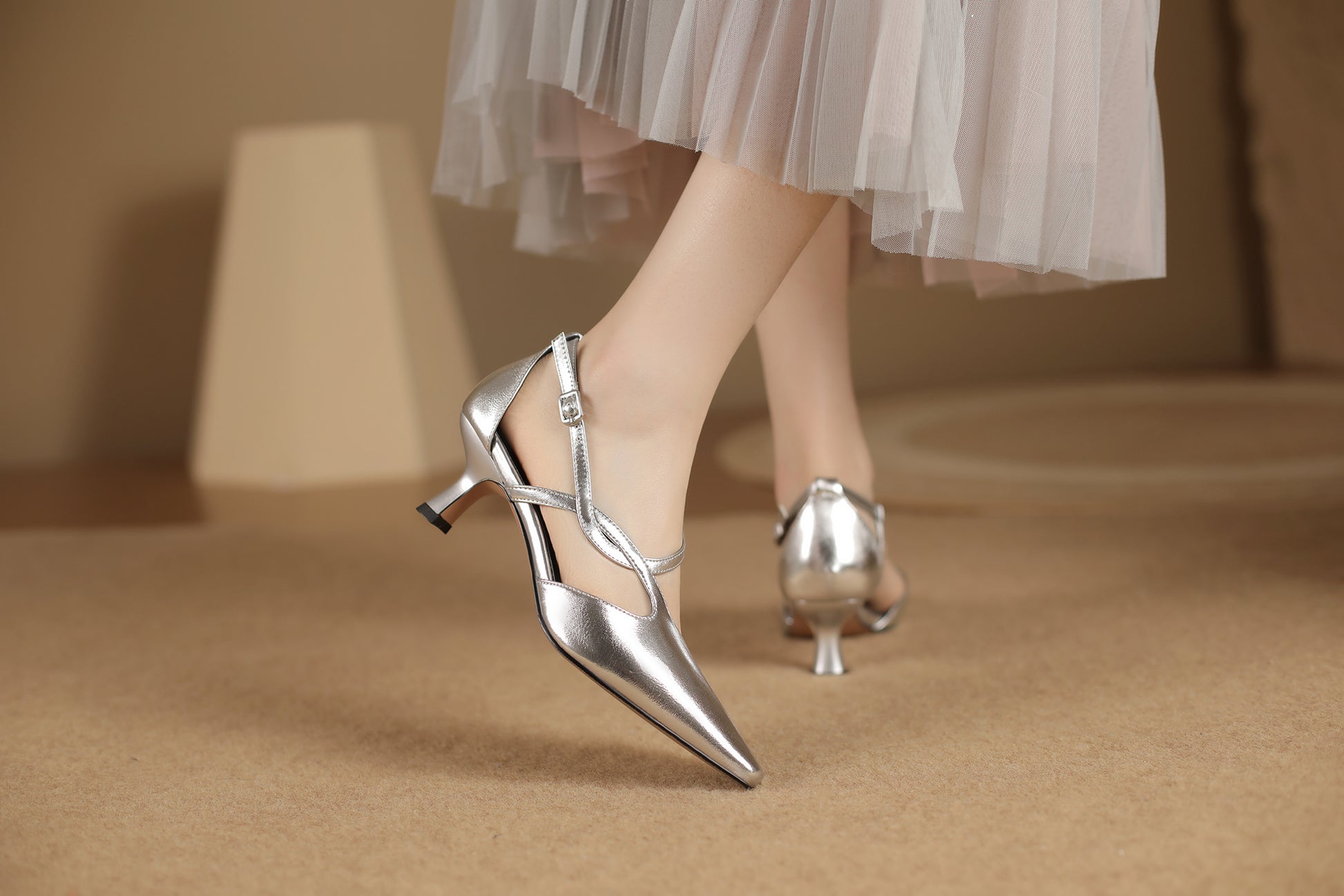 TinaCus Handgefertigte Damen-Sandalen aus echtem Leder mit spitzer Zehenpartie und Kitten Heel-Schnalle