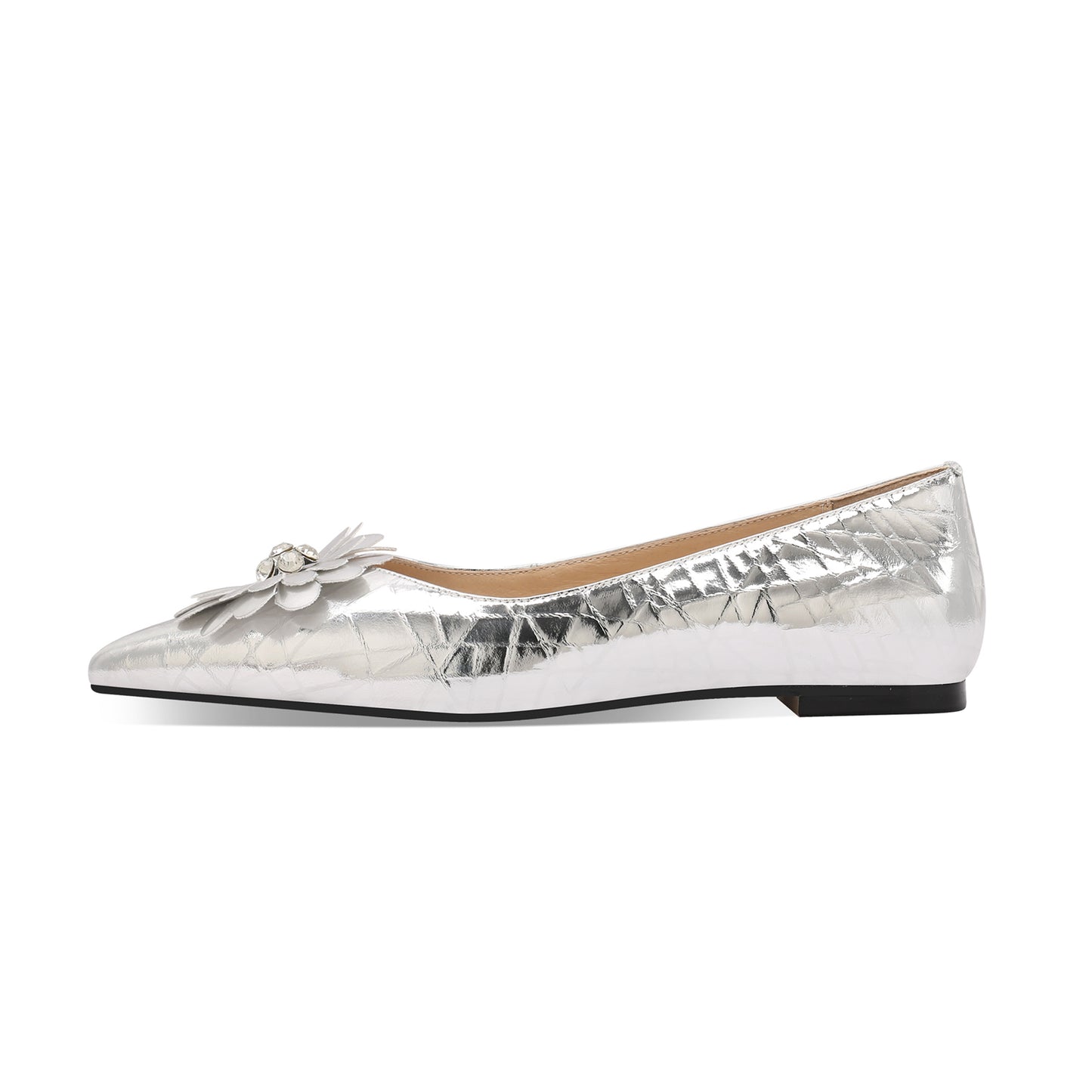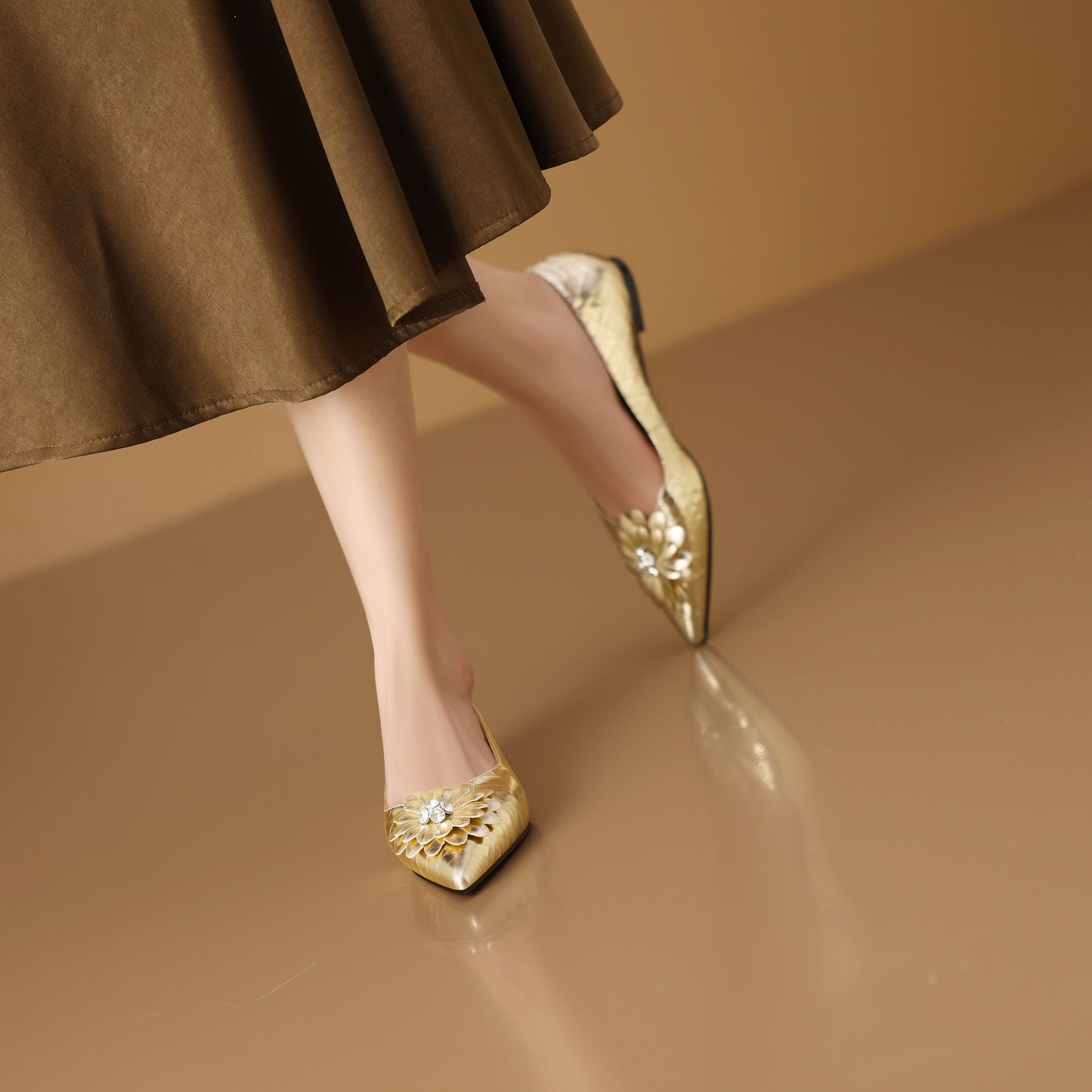 TinaCus Handgefertigte Damen-Schlupfschuhe aus Leder mit spitzer Zehenpartie und Blumenmuster