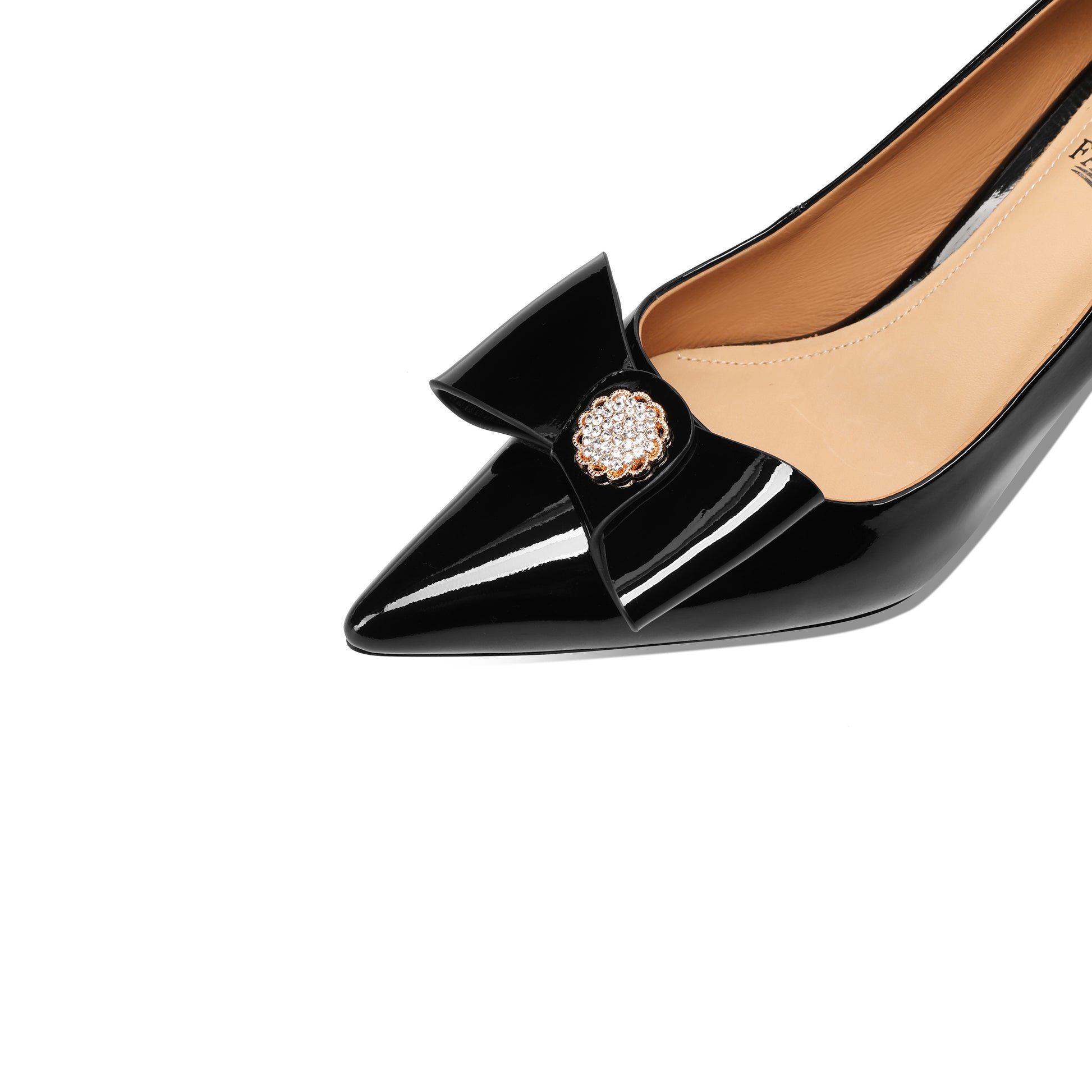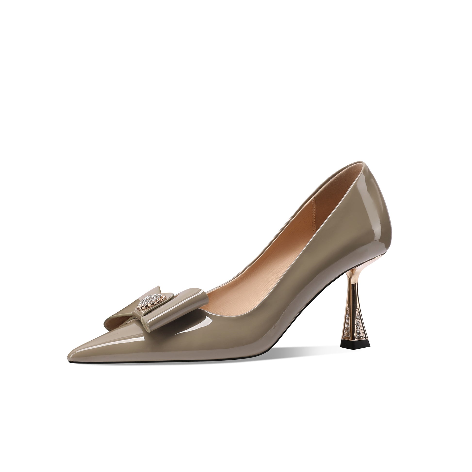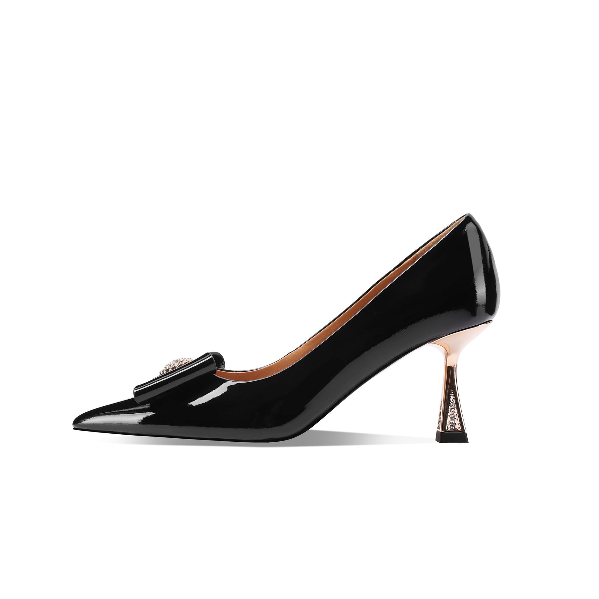 TinaCus Handgefertigte Damen-Pumps aus Lackleder mit Schleife, spitzer Zehenpartie und Metallabsatz