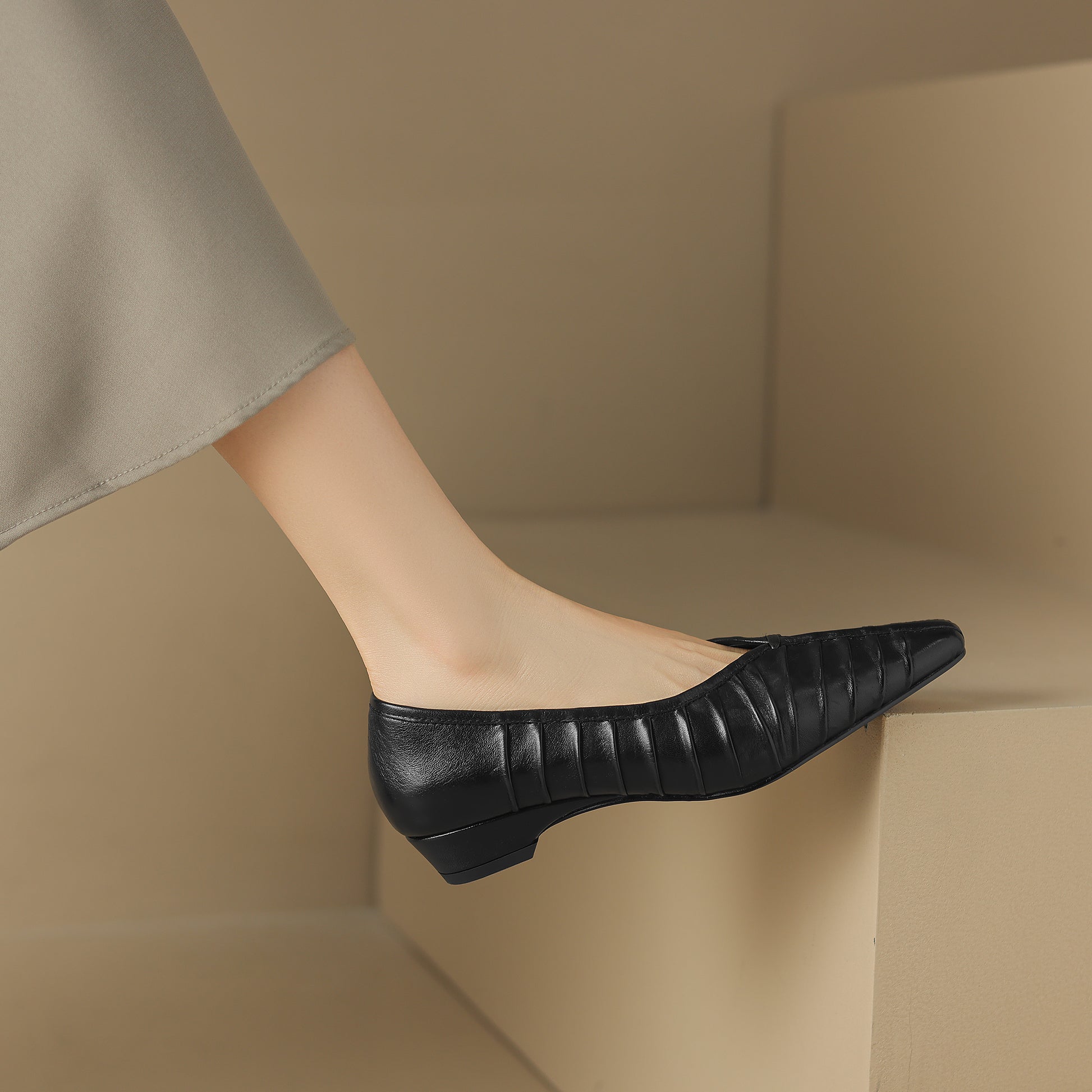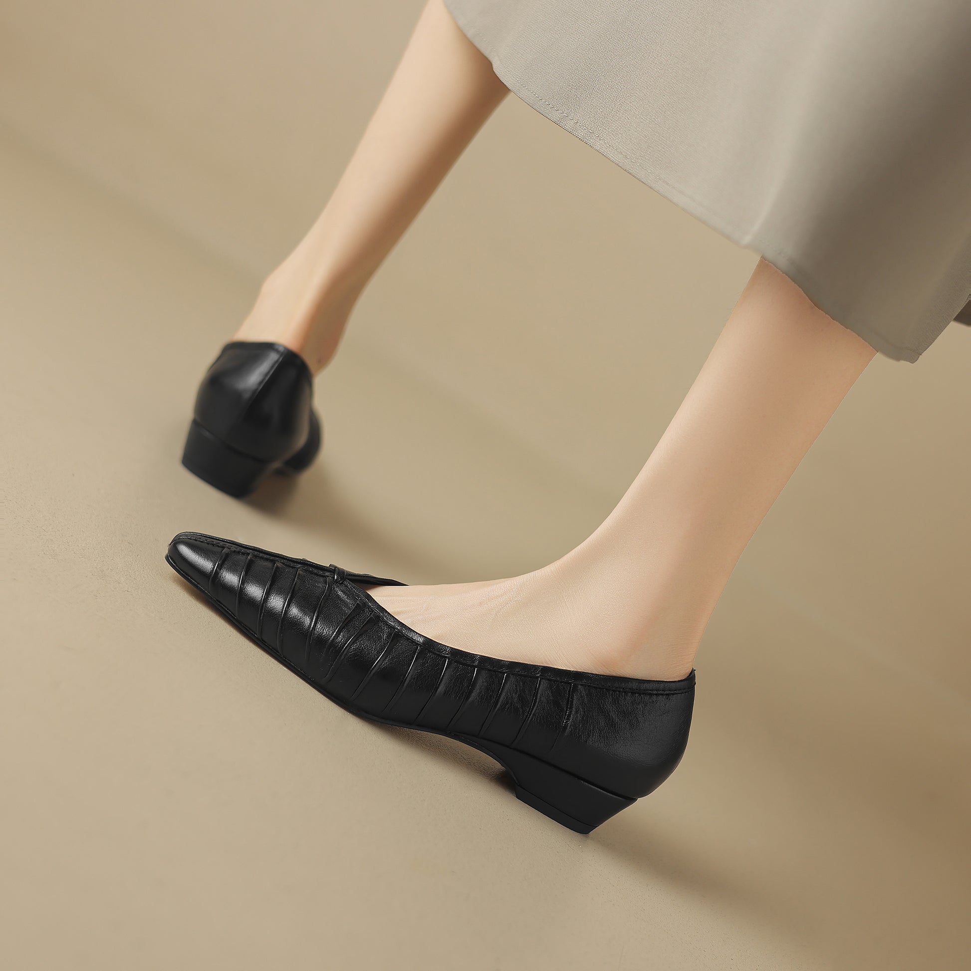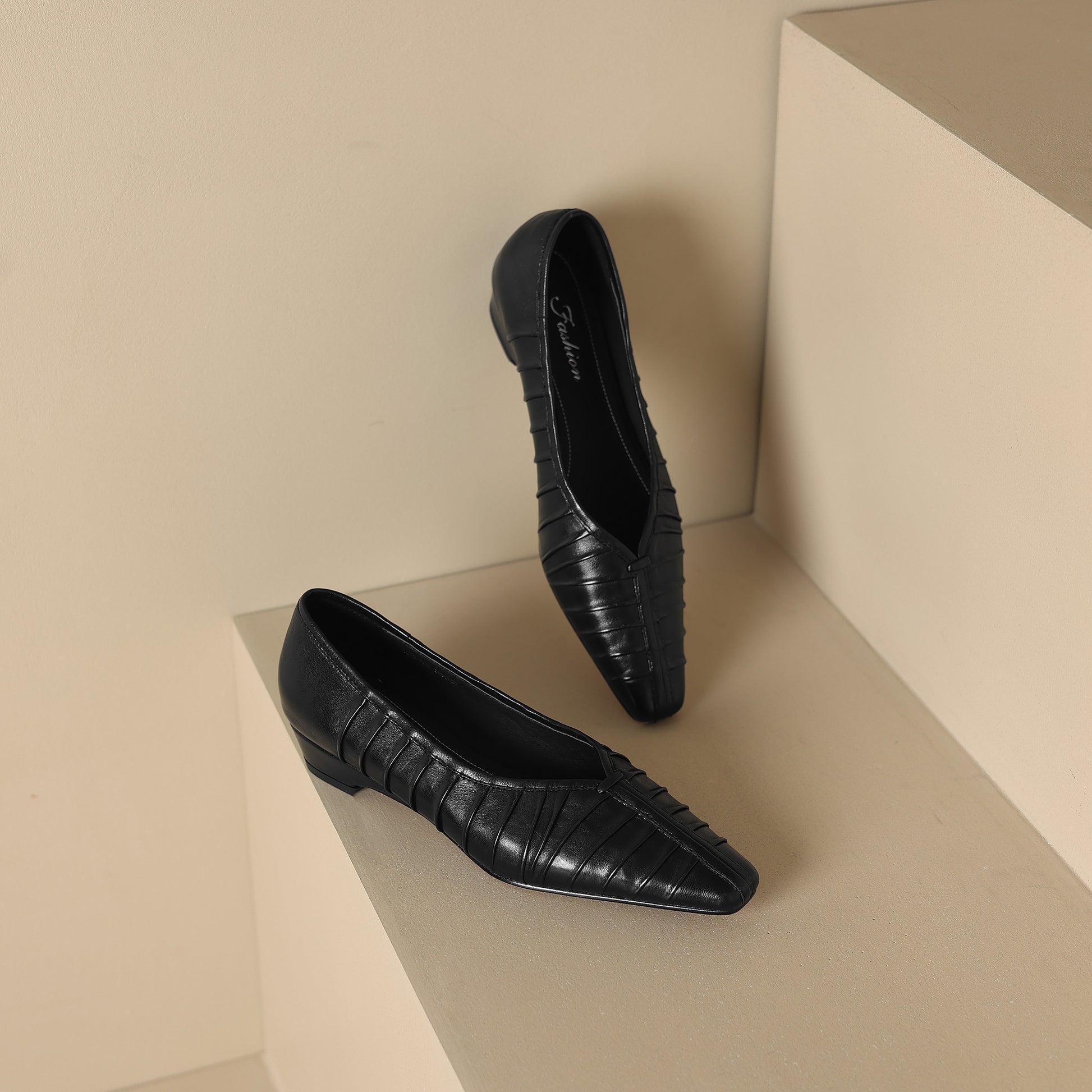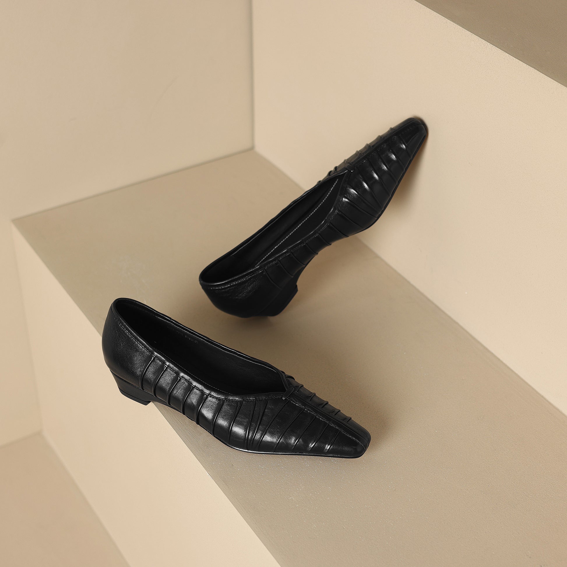 Pleated detailing gives these classic ballet flats sophisticated texture and timeless standout style.