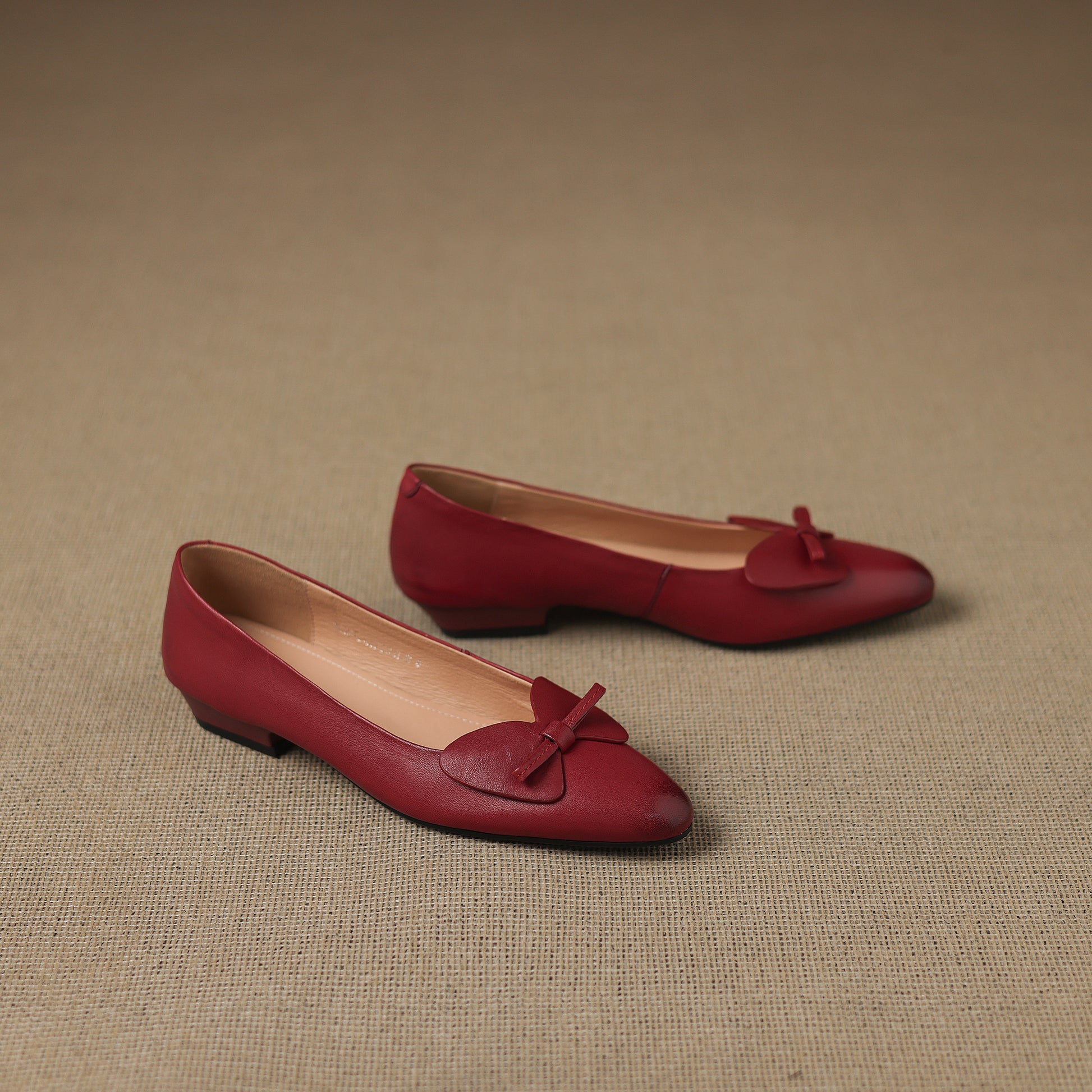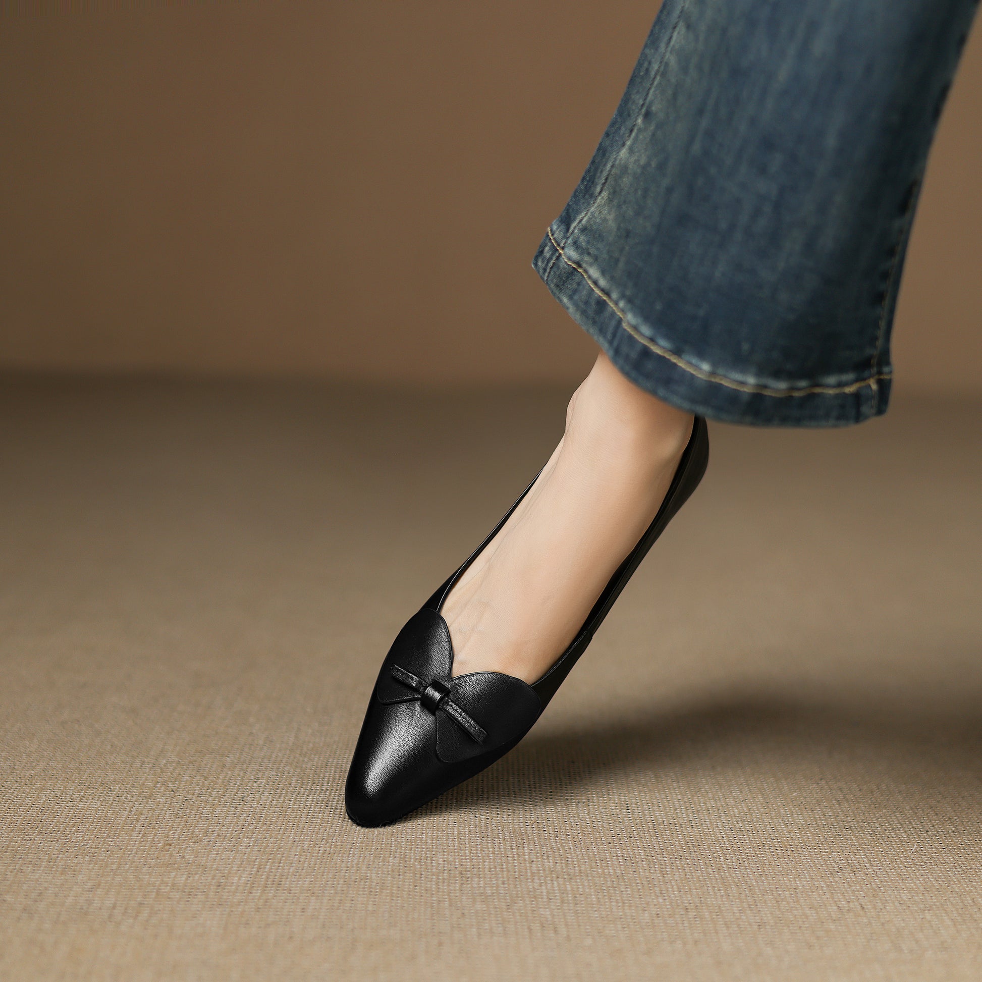 TinaCus Handmade Women's Genuine Leather Pointed Toe Slip On Office Dress Ballet Flats Shoes with Bow