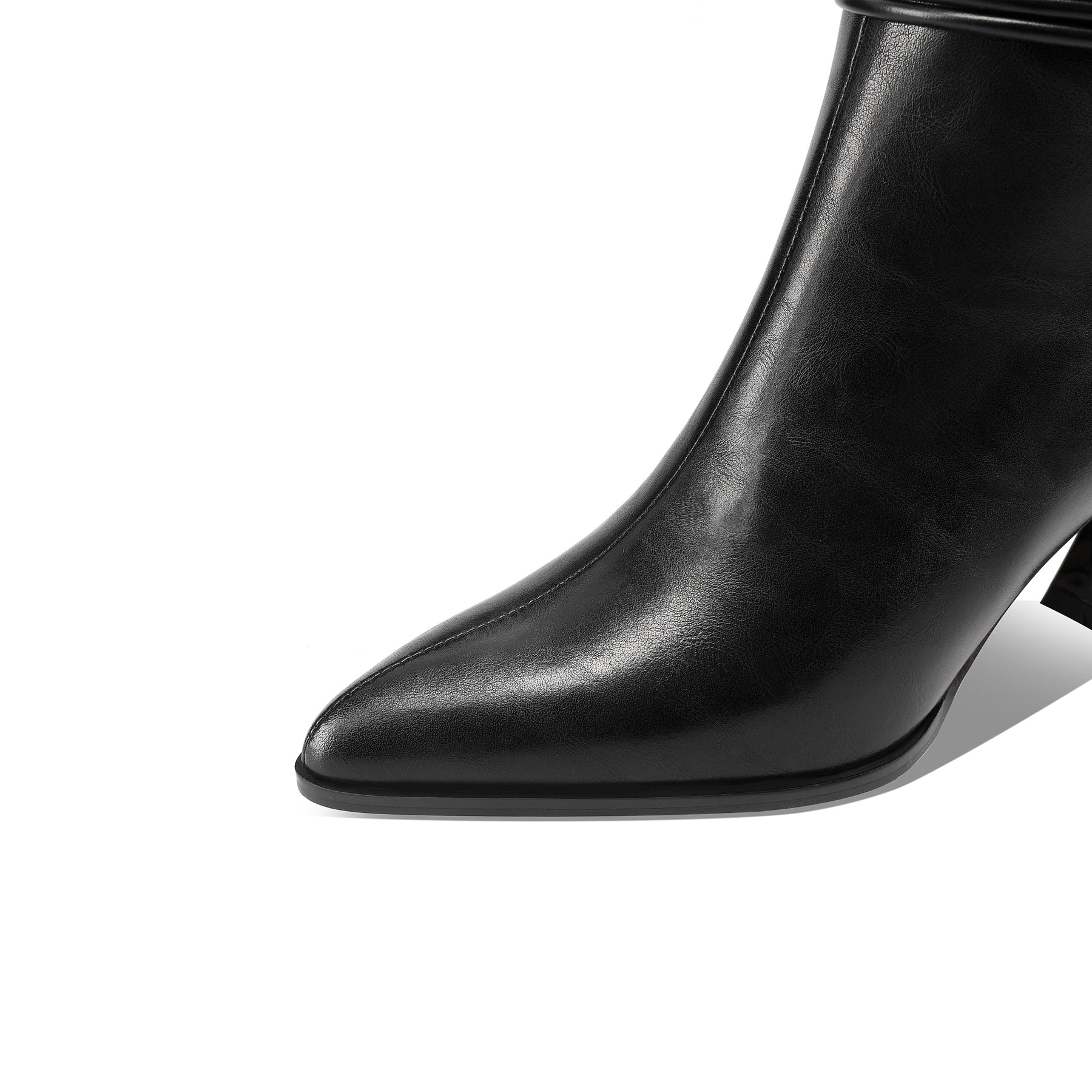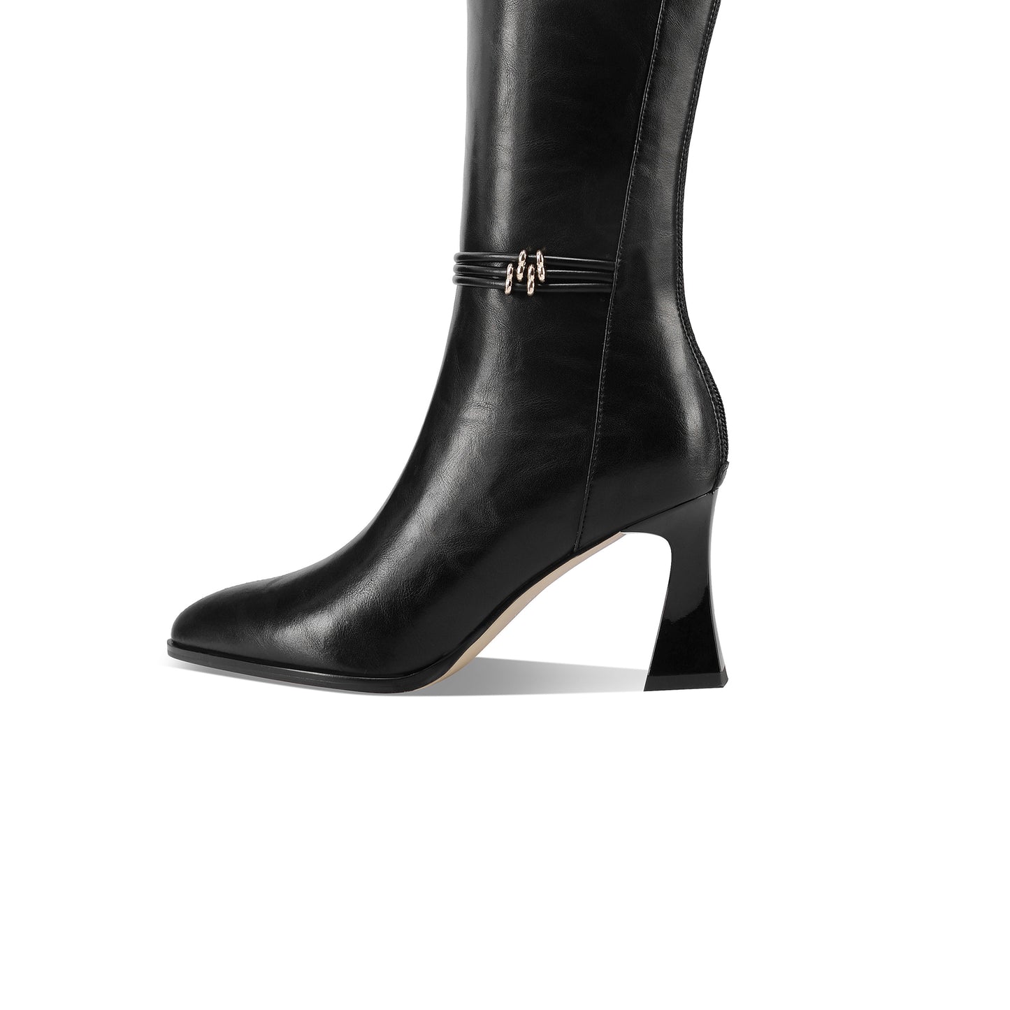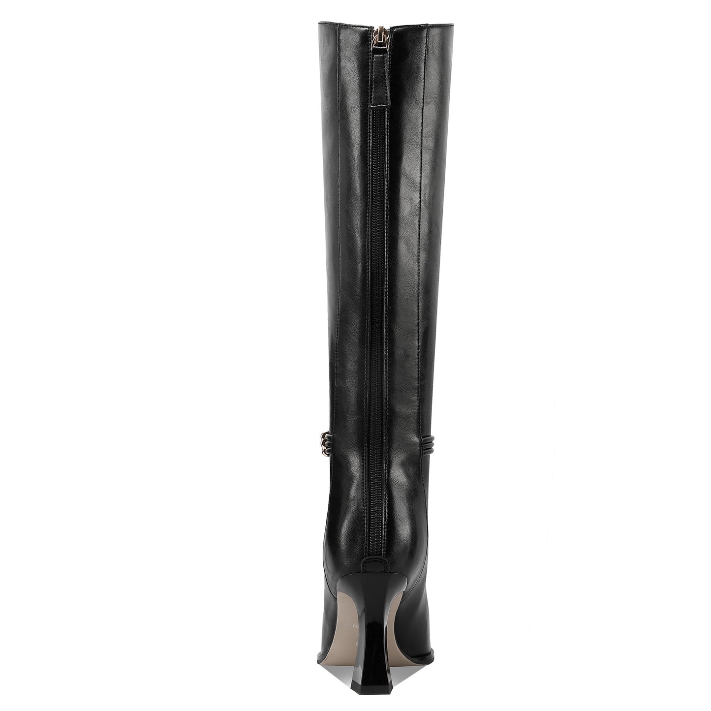 TinaCus Handgefertigte Damenstiefel aus echtem Leder mit spitzer Zehenpartie, Reißverschluss und Spulenabsatz, kniehoch