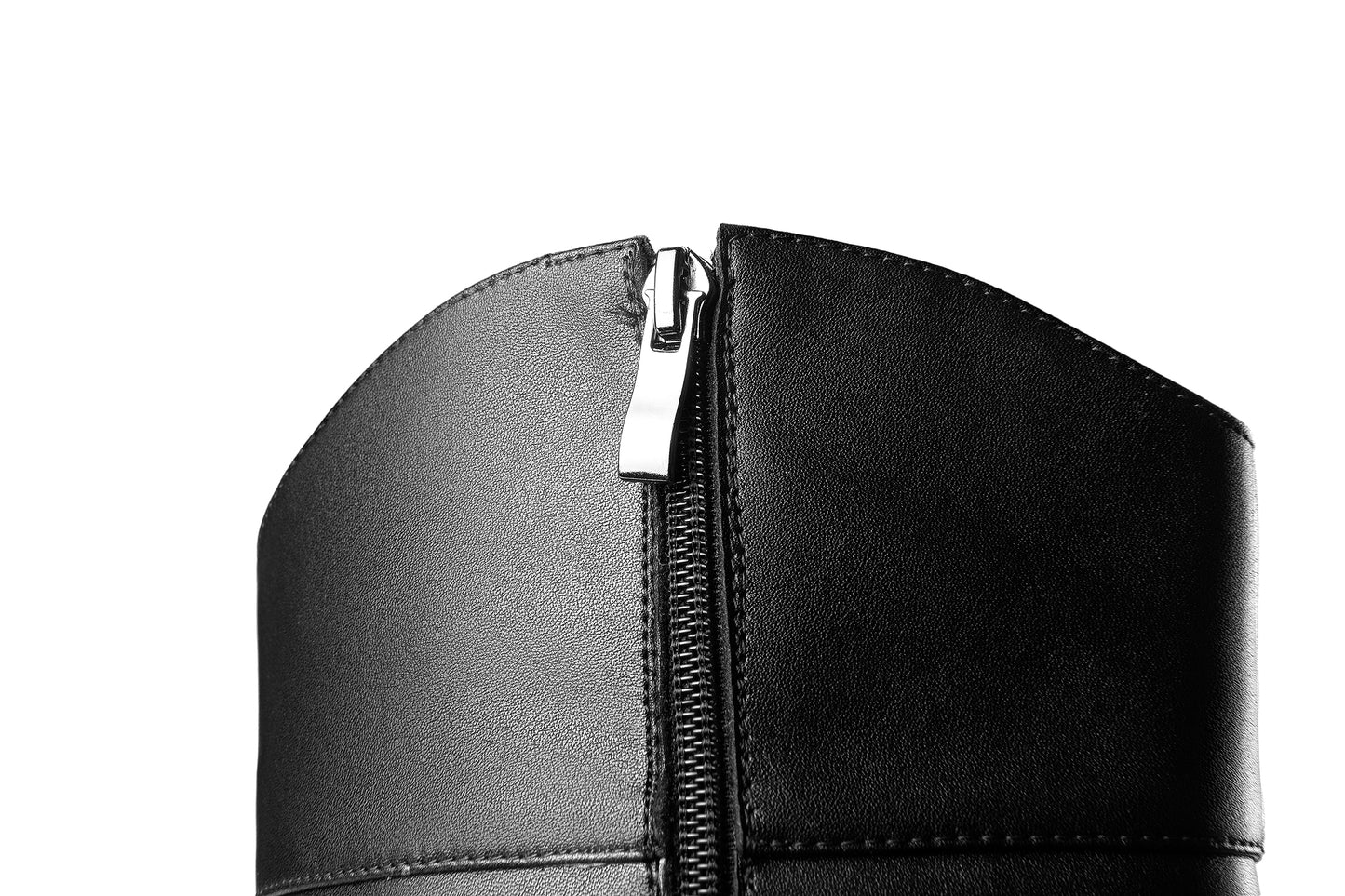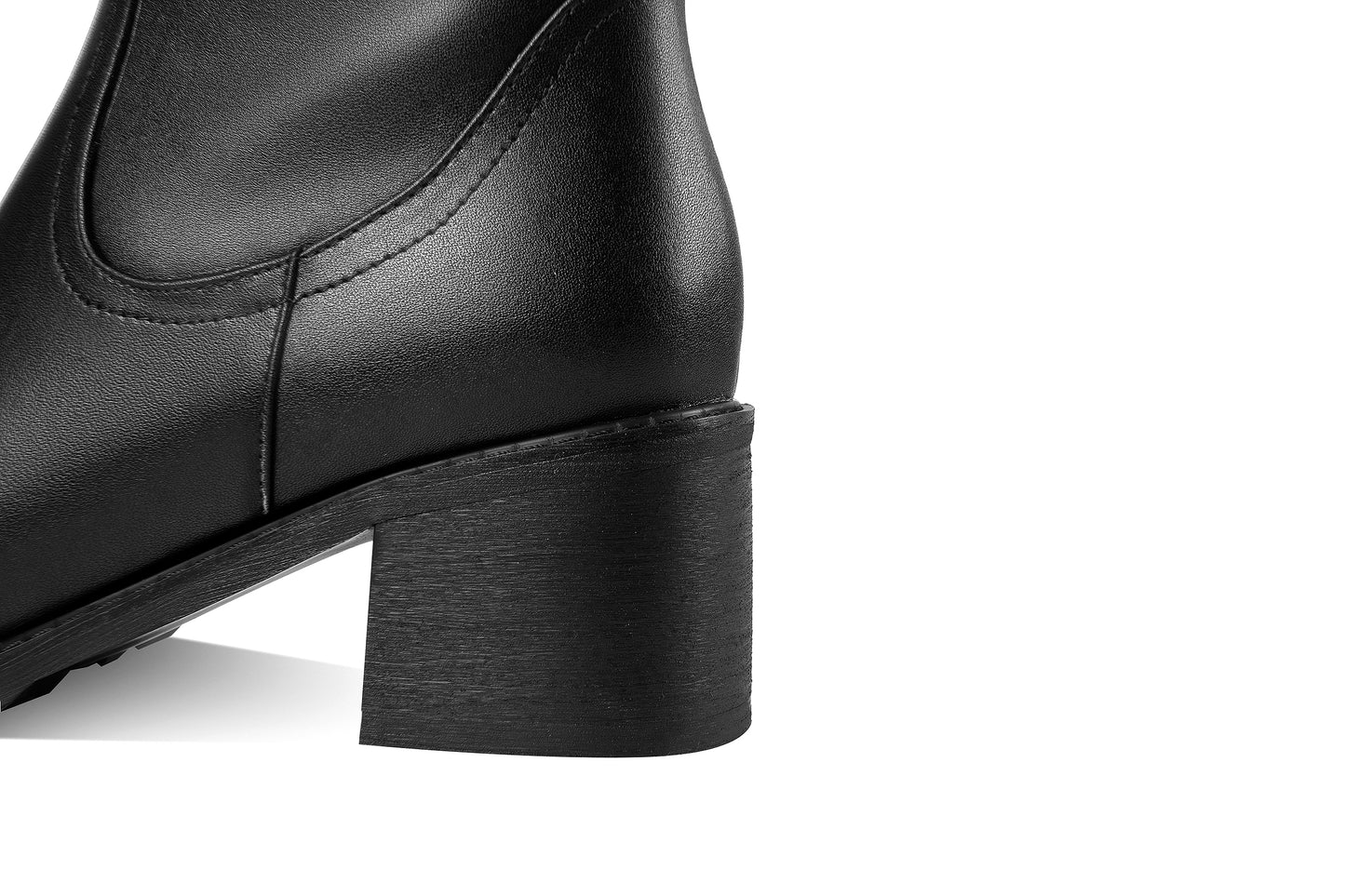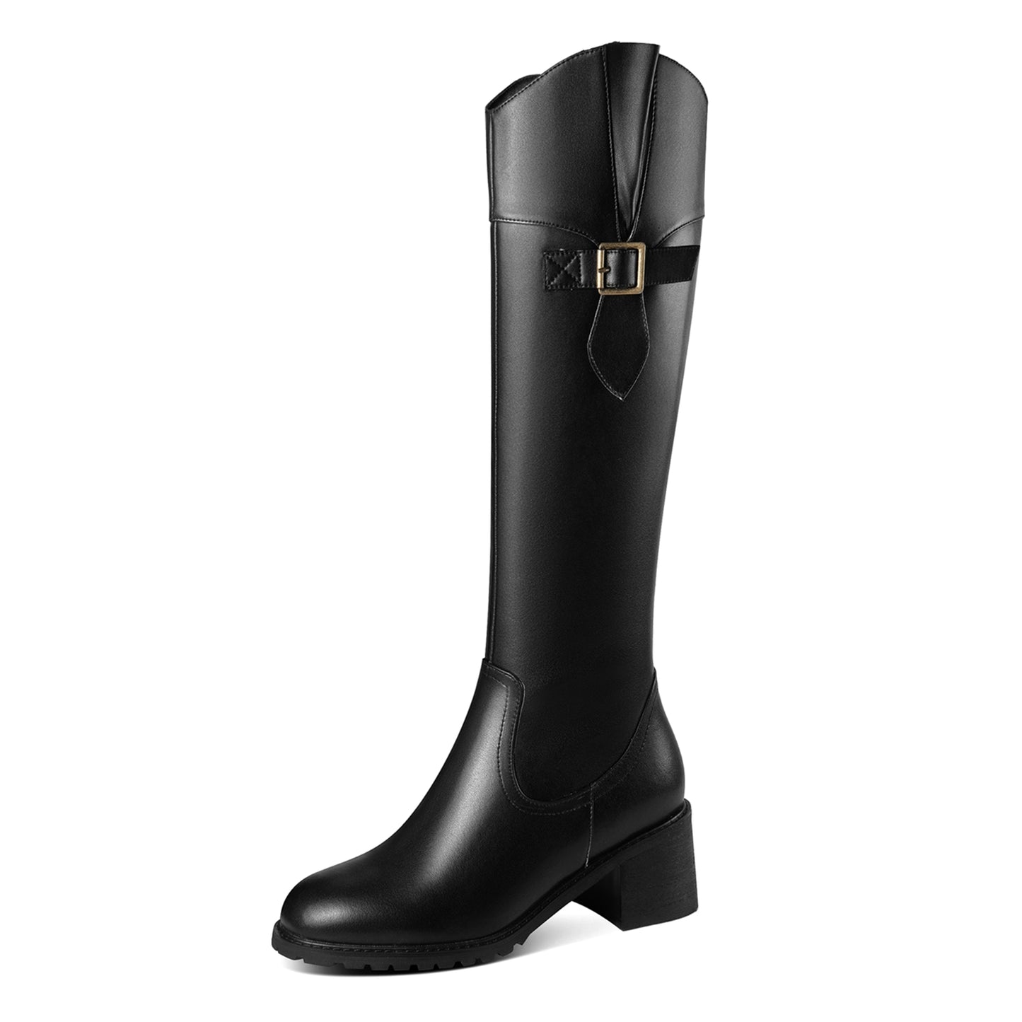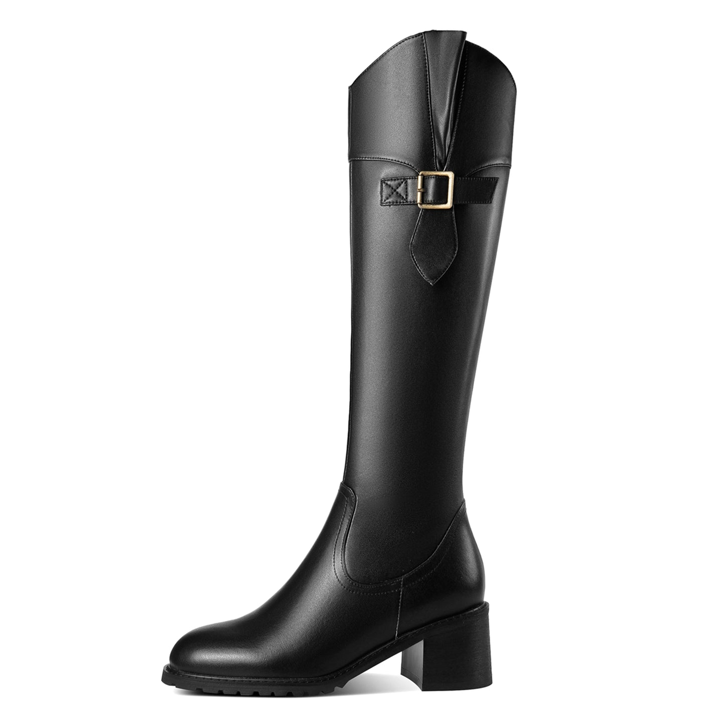 TinaCus Handgefertigte Damenstiefel aus echtem Leder mit seitlichem Reißverschluss, runder Zehenpartie, Blockabsatz und Schnalle, kniehohe Stiefel