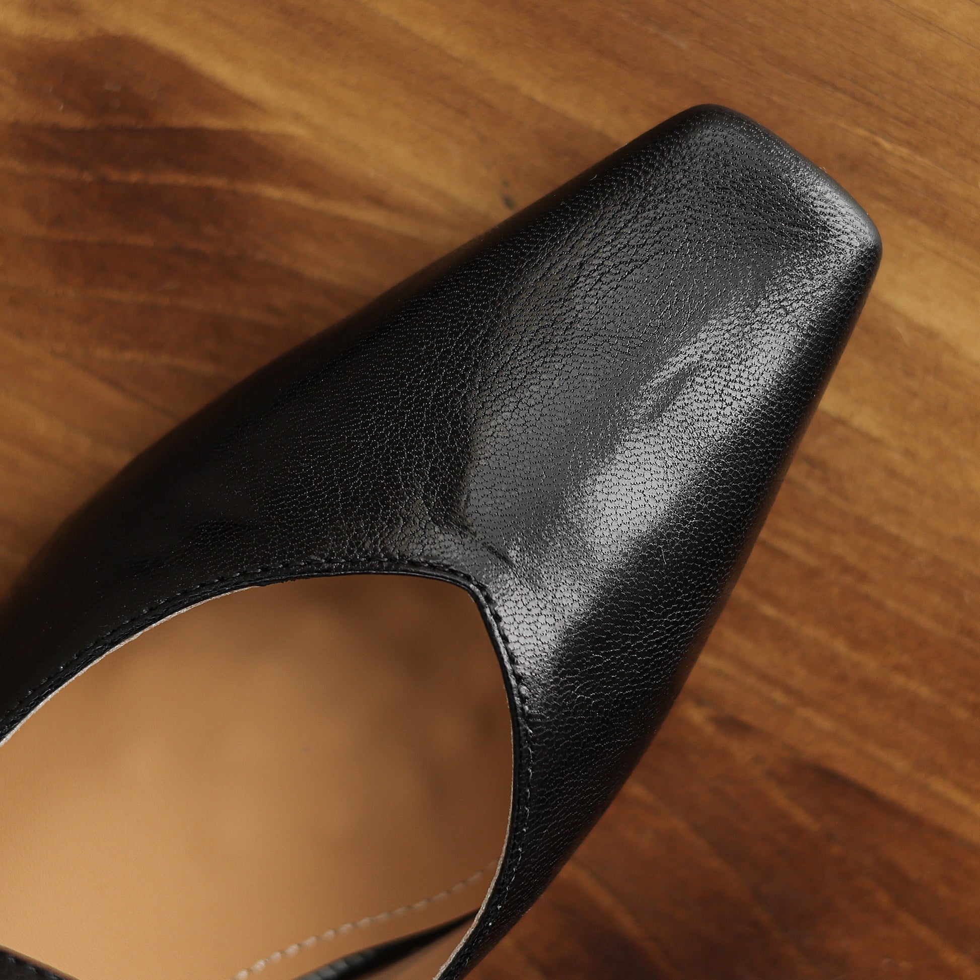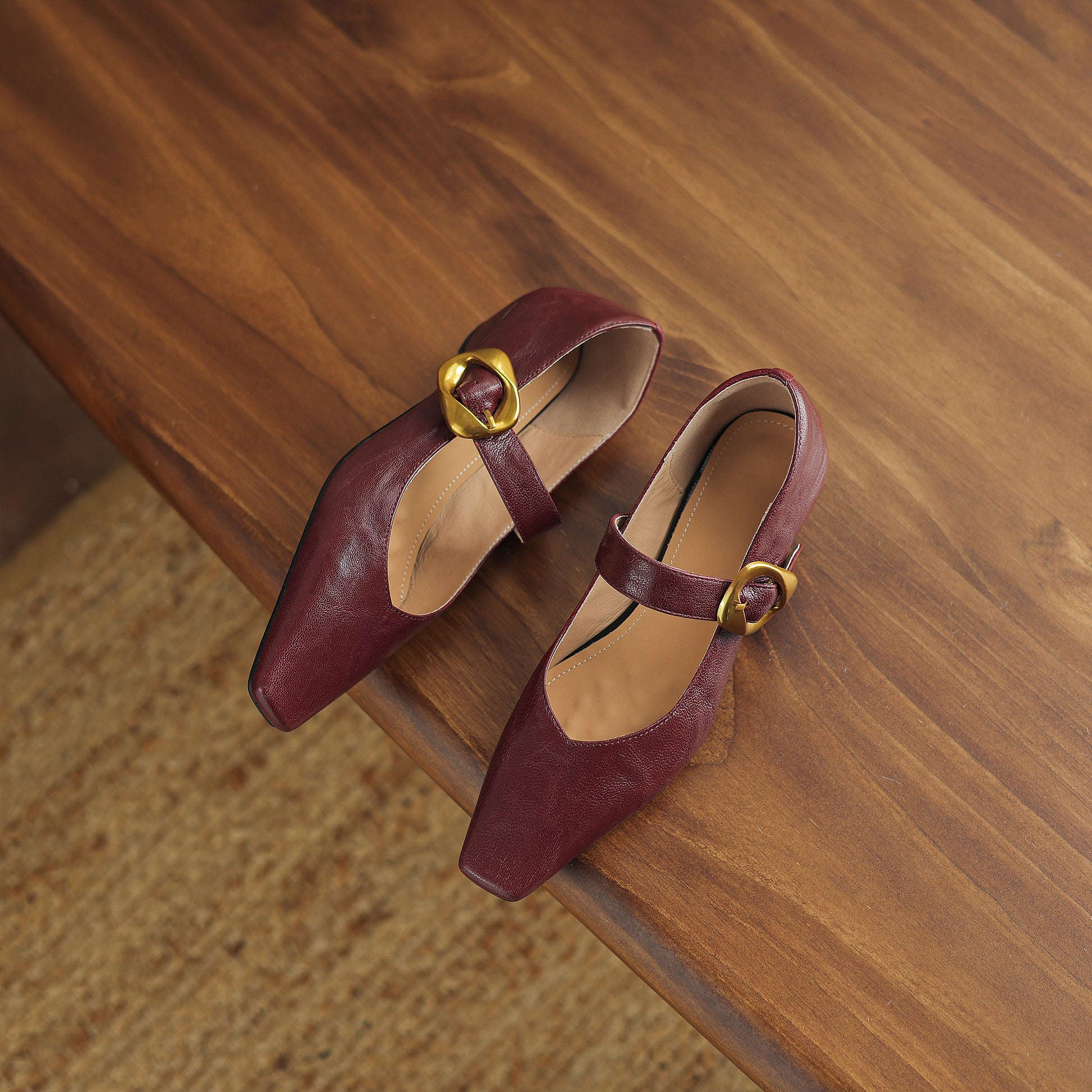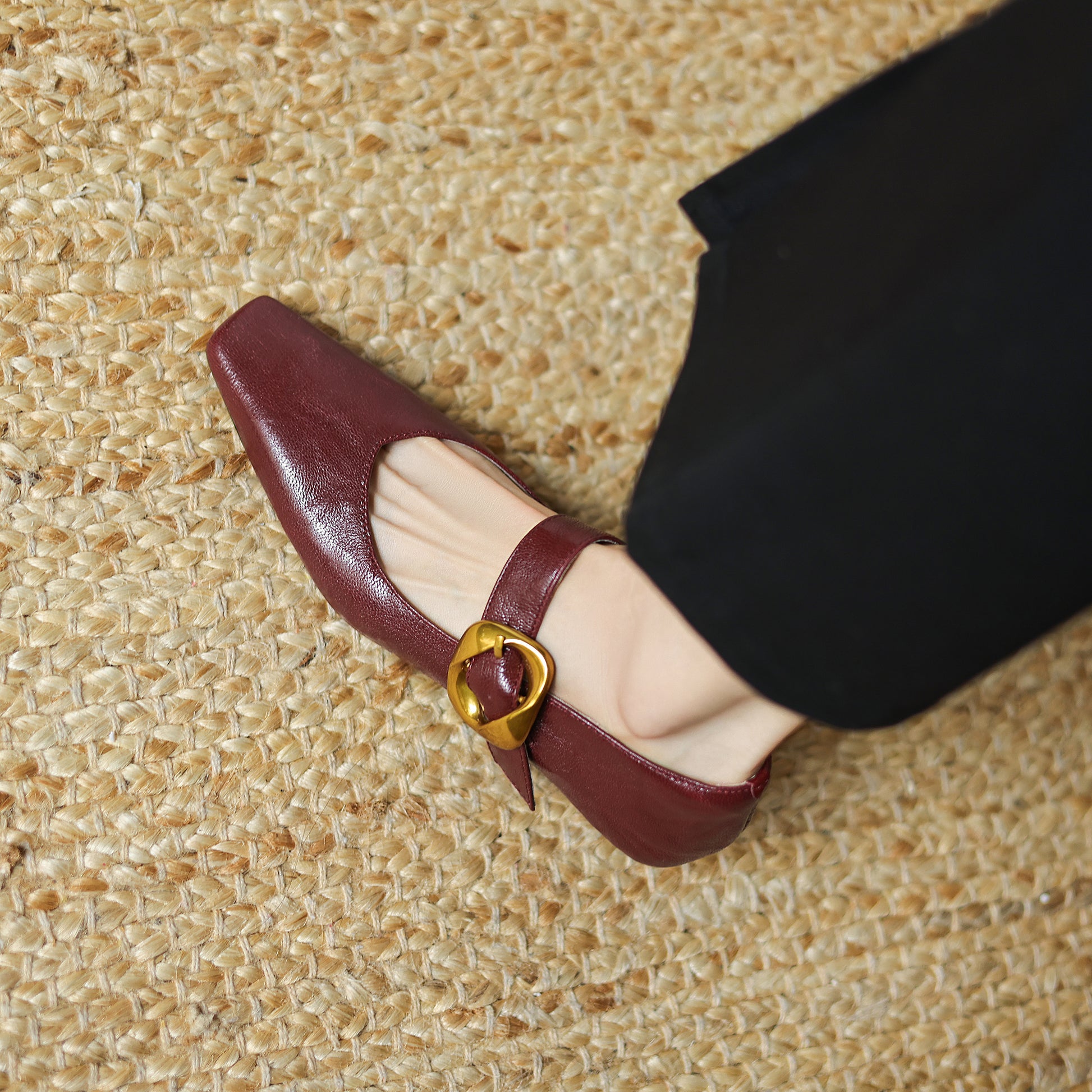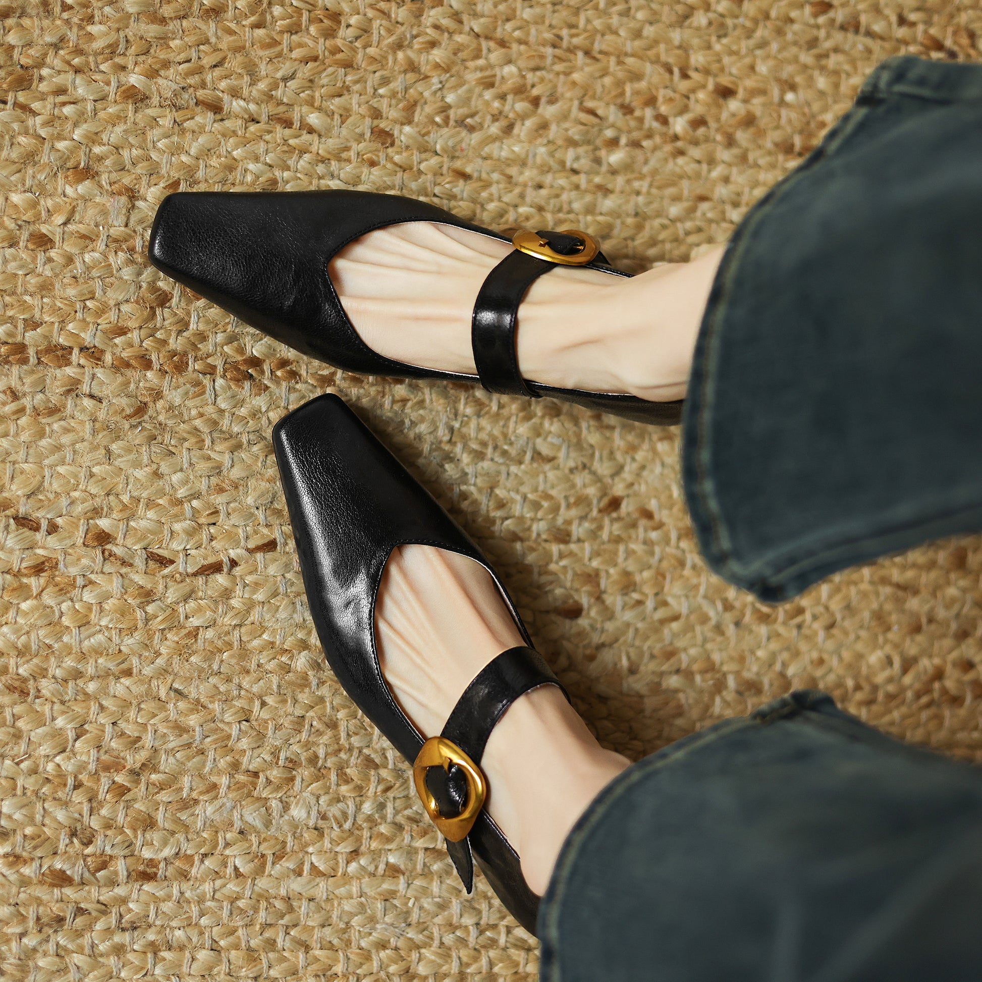 TinaCus Handmade Women's Genuine Leather Square Toe Metal Buckle Mary Jane Ballet Flats