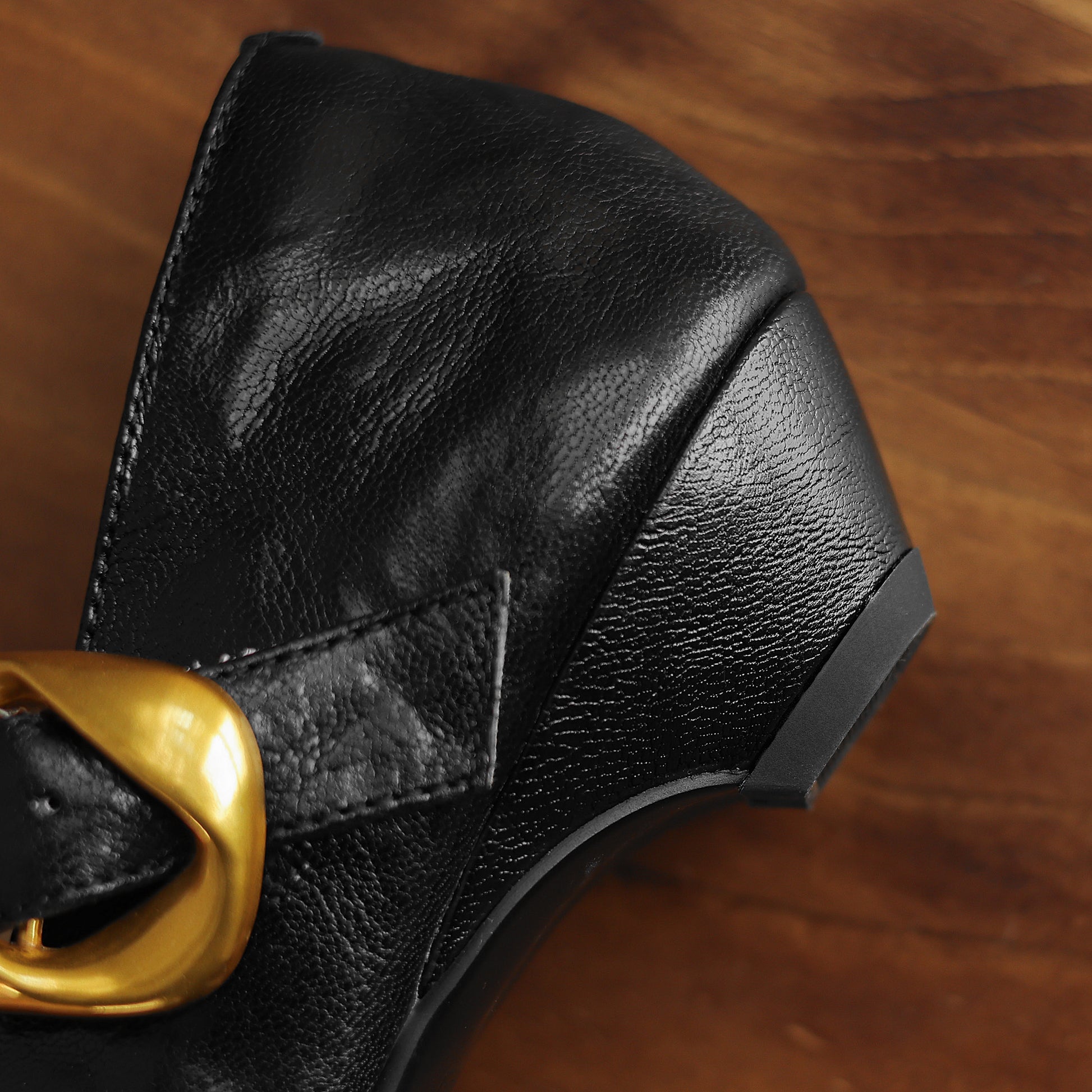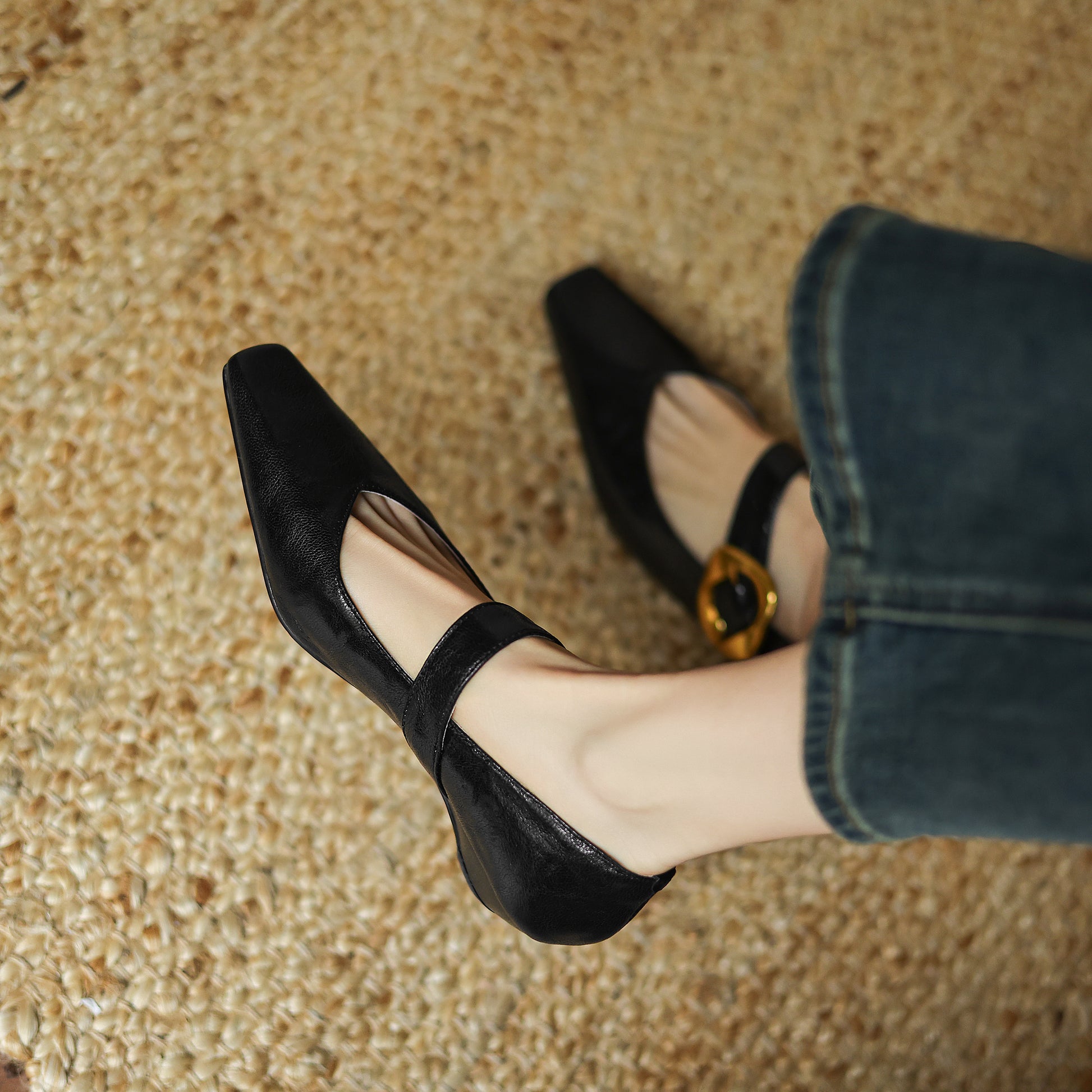 The upper of the shoes features a retro color scheme, a classic square toe design, and is adorned with metal buckle, making you even more fashionable.