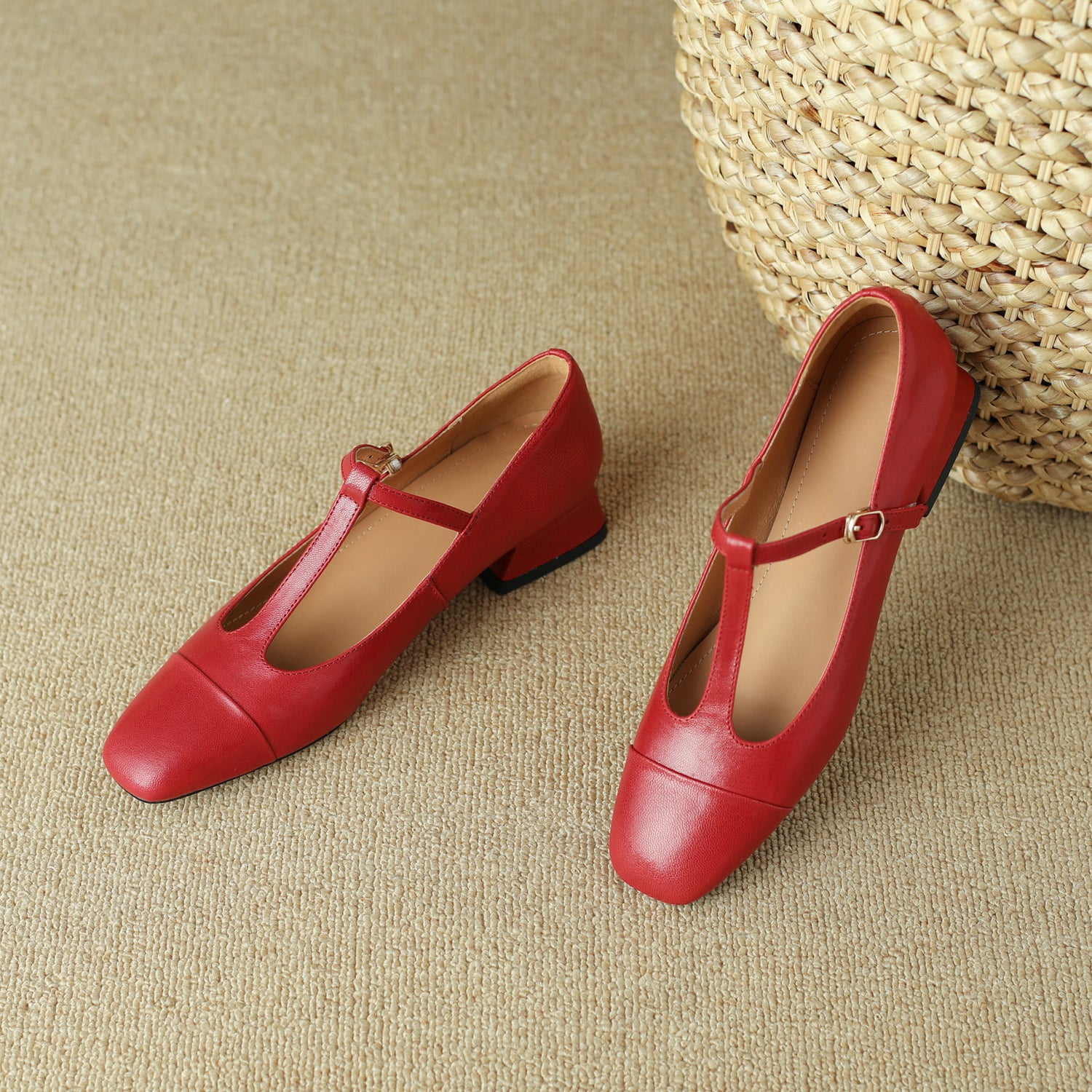TinaCus Damen Mary Jane Flats Schuhe mit T-Riemen-Schnalle, handgefertigt, echtes Leder