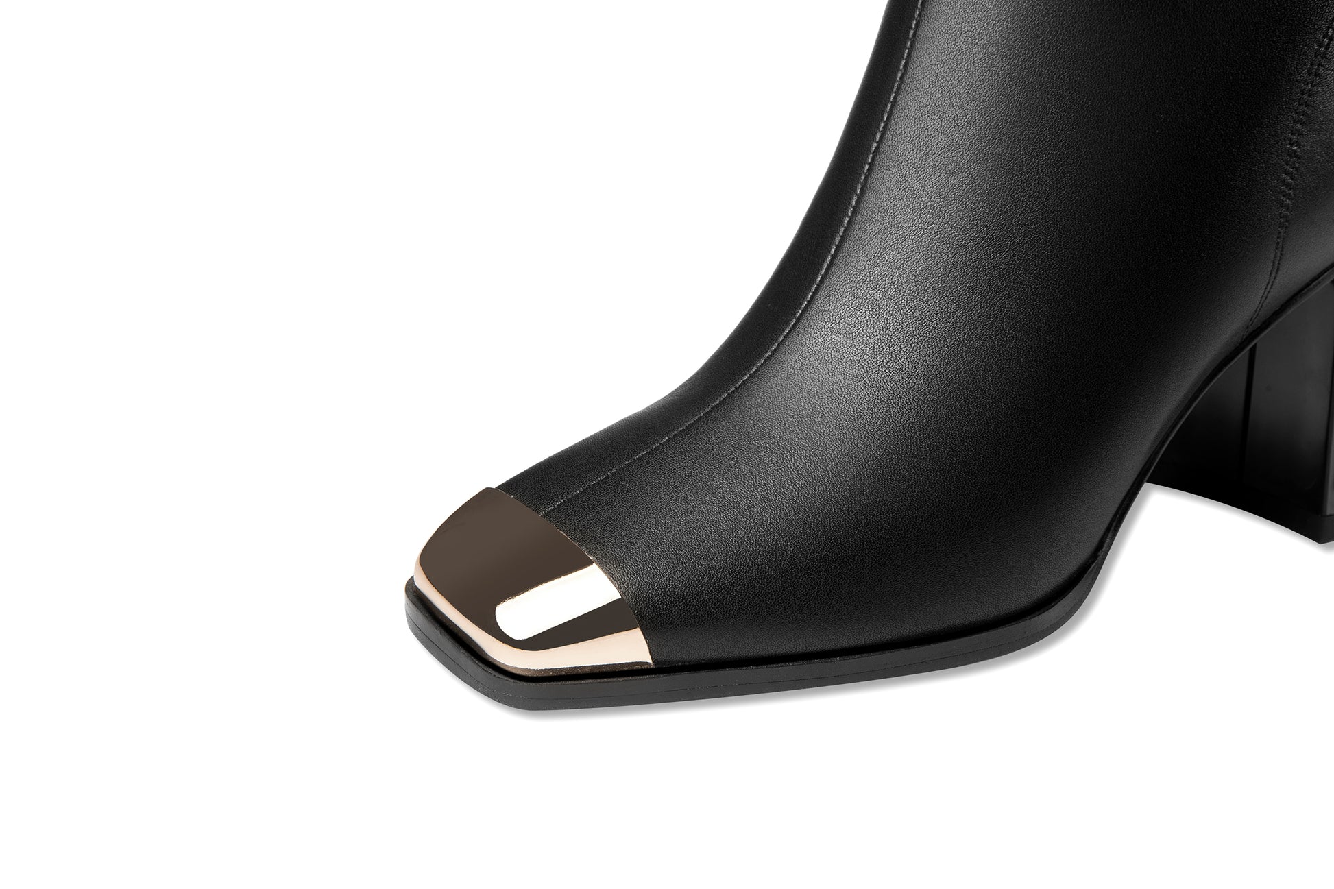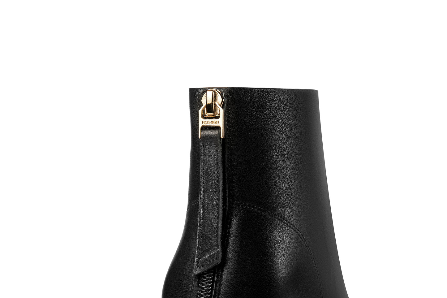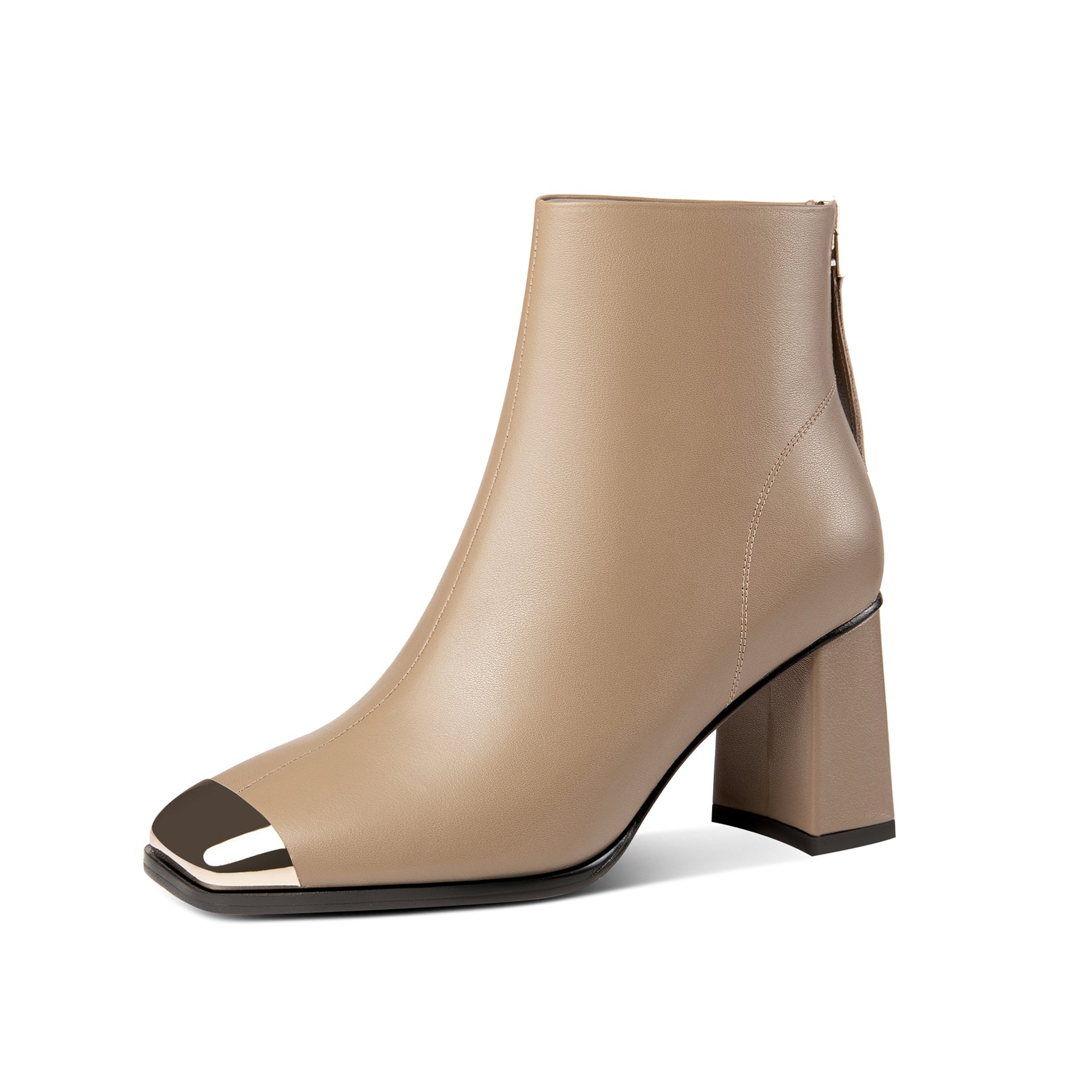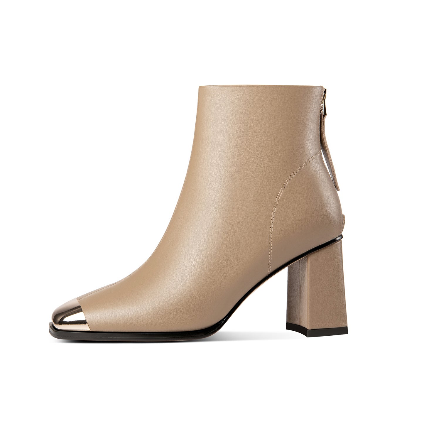 Stiefeletten werden aus echtem Leder mit quadratischer Zehenpartie, klobigem Absatz und Reißverschluss gefertigt, um mit dem Modetrend Schritt zu halten.