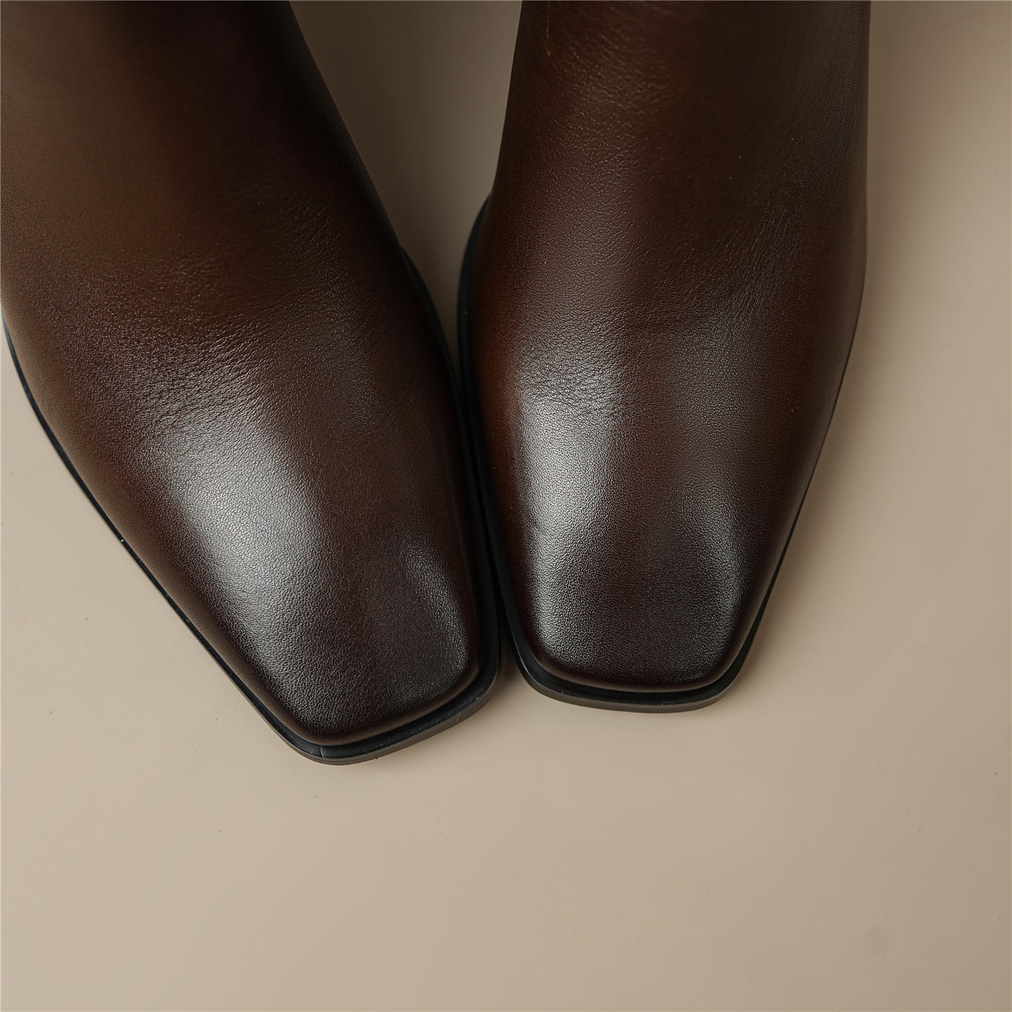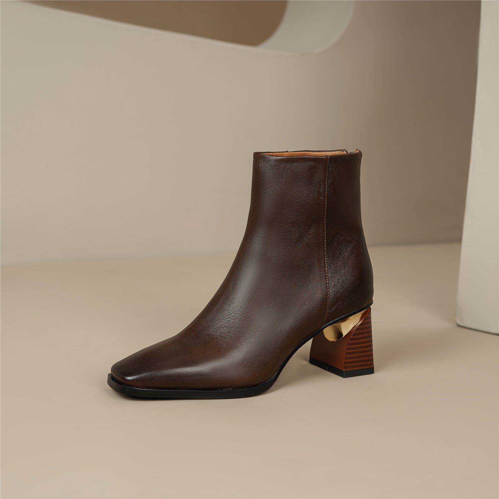 TinaCus Damen-Stiefeletten aus echtem Leder, handgefertigt, mit klobigem Absatz, quadratischer Zehenpartie und Reißverschluss hinten