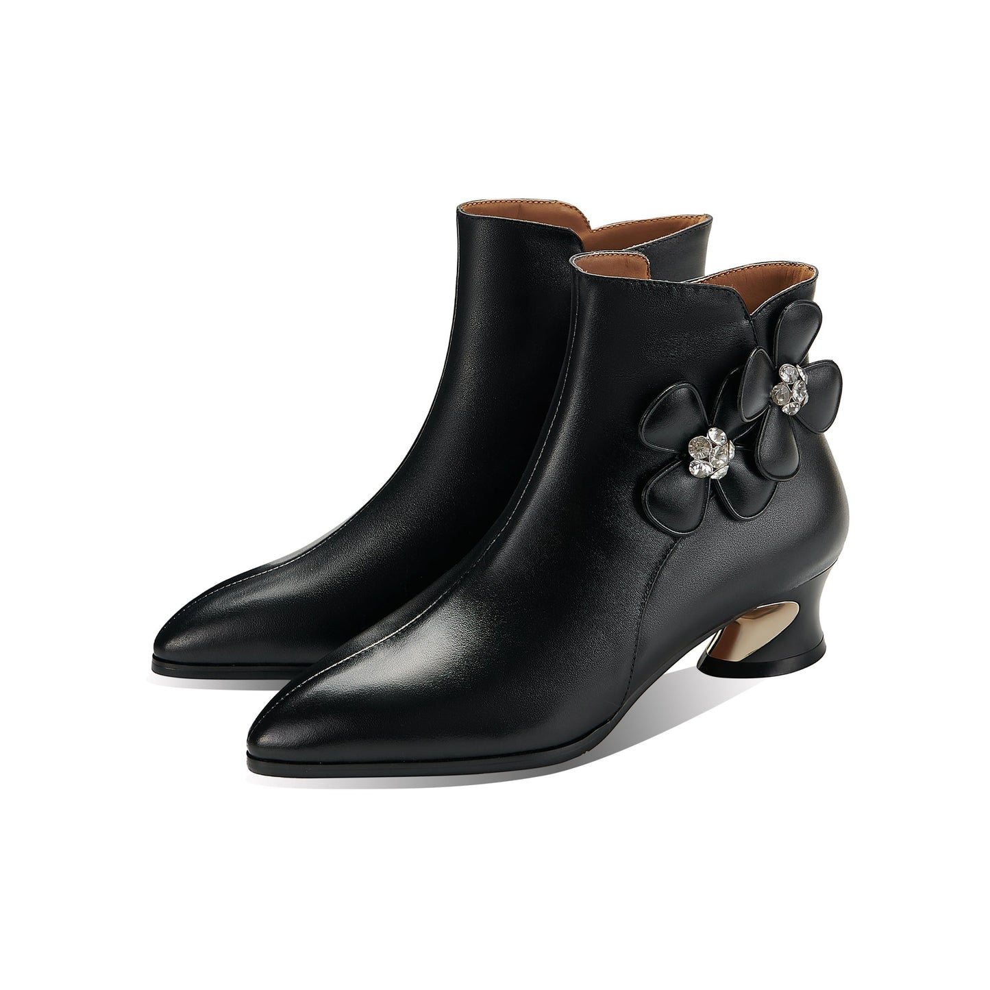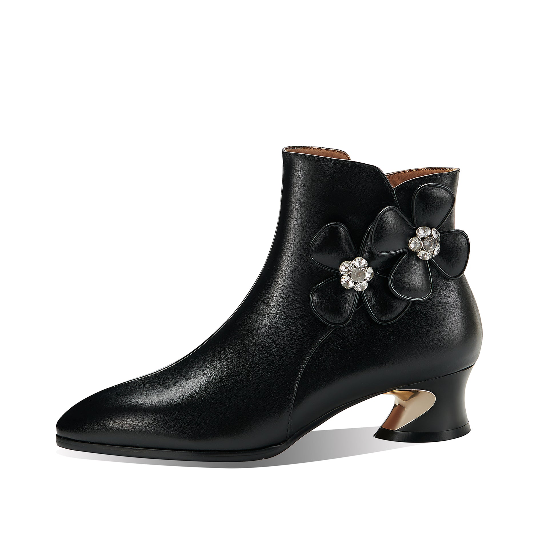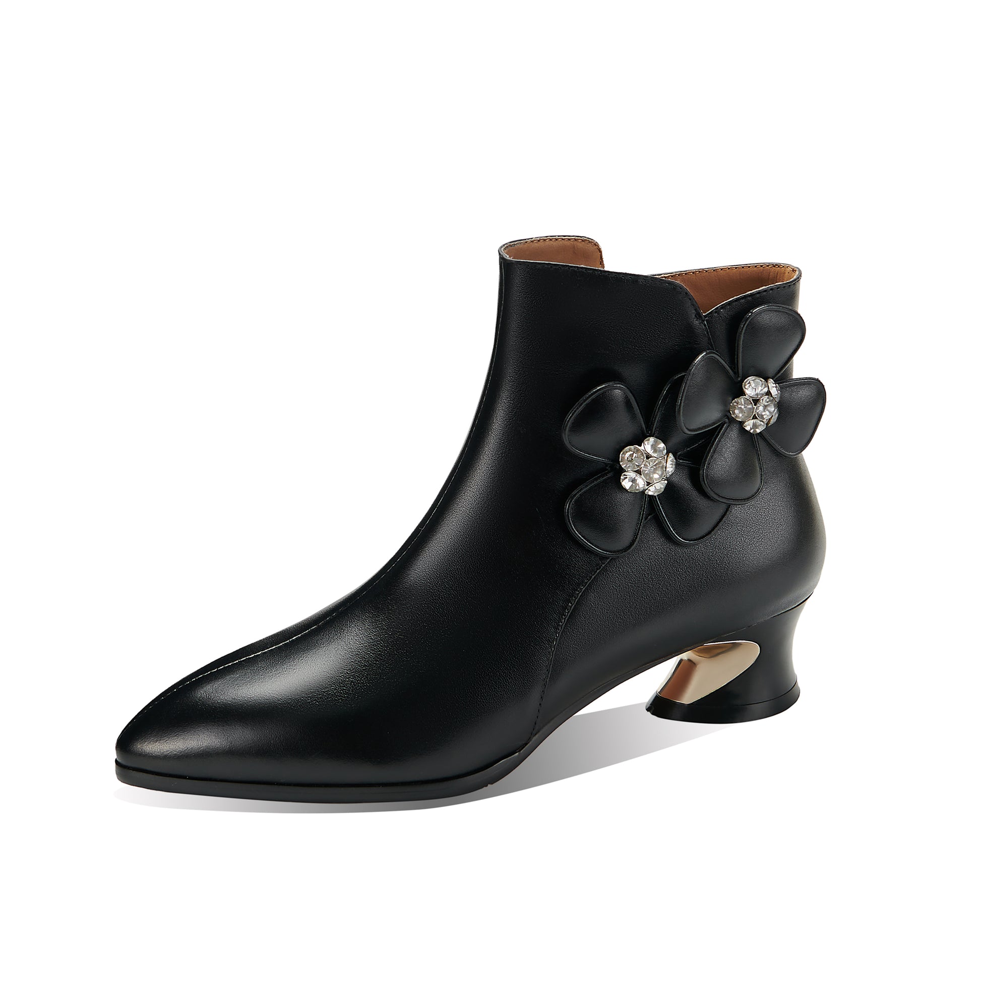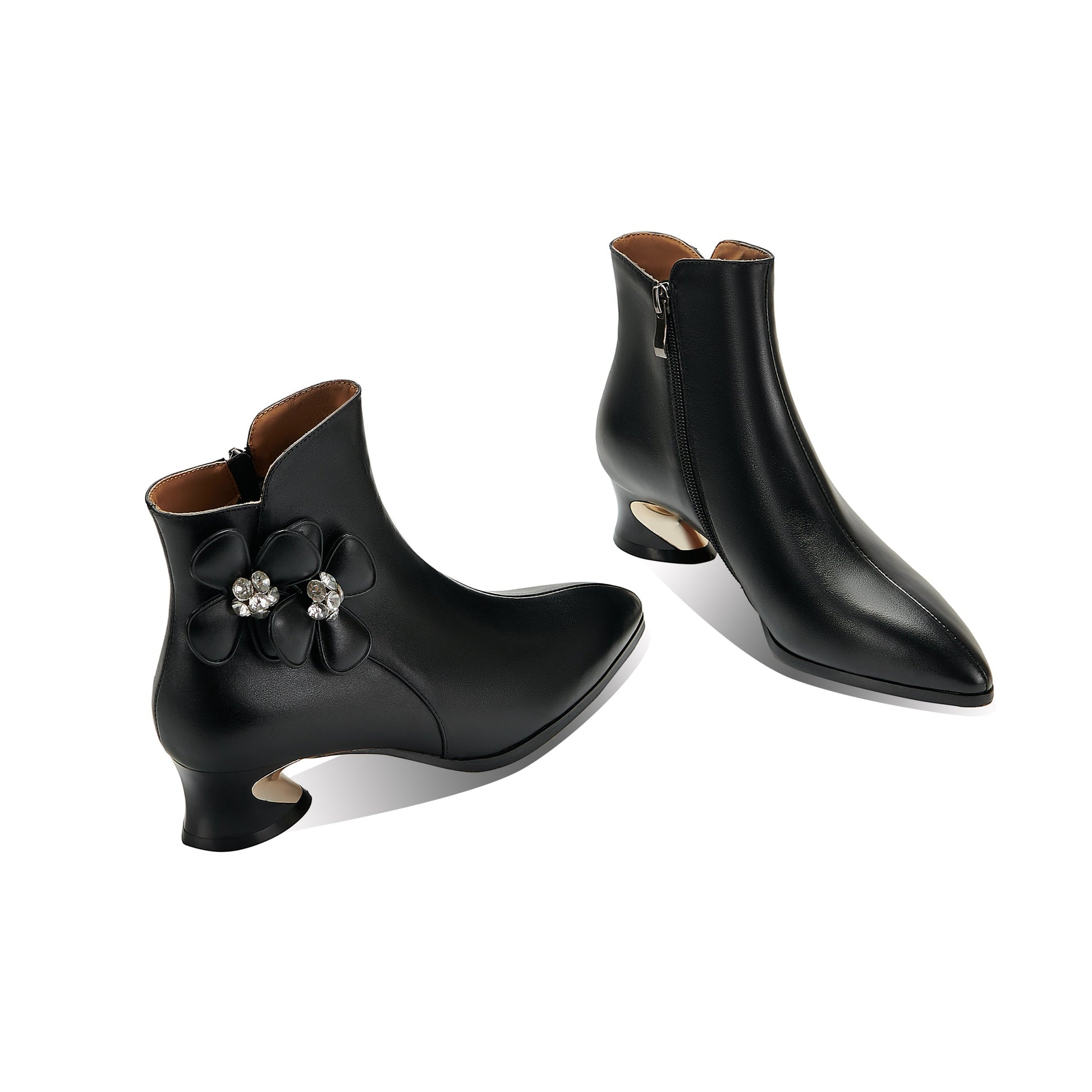 Stiefeletten werden aus echtem Leder mit spitzer Spitze und Reißverschluss gefertigt, um mit dem Modetrend Schritt zu halten.