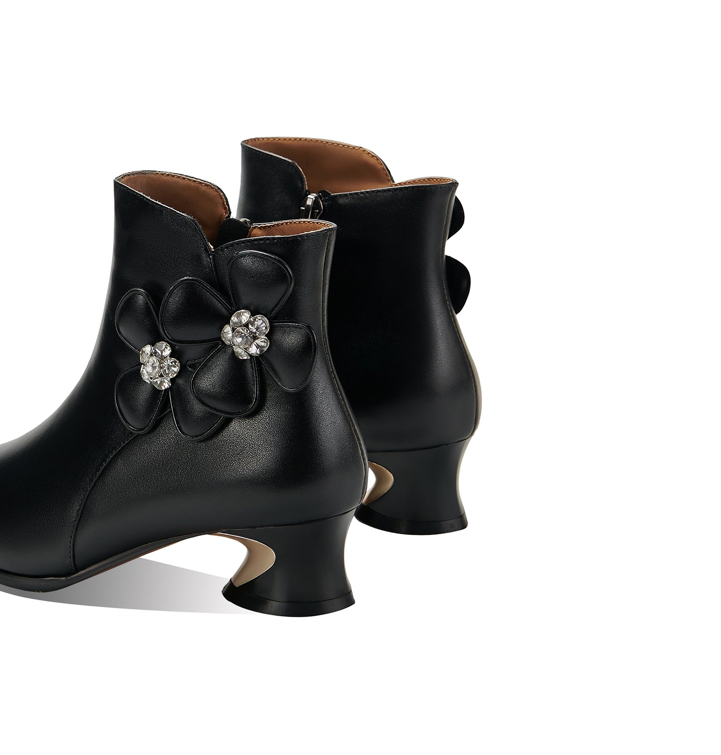 TinaCus Damen-Stiefeletten aus echtem Leder, handgefertigt, mit Blumenmuster und Reißverschluss
