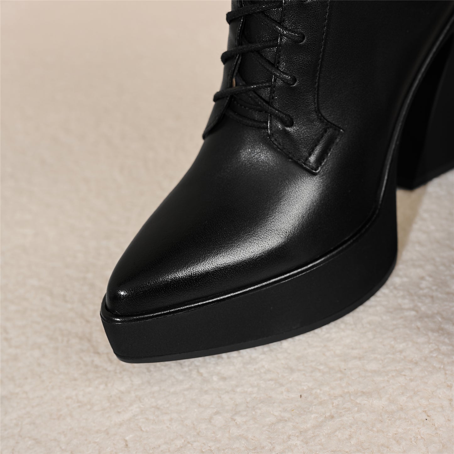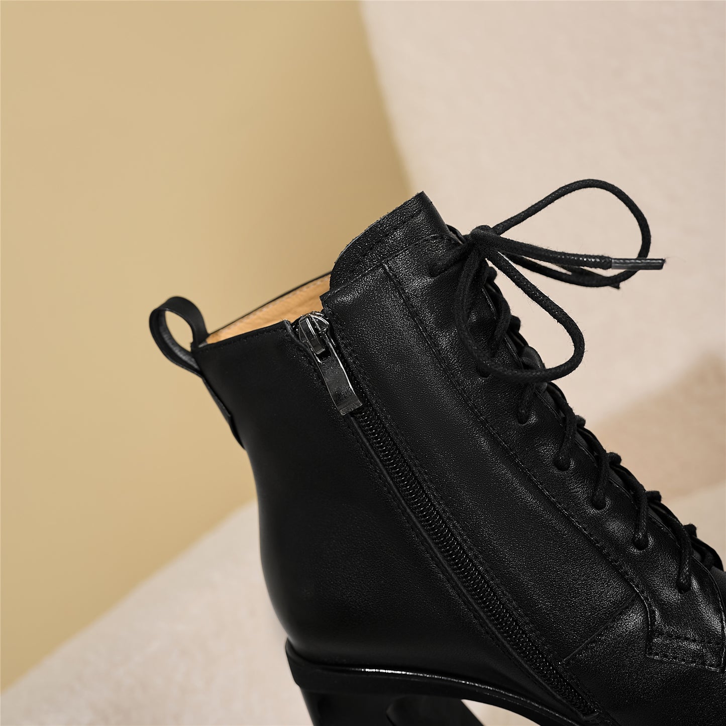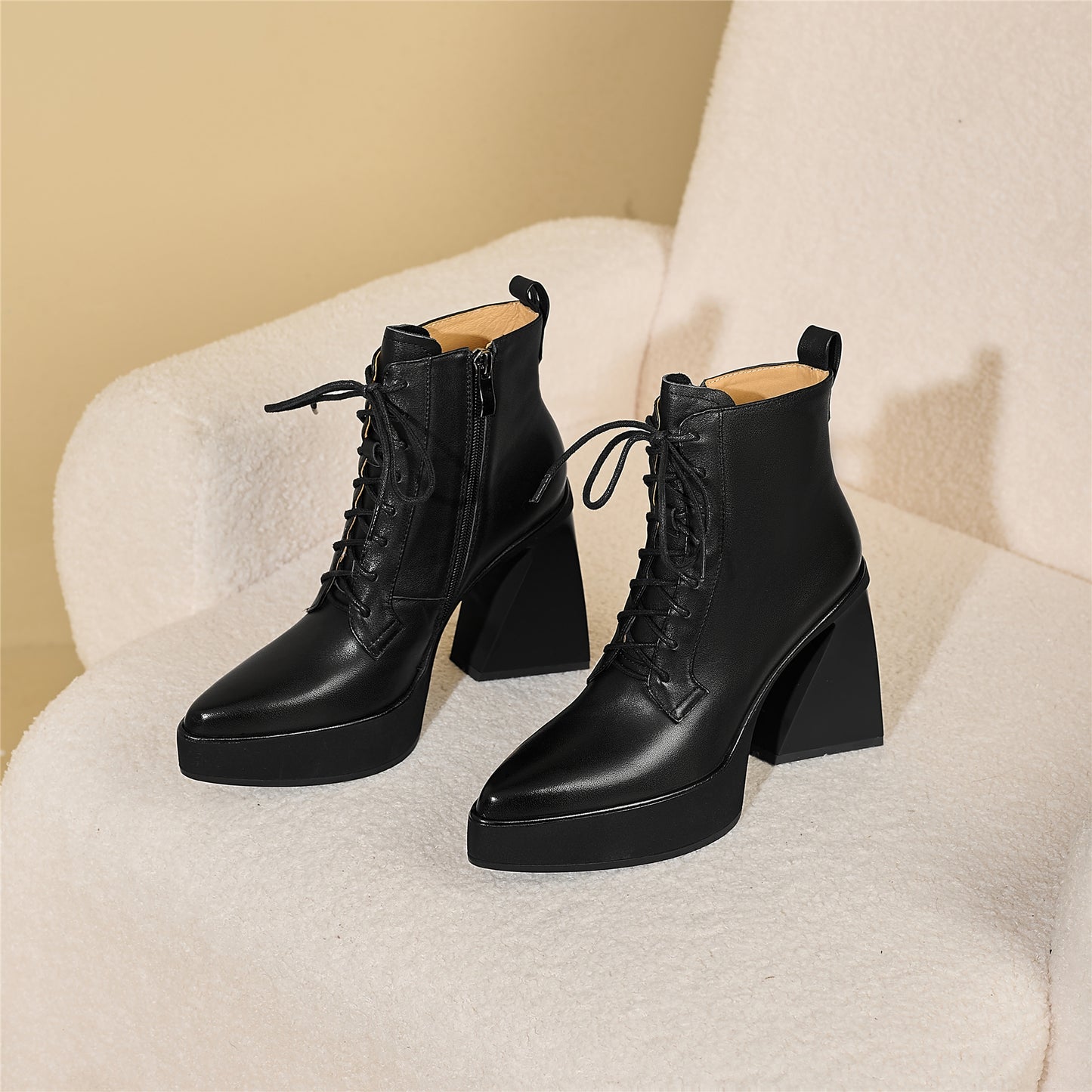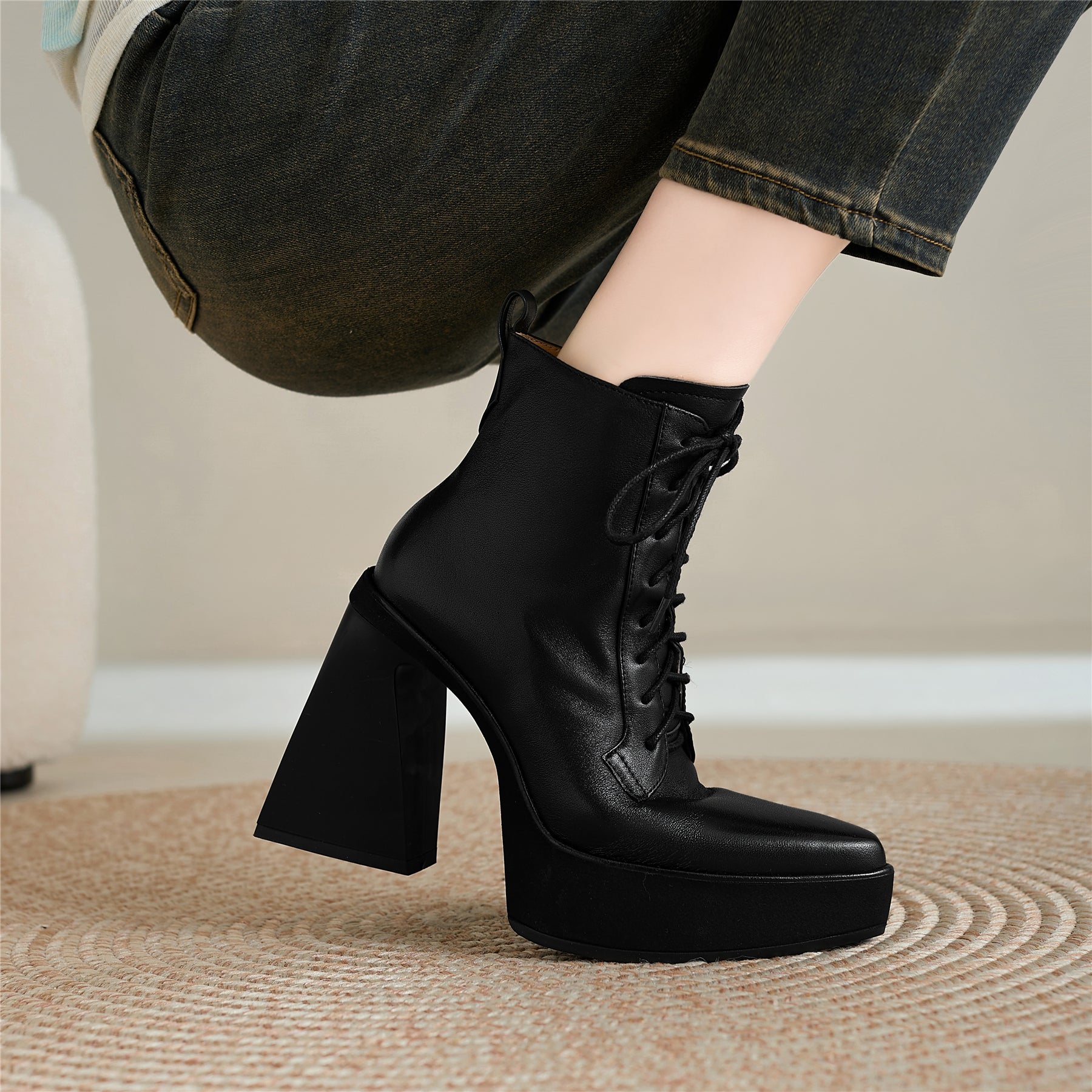 Um mit dem Modetrend Schritt zu halten, werden Stiefel aus echtem Leder mit Blockabsatz und Reißverschluss gefertigt.