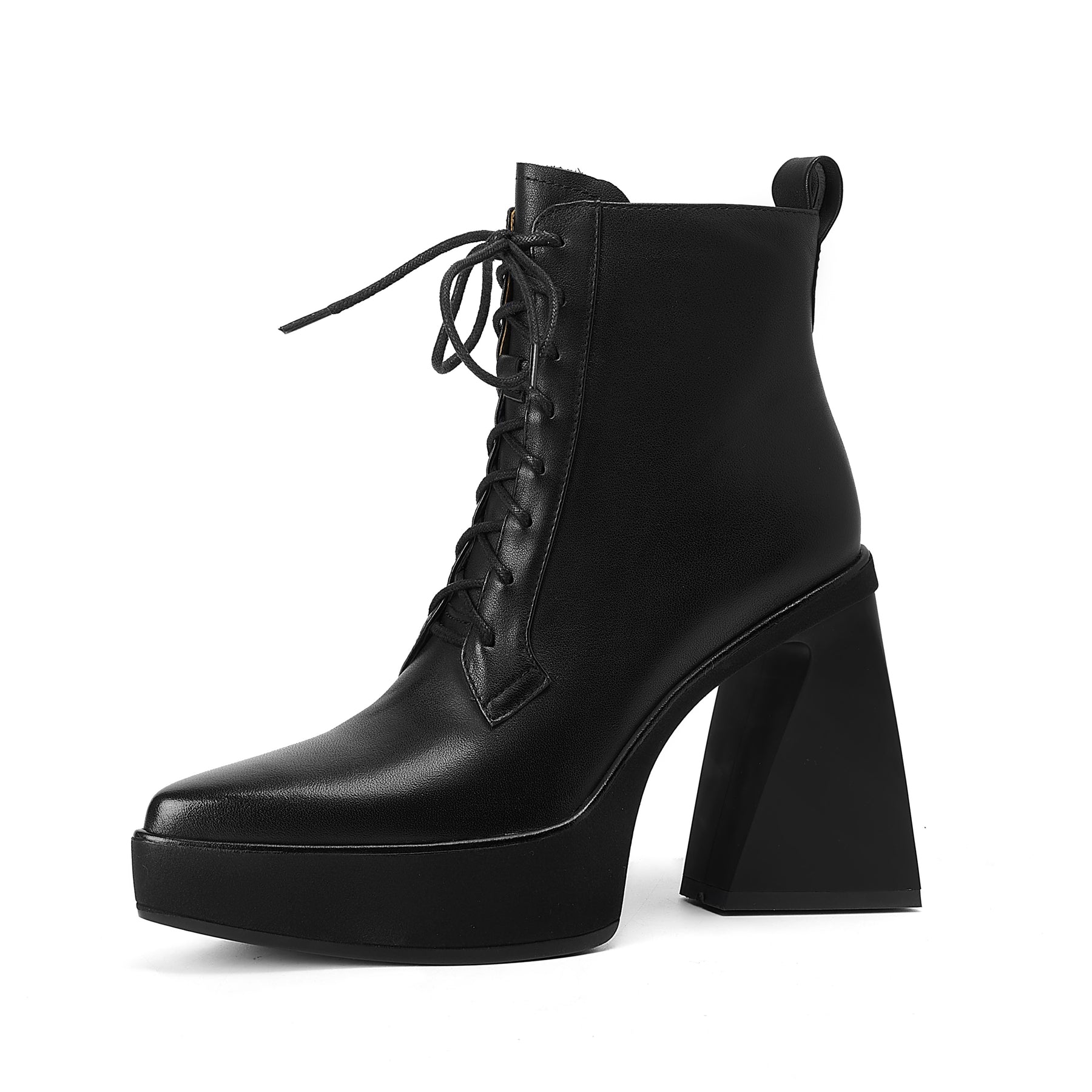 TinaCus Damen-Stiefeletten aus echtem Leder, handgefertigt, mit Reißverschlussband, hoher Blockabsatz