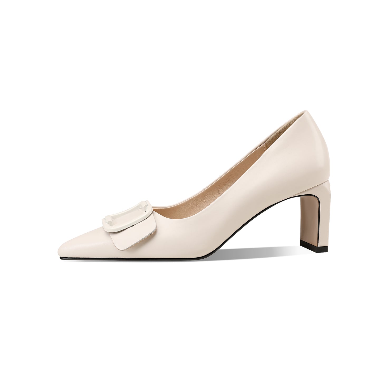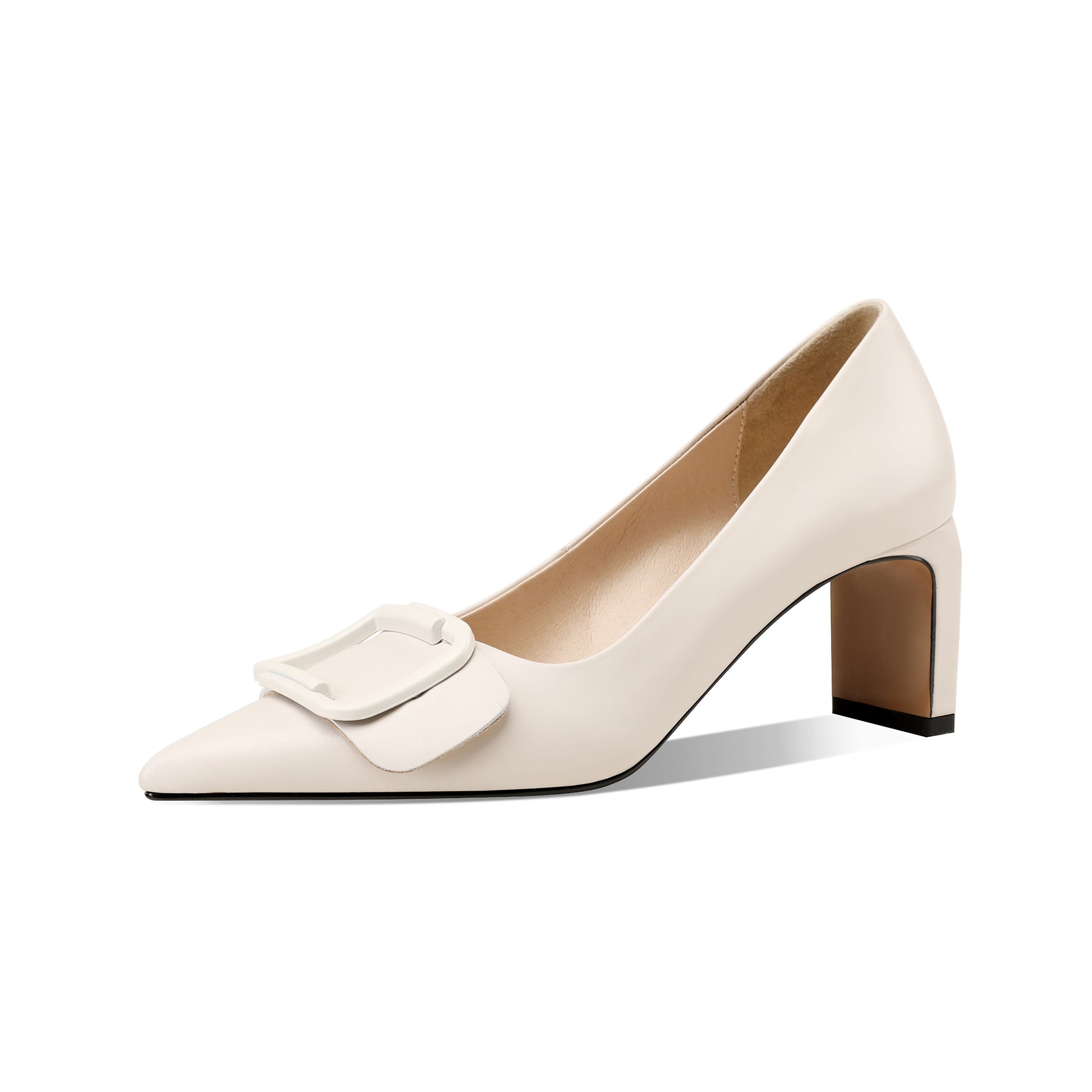 Anmutige Pumps aus echtem Leder mit spitzer Spitze, Schnalle und mittlerem Absatz eignen sich für die Arbeit, Verabredungen und den Alltag.