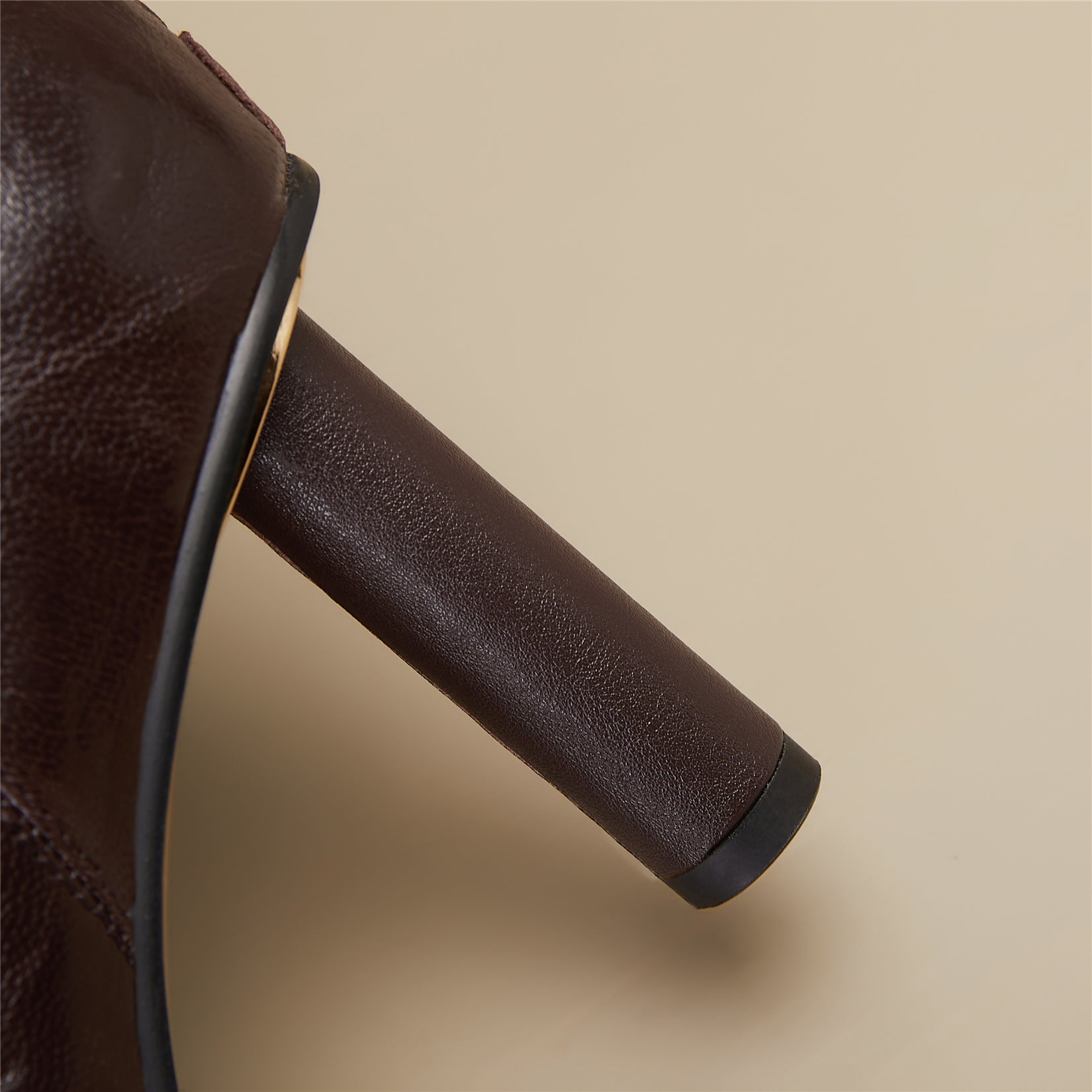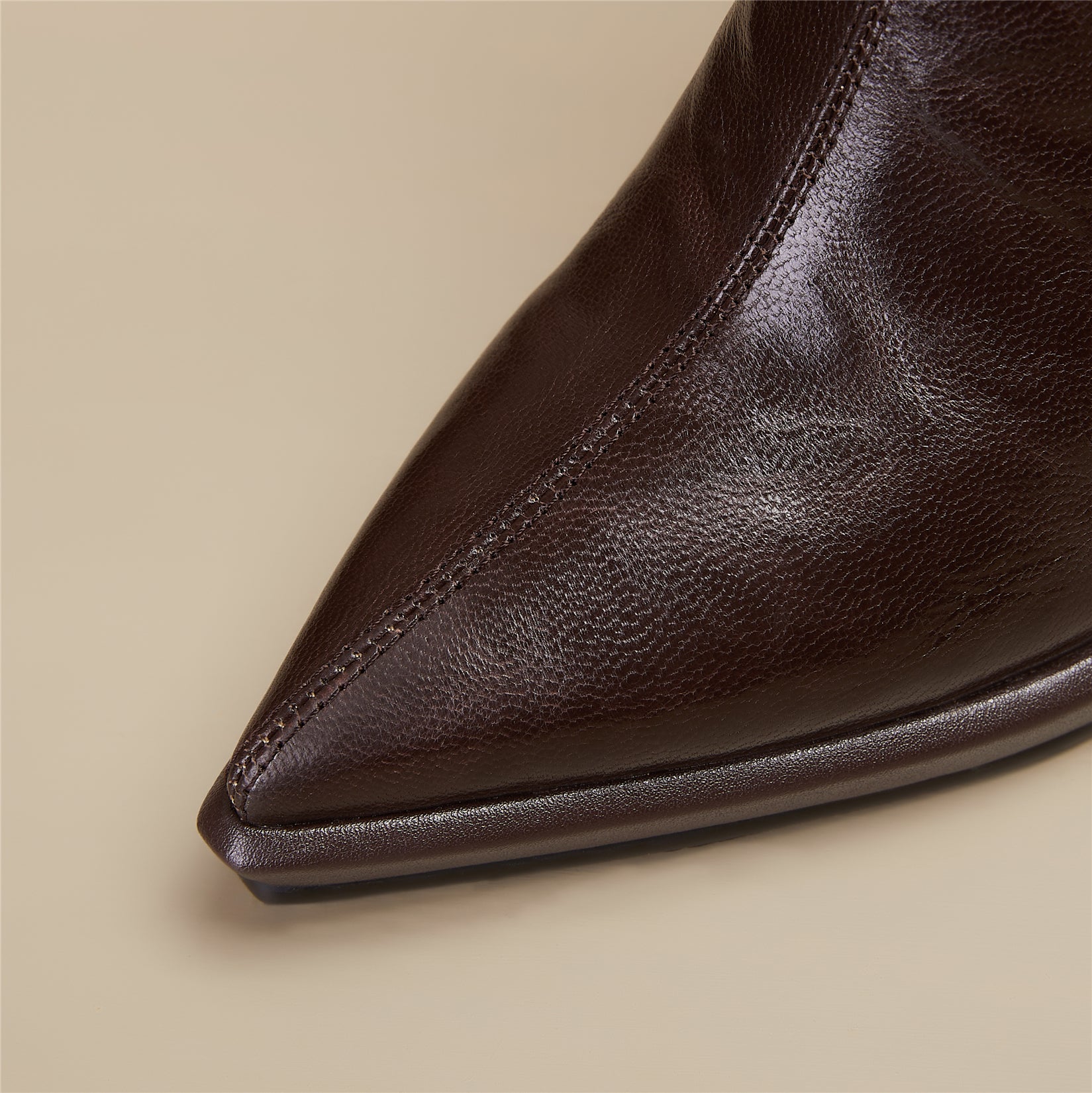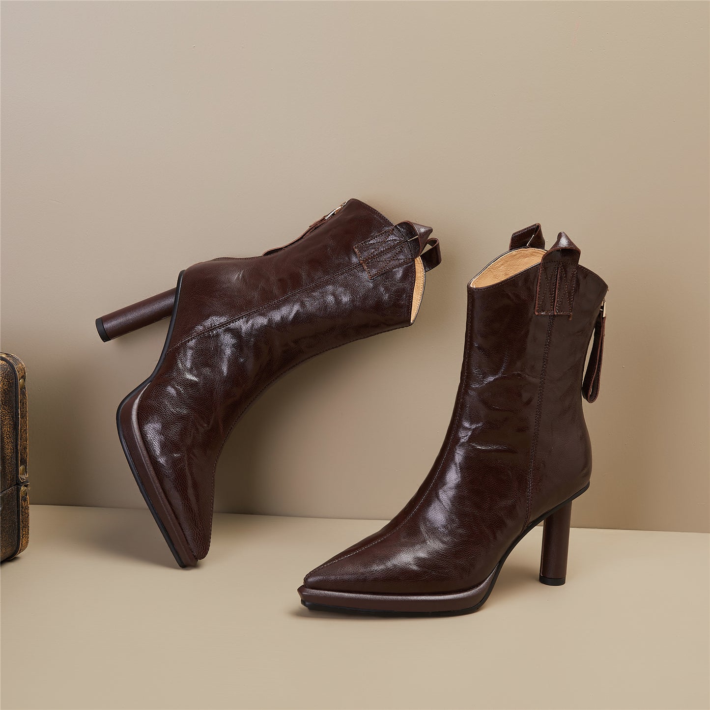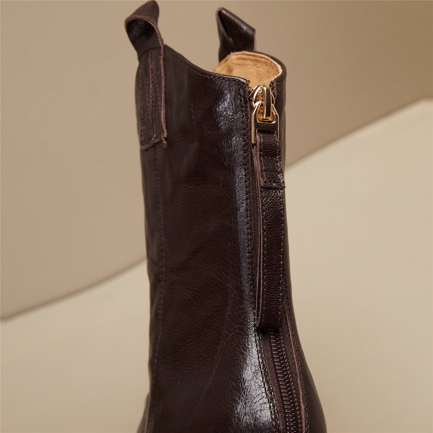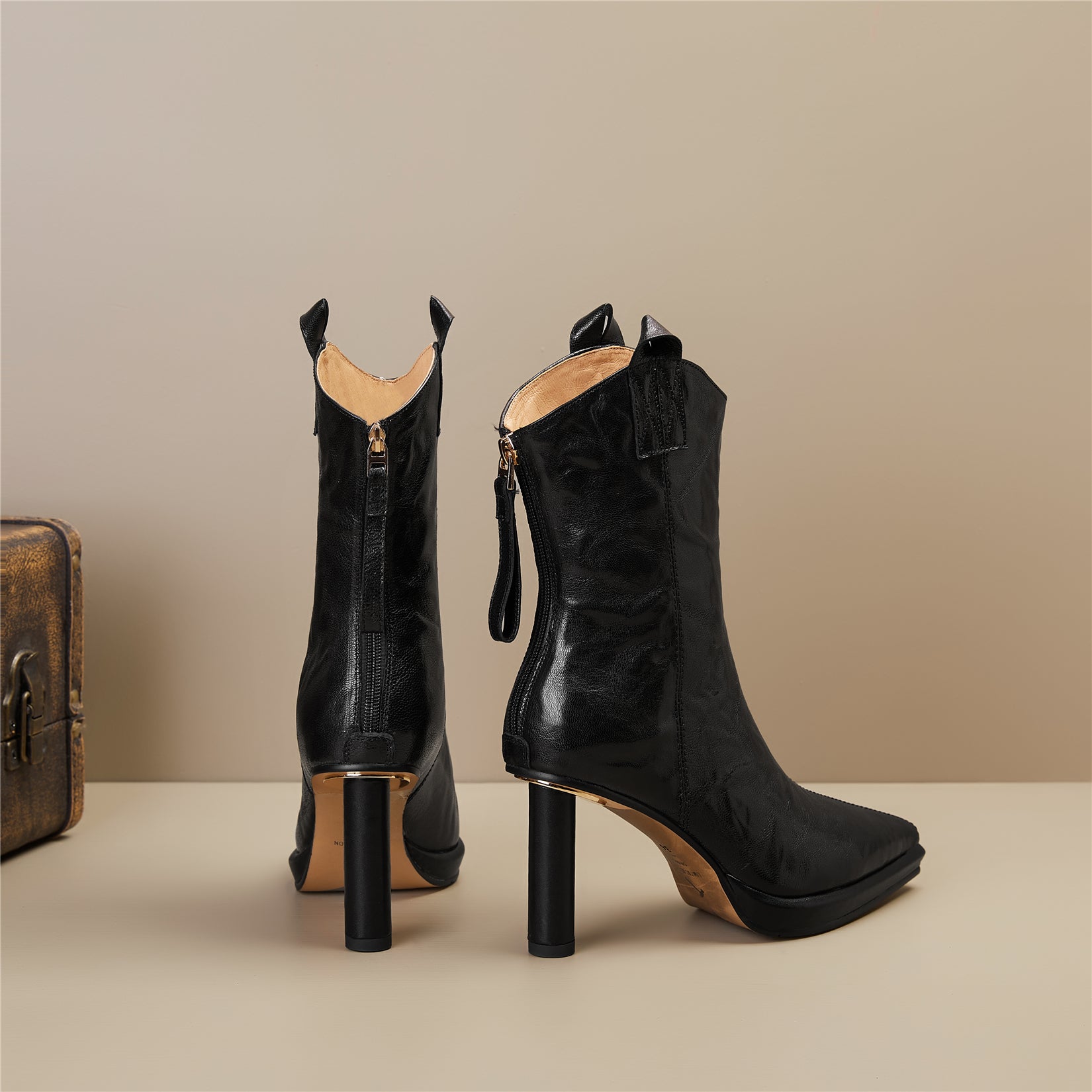 Stiefel im Westernstil werden aus echtem Leder, mit hohen Absätzen und Reißverschluss gefertigt, um mit dem Modetrend Schritt zu halten.