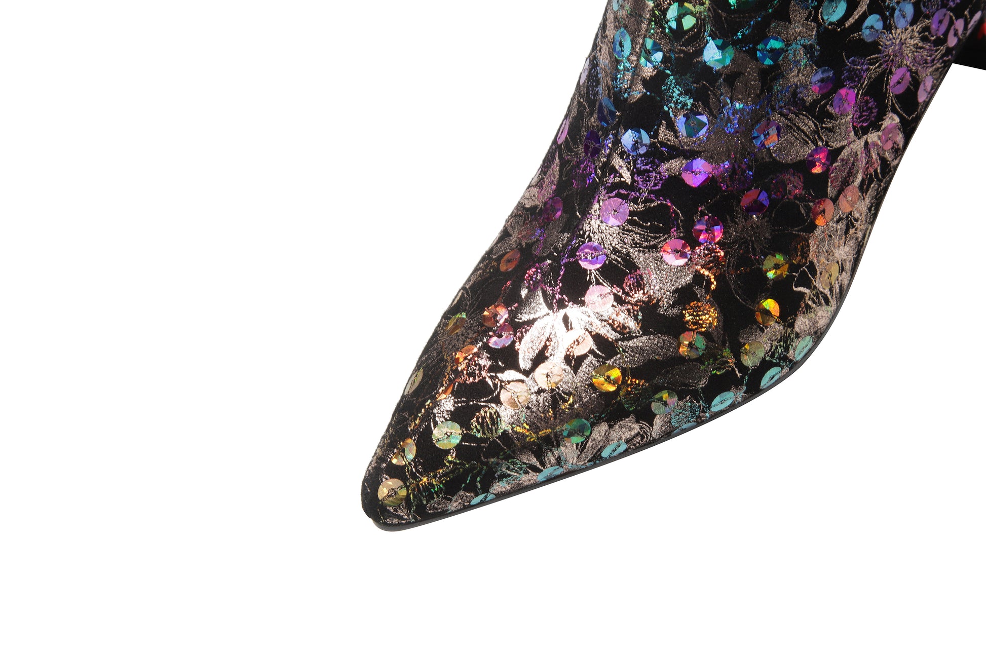 Stiefeletten werden aus Leder, mit bunten Blumen, Pailletten und Reißverschlüssen gefertigt, um mit dem Modetrend Schritt zu halten.