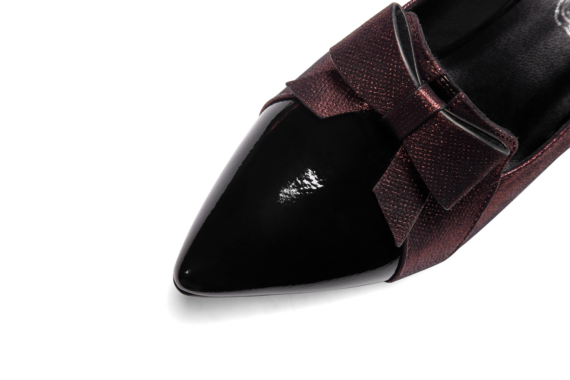 TinaCus Damen-Loafer-Pumps aus handgefertigtem Leder mit glänzender Spitze, mittlerem Absatz, Schlupfschuhsohle und süßer Fliege