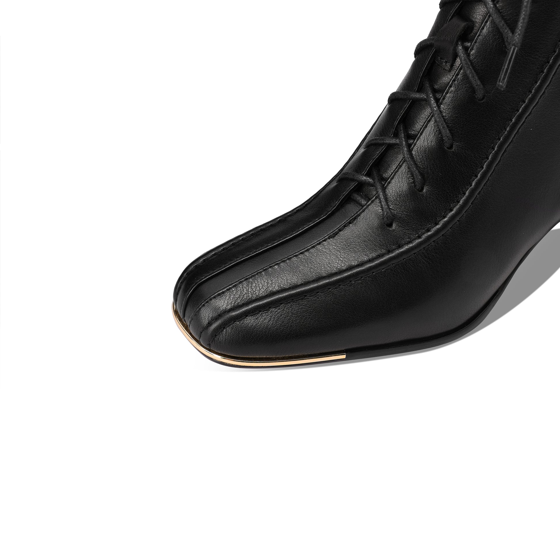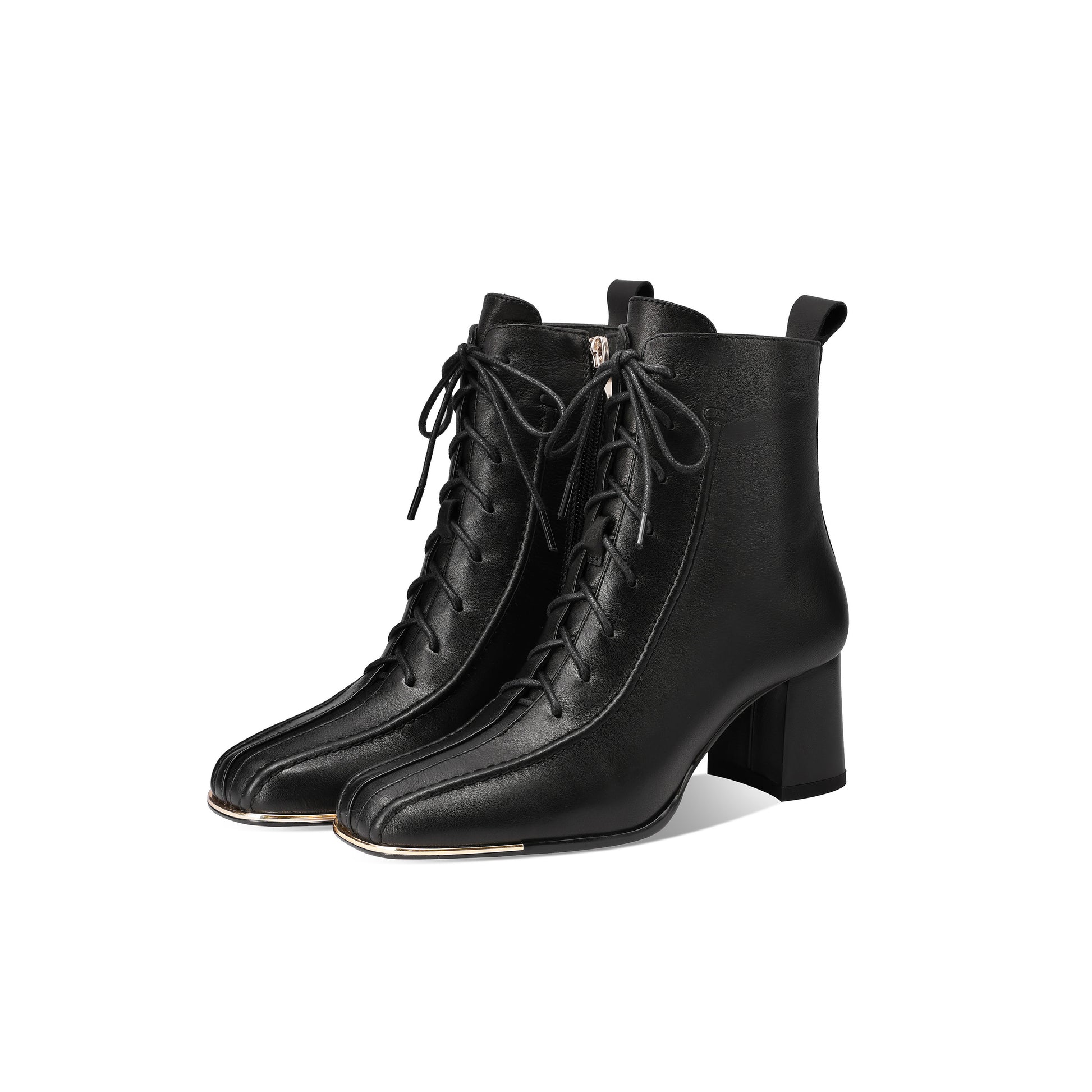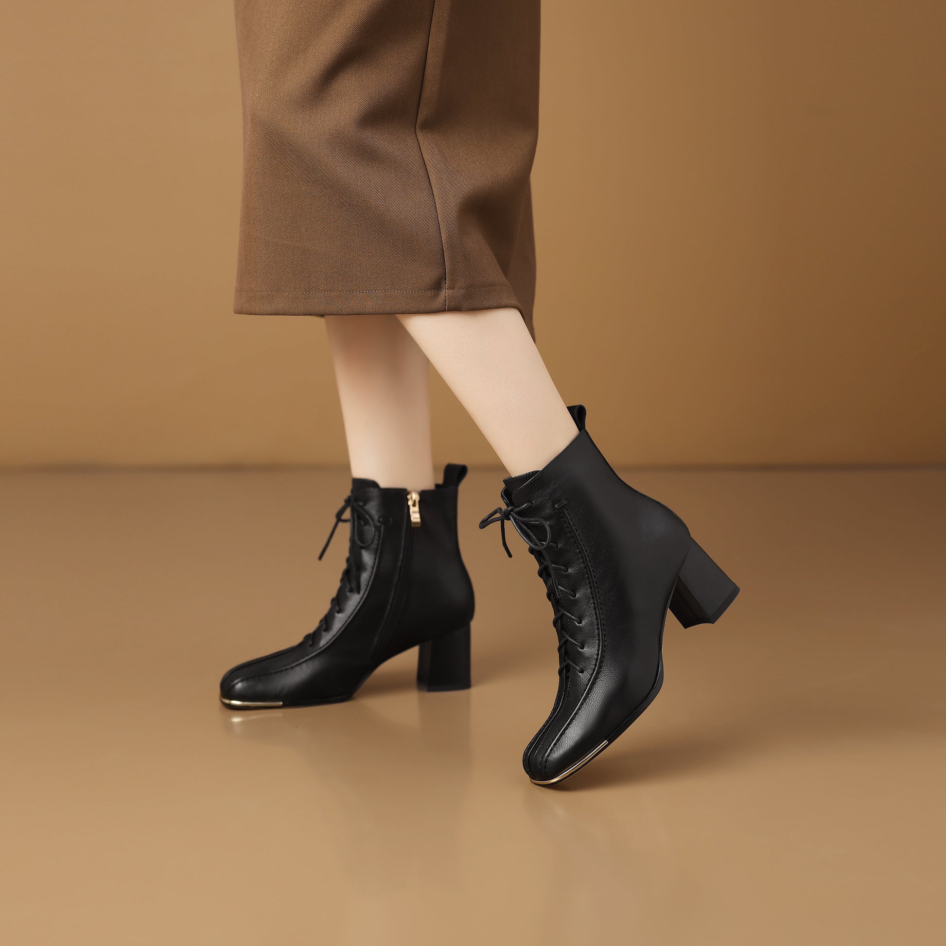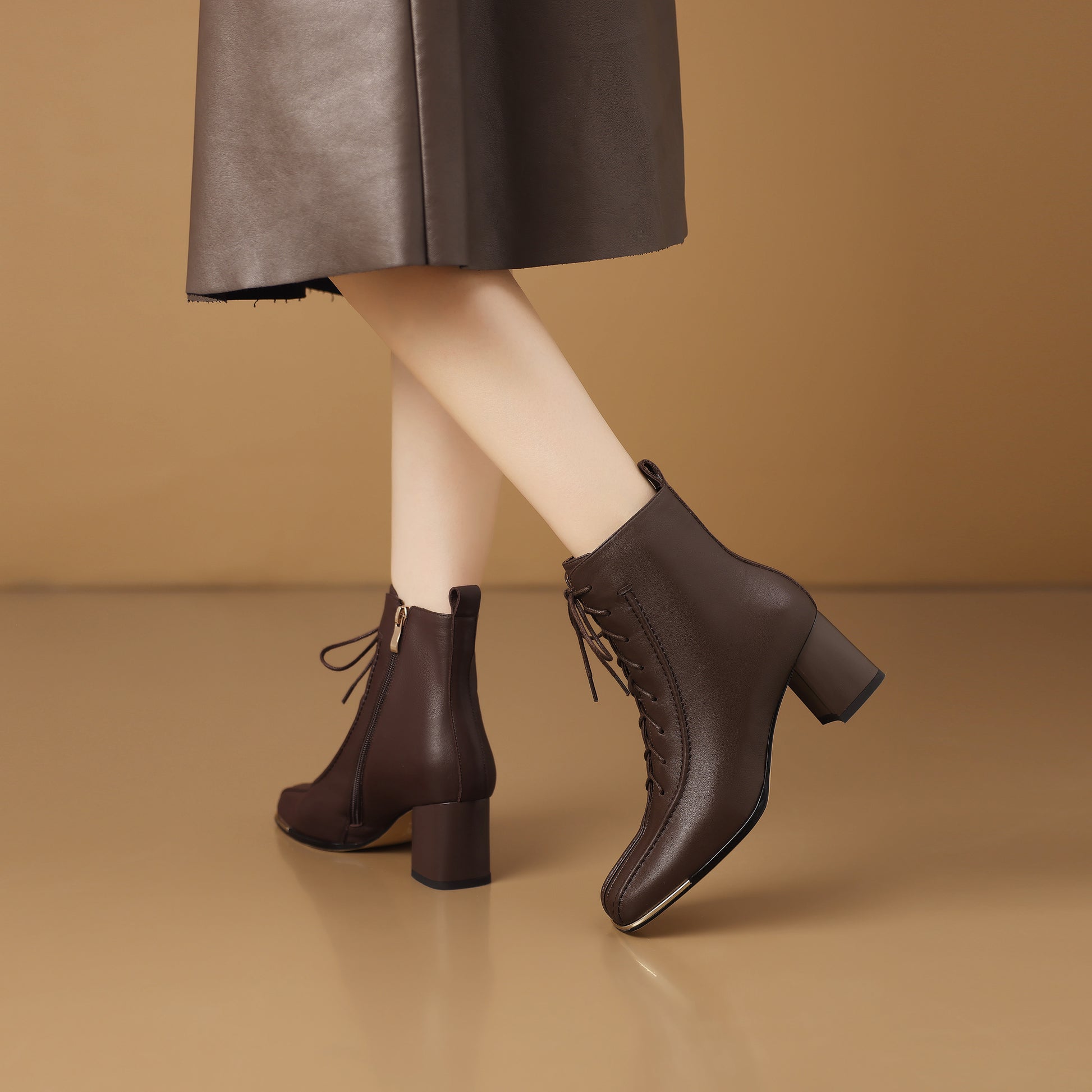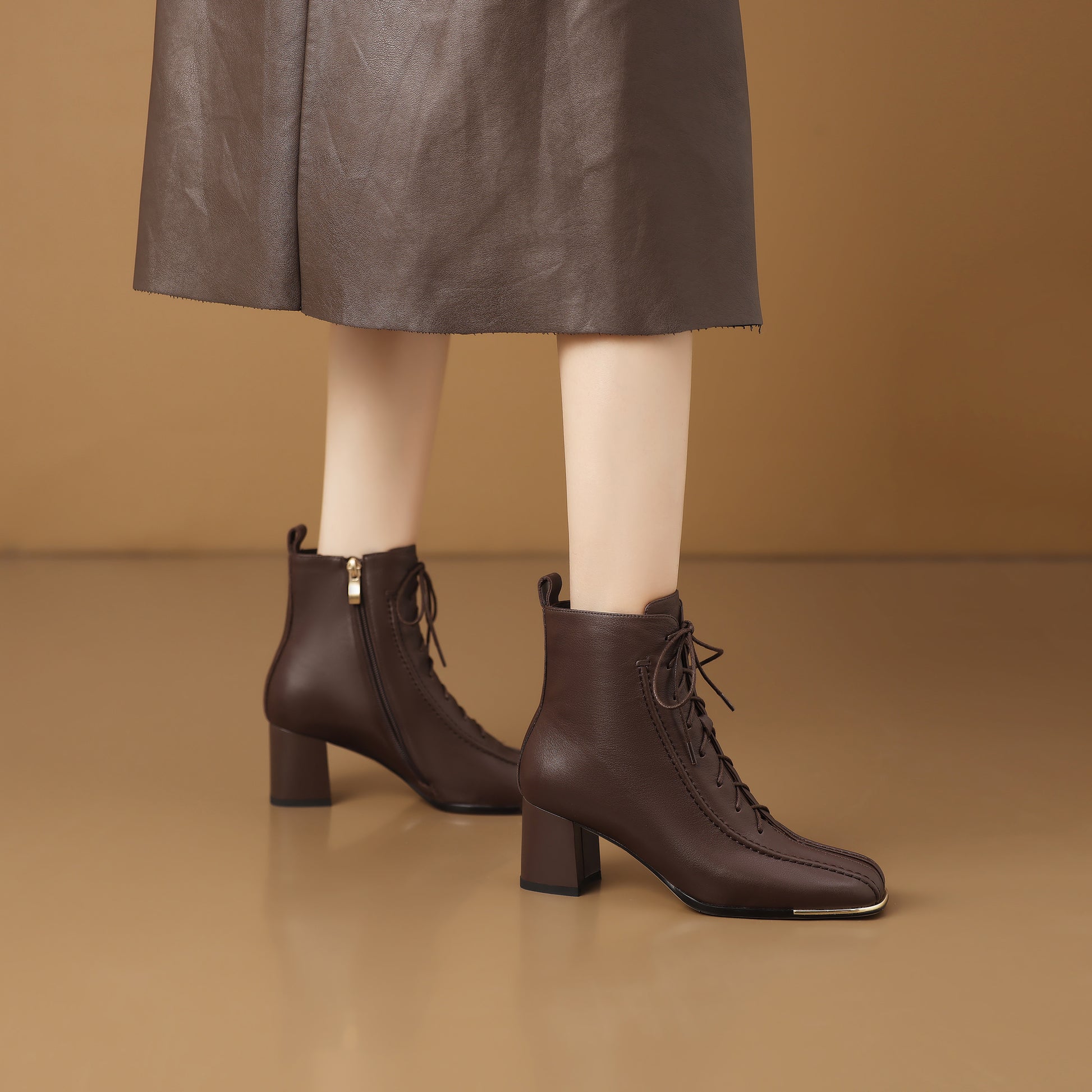 These women's ankle boots feature a square toe and a low block heel, crafted from soft, breathable genuine leather for all-day comfort.