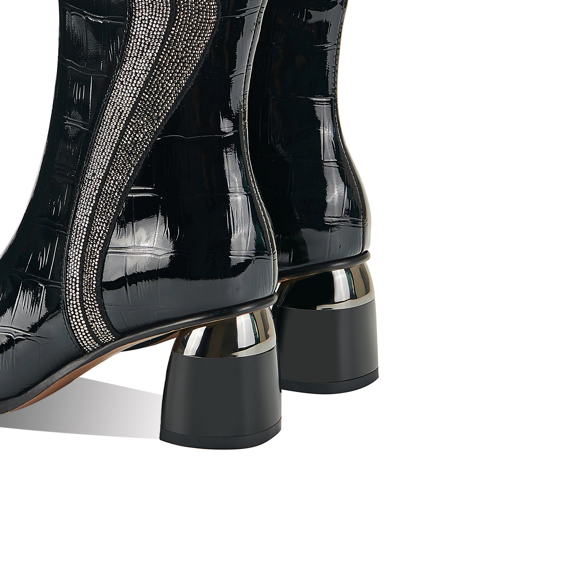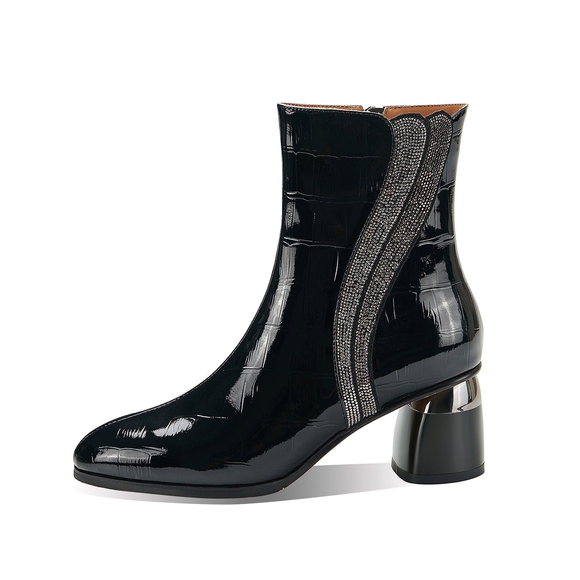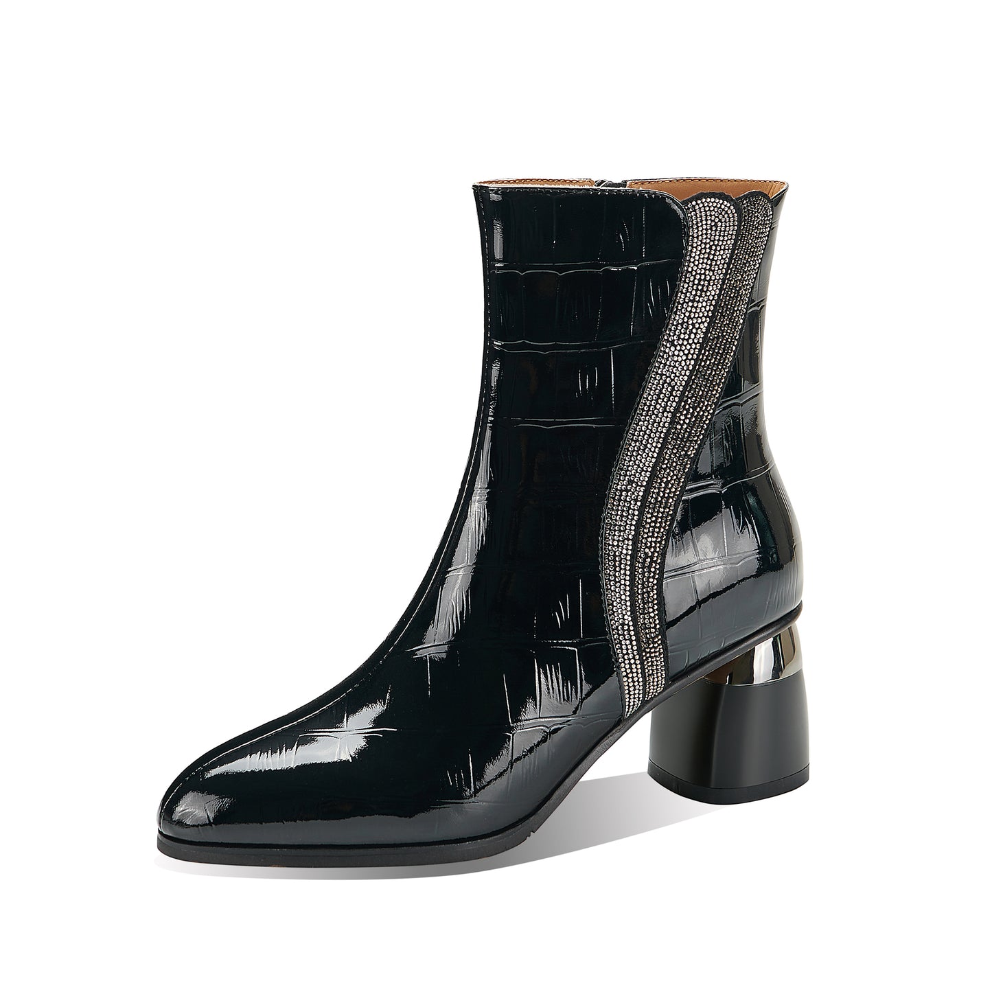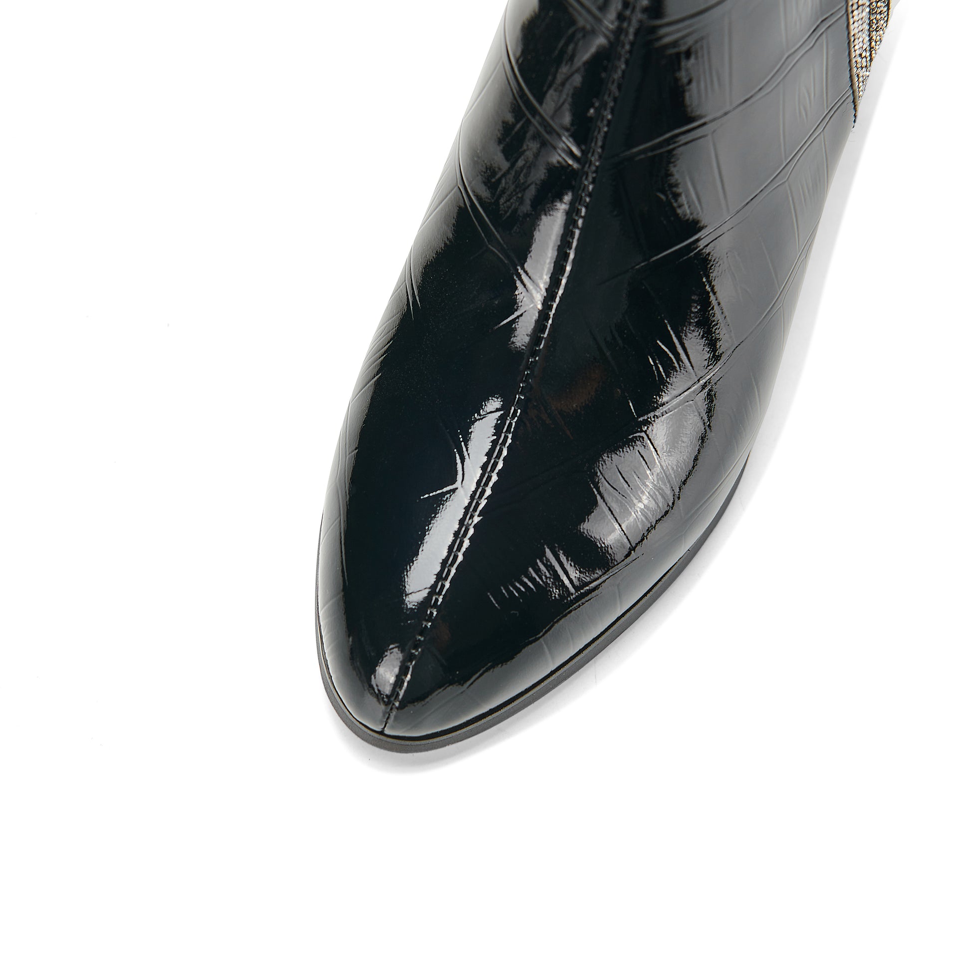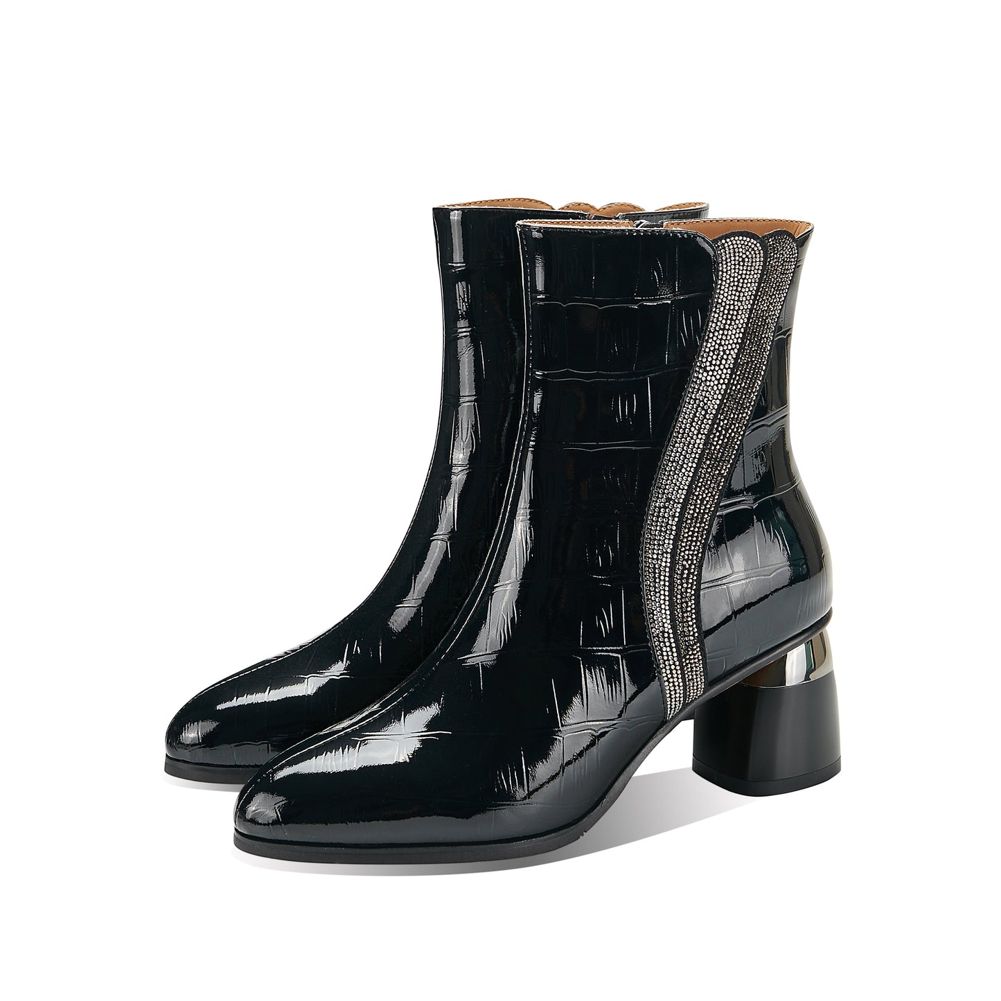 TinaCus Damen-Stiefeletten aus Lackleder mit spitzer Zehenpartie und Reißverschluss, handgefertigt
