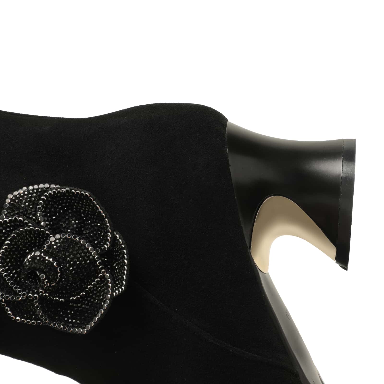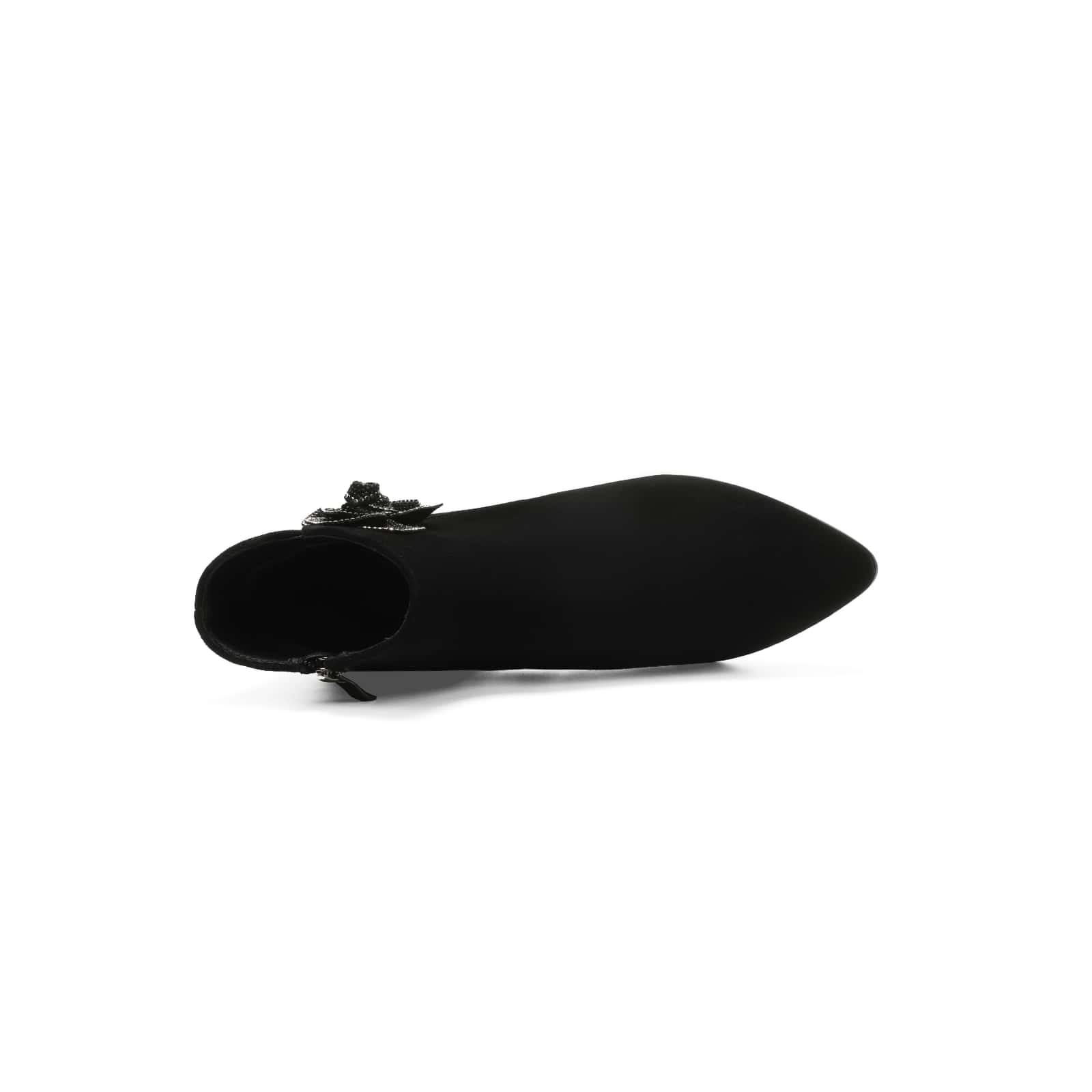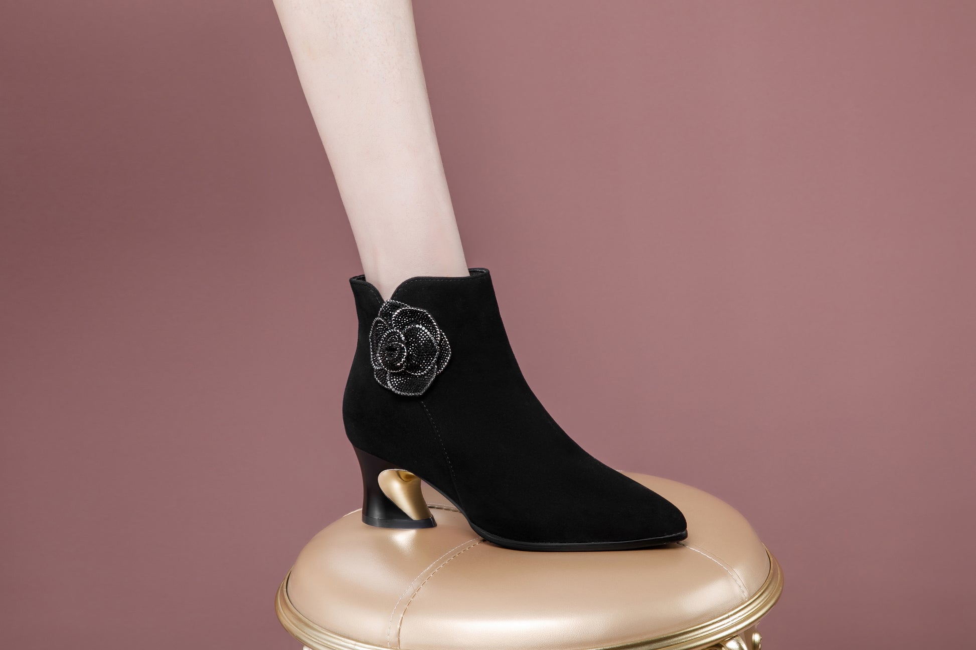 TinaCus Women's Rhinestone Booties Suede Leather Handmade Floral Side Zipper Pointed Toe Chunky Heel