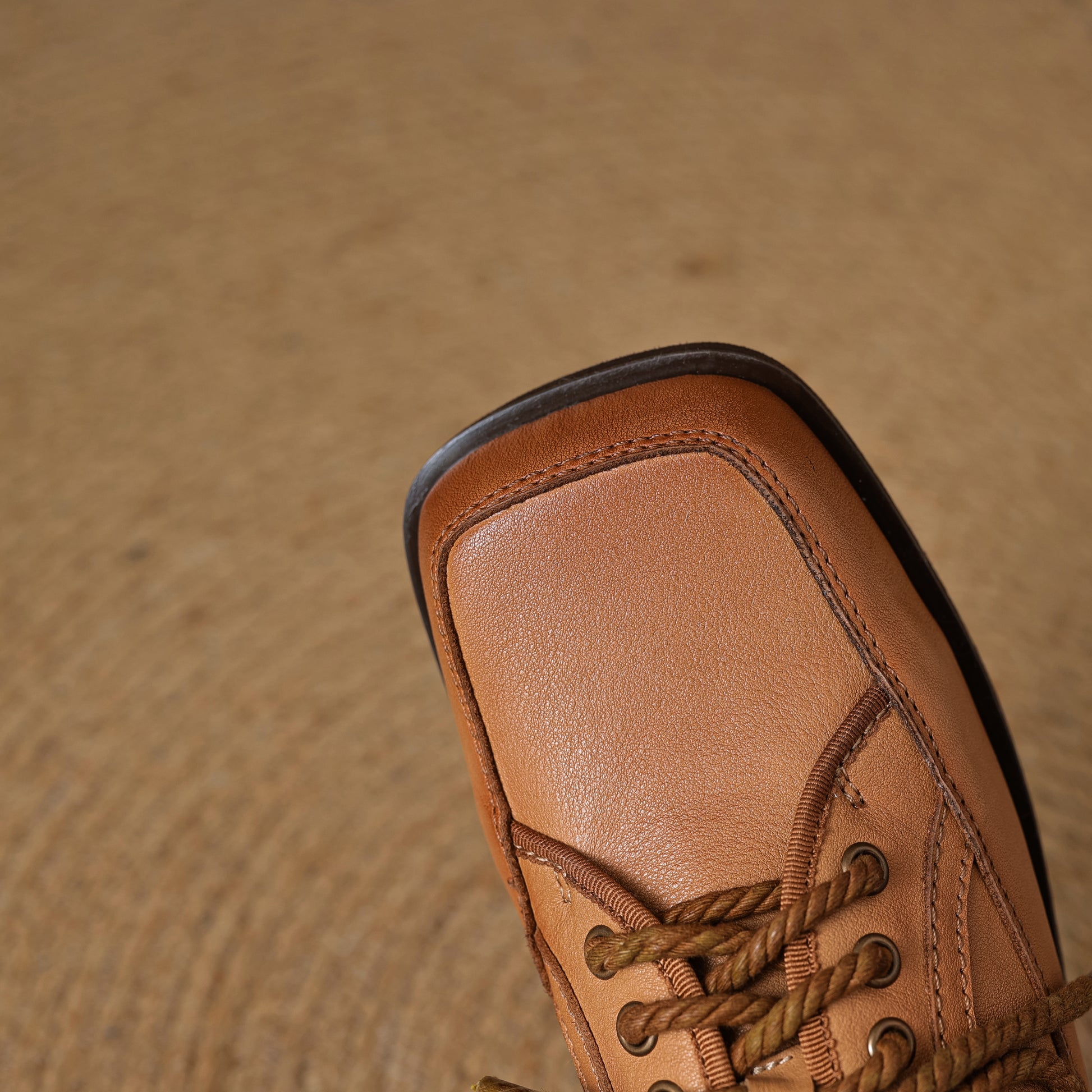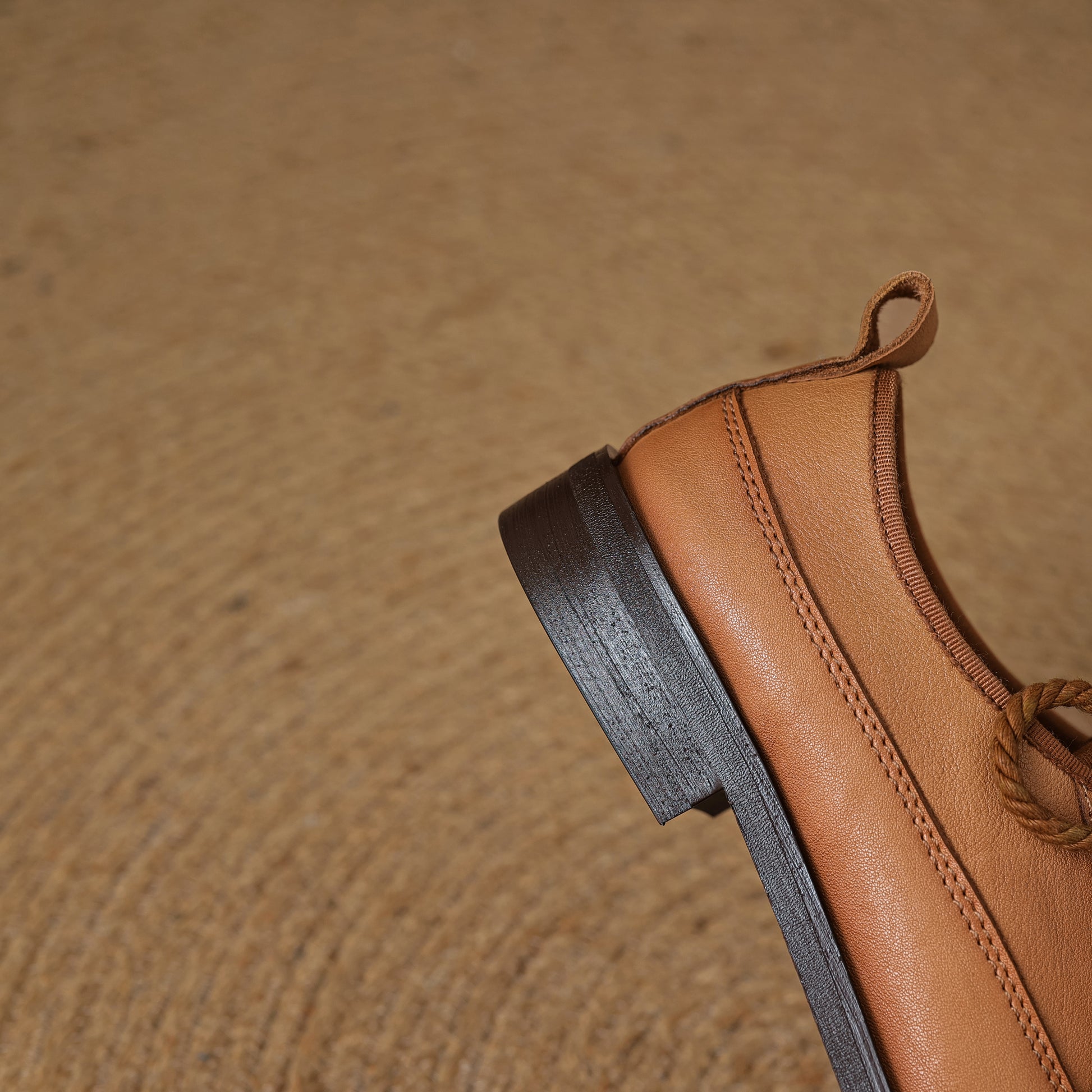 Genuine leather oxfords shoes with square toe, flats and laces can go with kinds of outfits