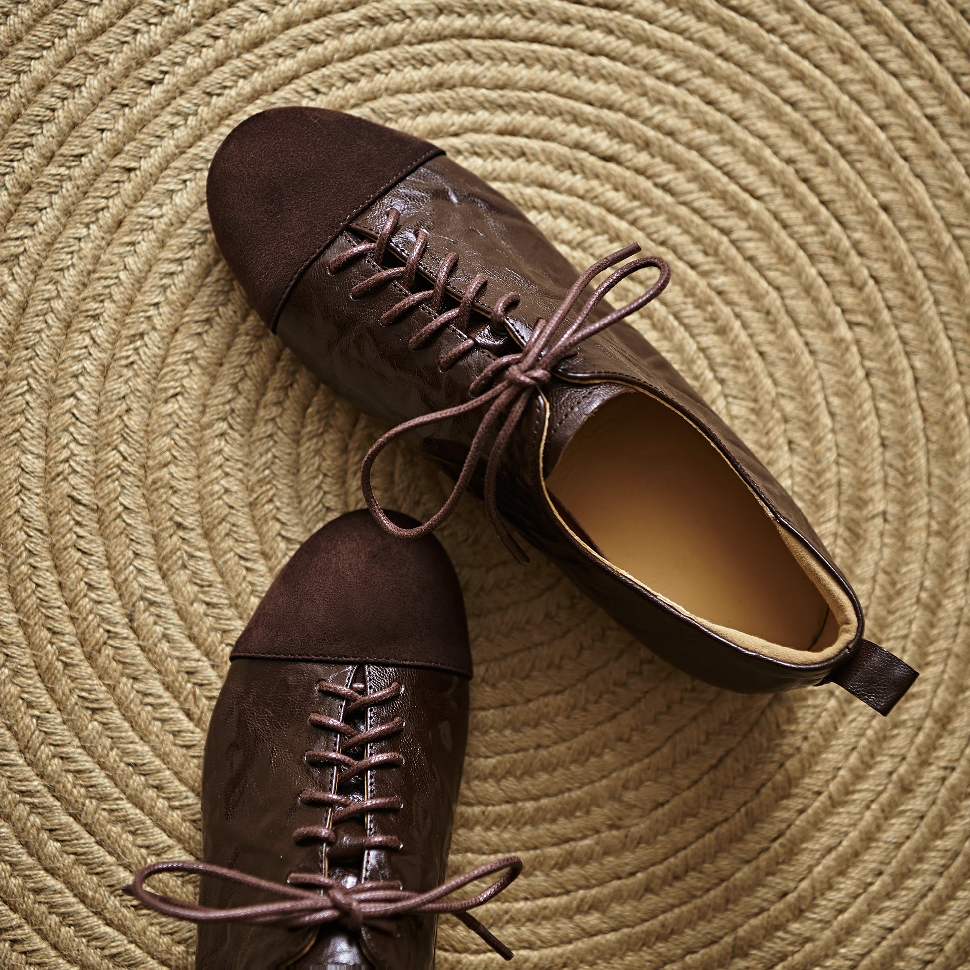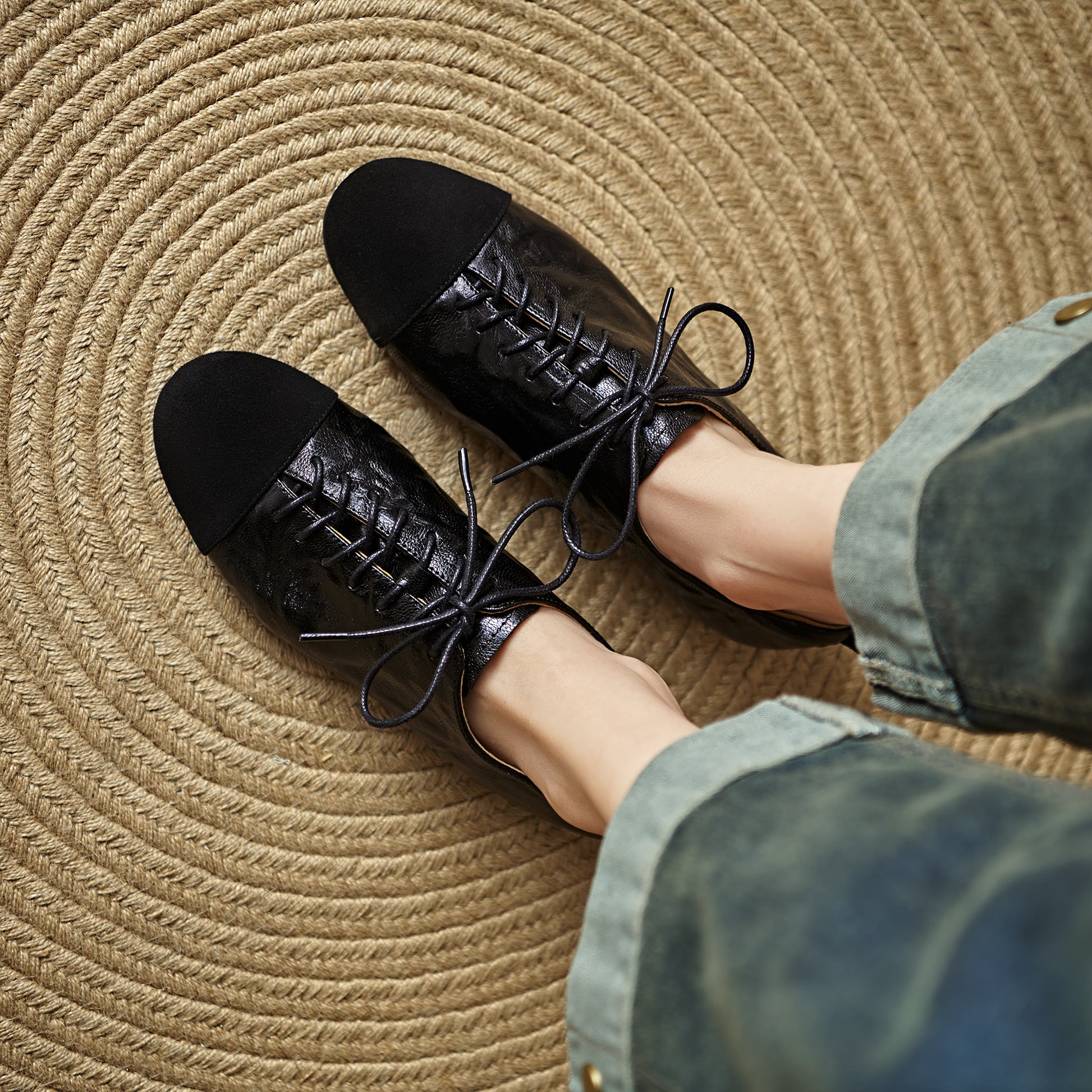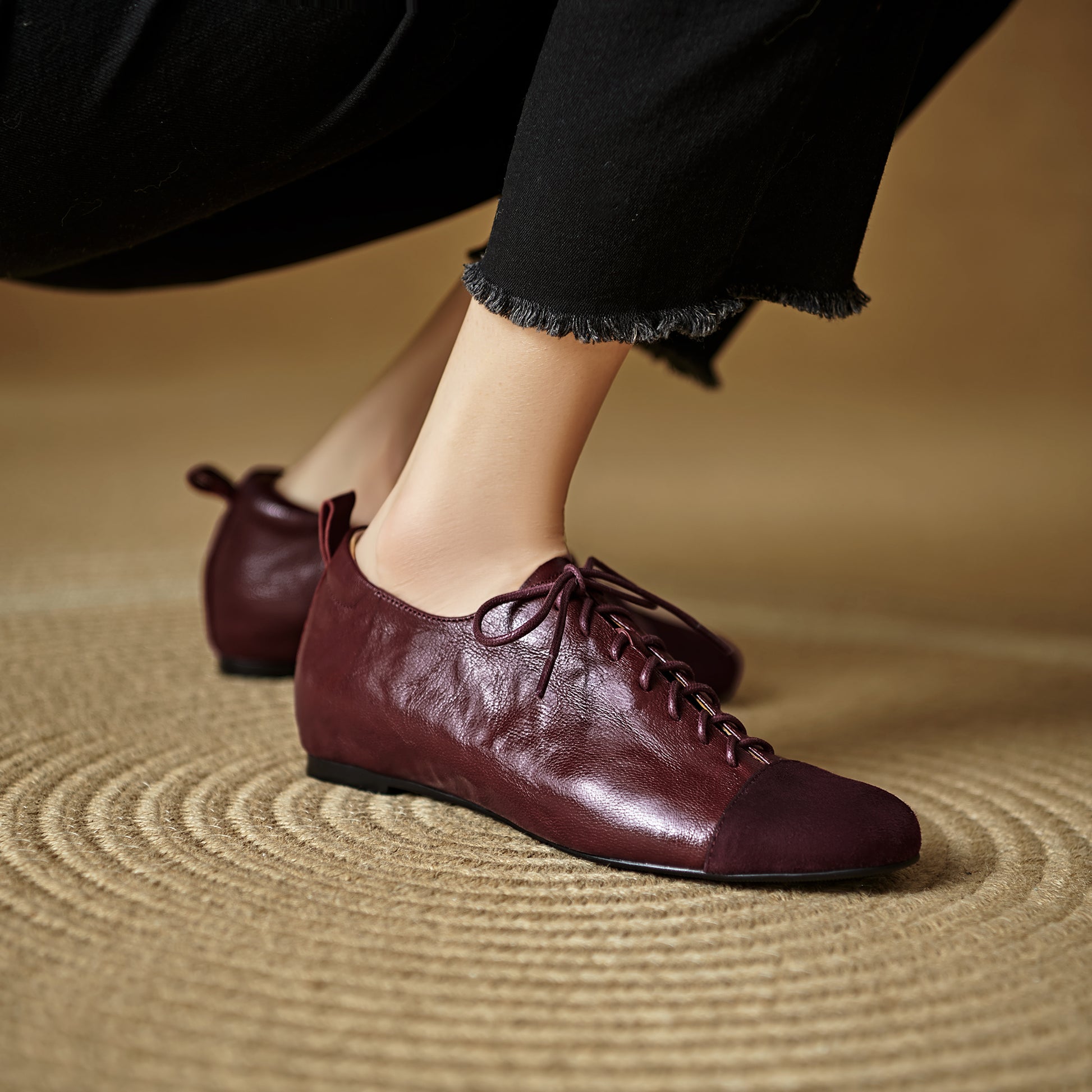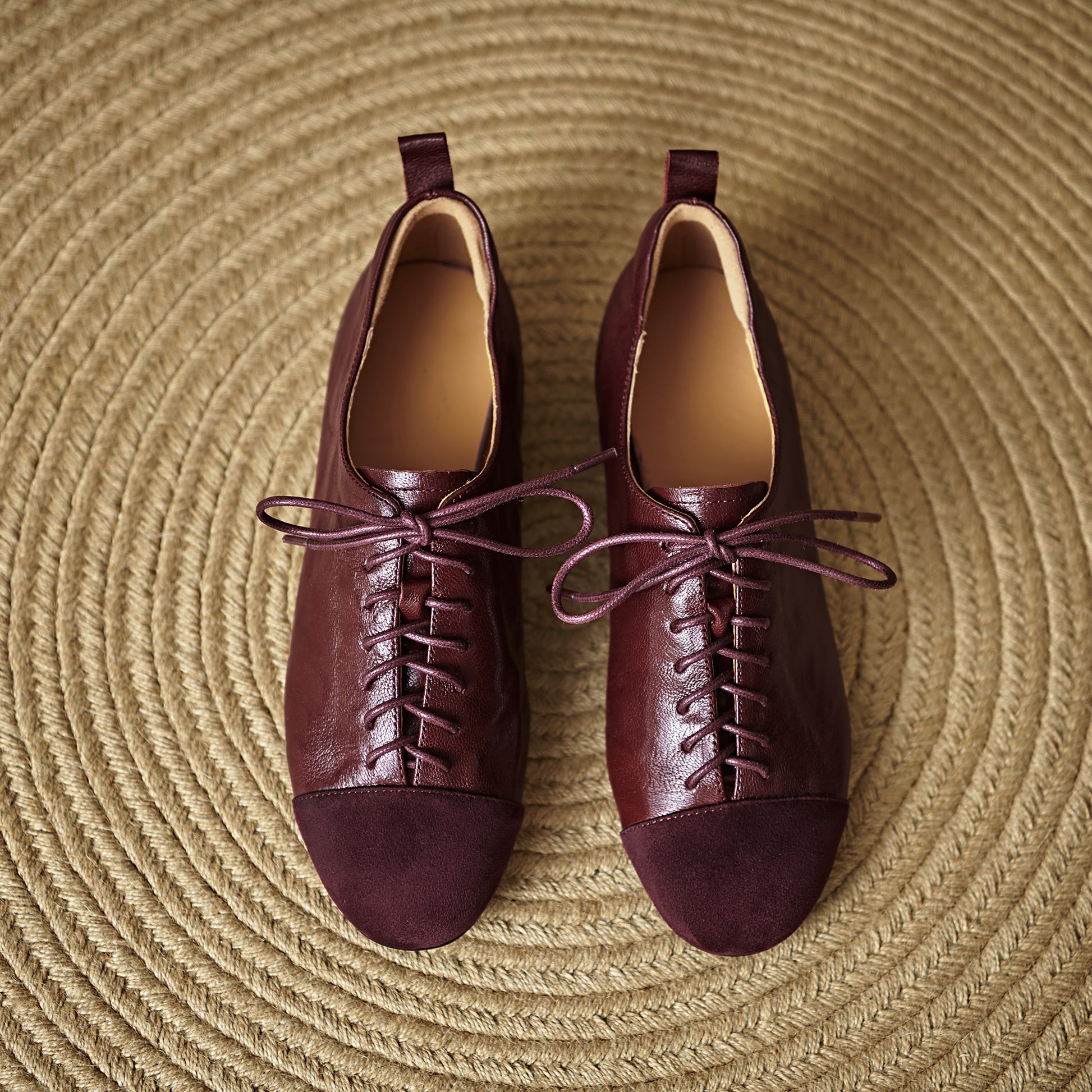 TinaCus Handmade Women's Genuine Leather Round Toe Lace-up Office Oxford Flats