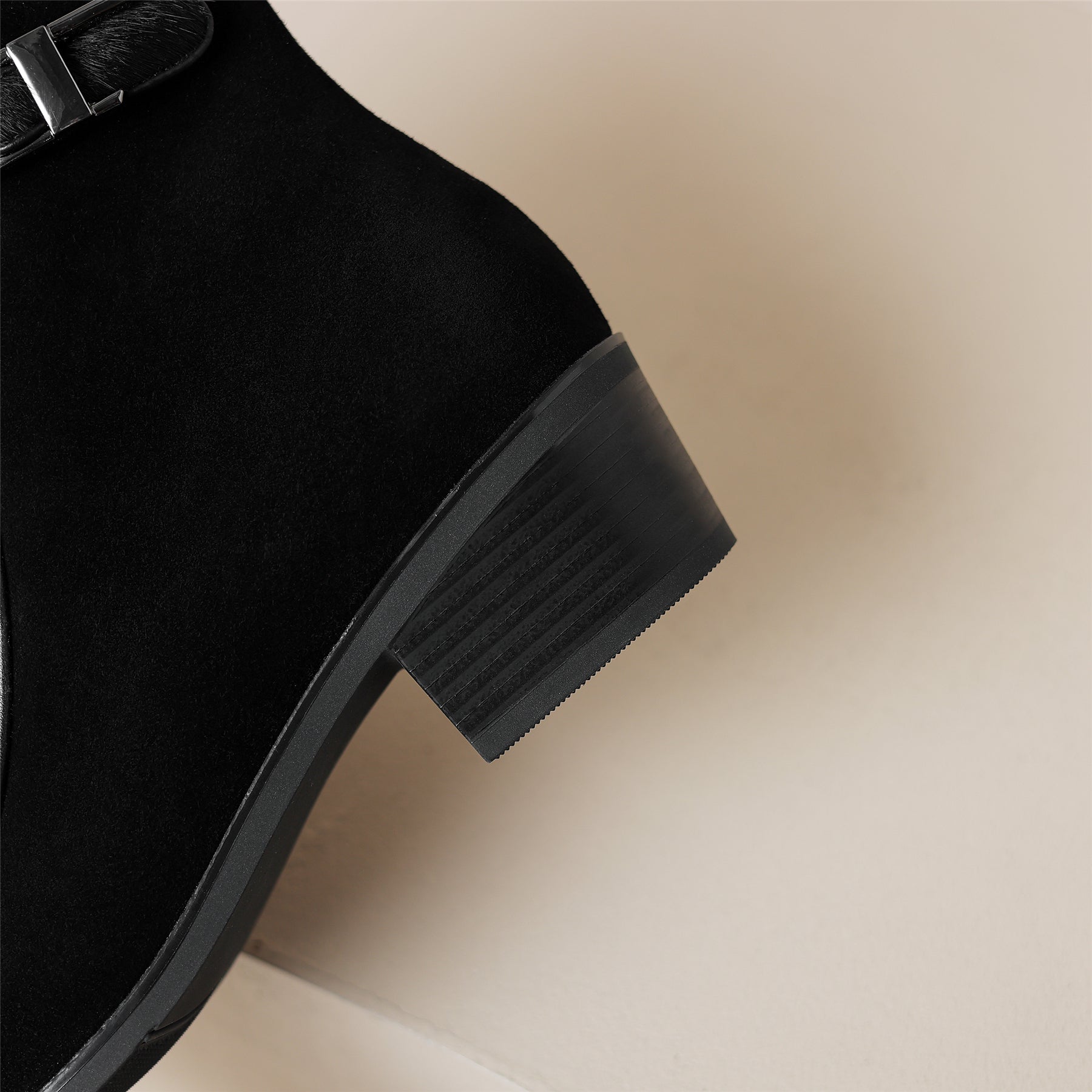 TinaCus Damen-Stiefeletten aus Wildleder, handgefertigt, mit Reißverschluss und klobigem Absatz