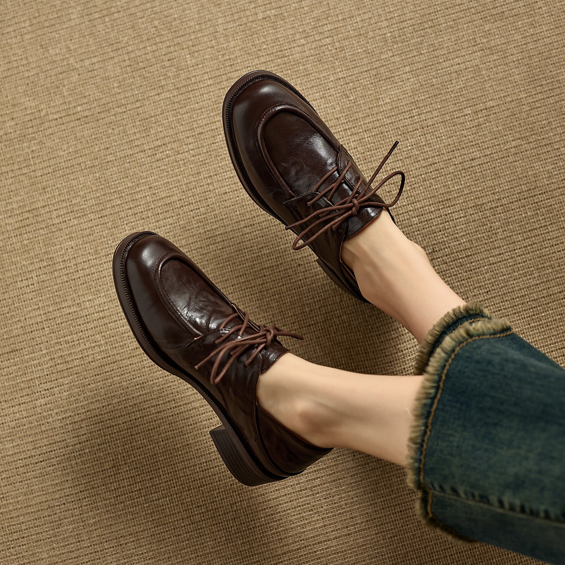 These classic loafers elevate your style with a chunky heel, lace-up design, and trendy round toe for both fashion and comfort.