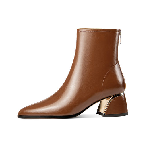 TinaCus Genuine Leather Women's Handmade Side Zipper Pointed Toe Chunky Heel Ankle Boots
